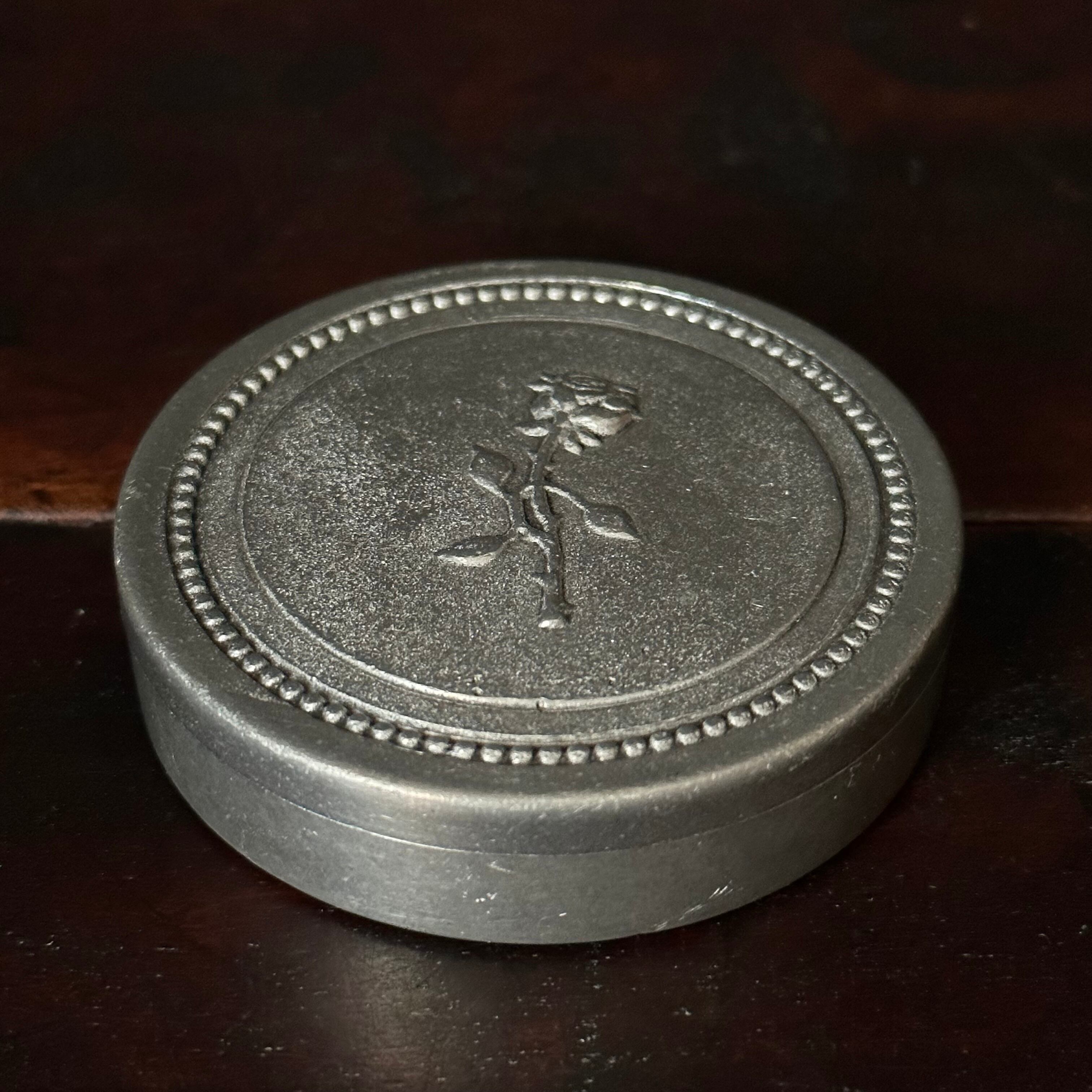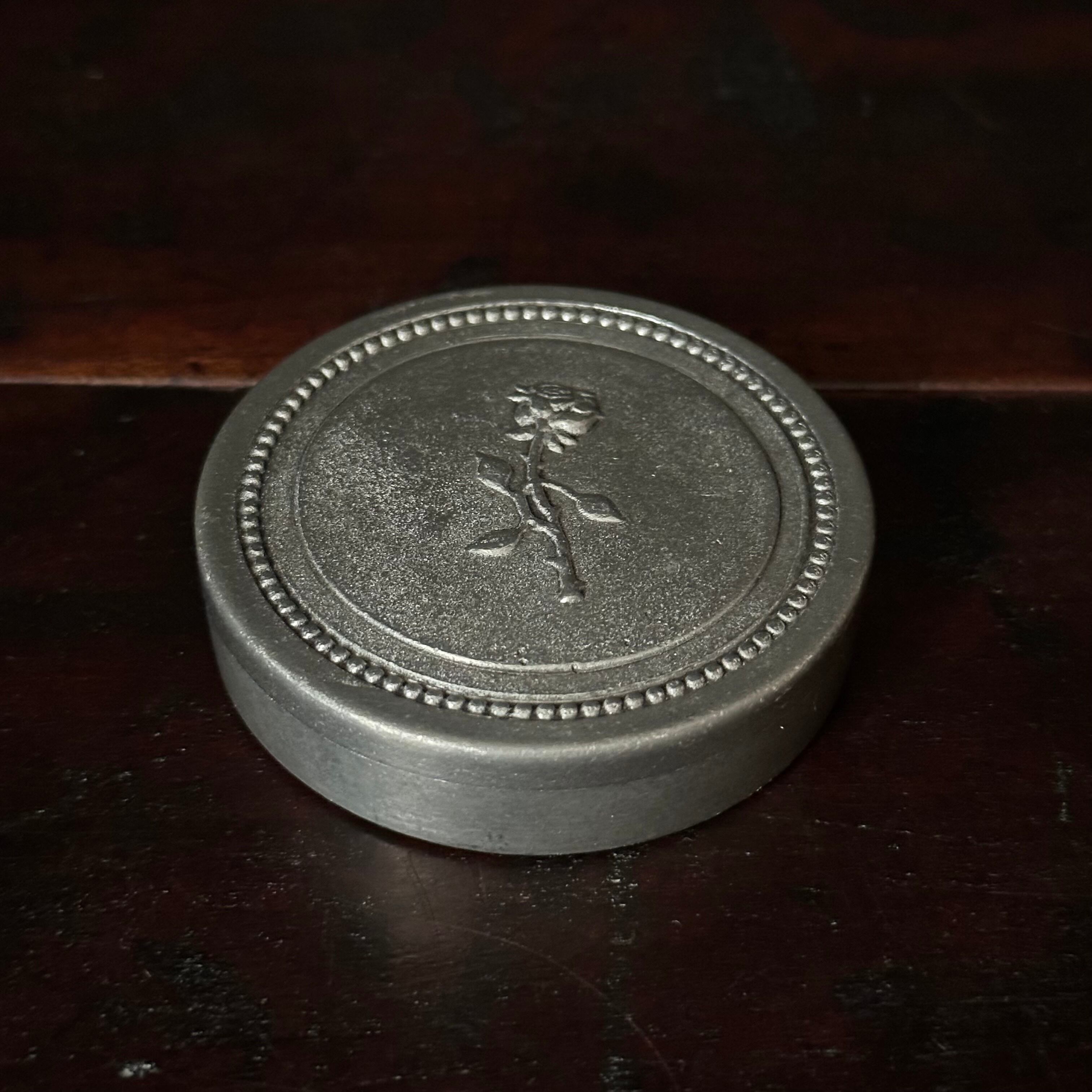 蓋にはドットが連なる縁取り装飾の中に立体感がある1輪の薔薇がレリーフで施されております。