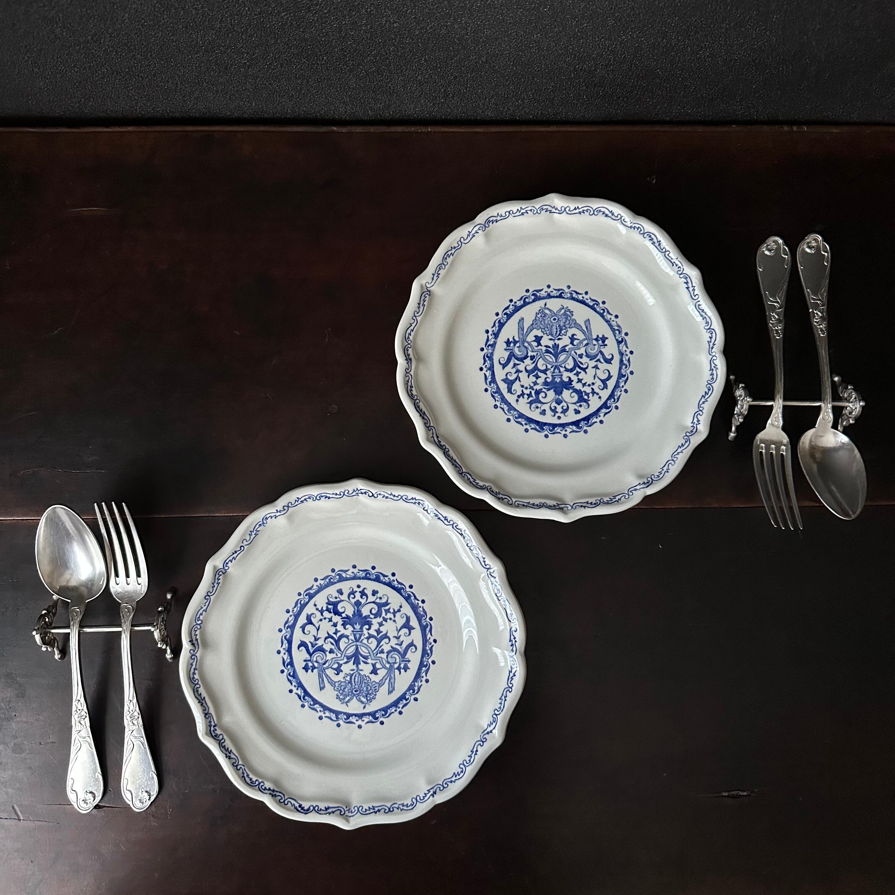 ※古いもののため経年によるくすみや小さなキズなどがあります。長年大切に使われてきたものと思われ、スプーンとフォークの先と背面の模様にはスレによるメッキの剥がれが見受けられます。ヴィンテージならではの風合いとして感じていただけると幸いです。