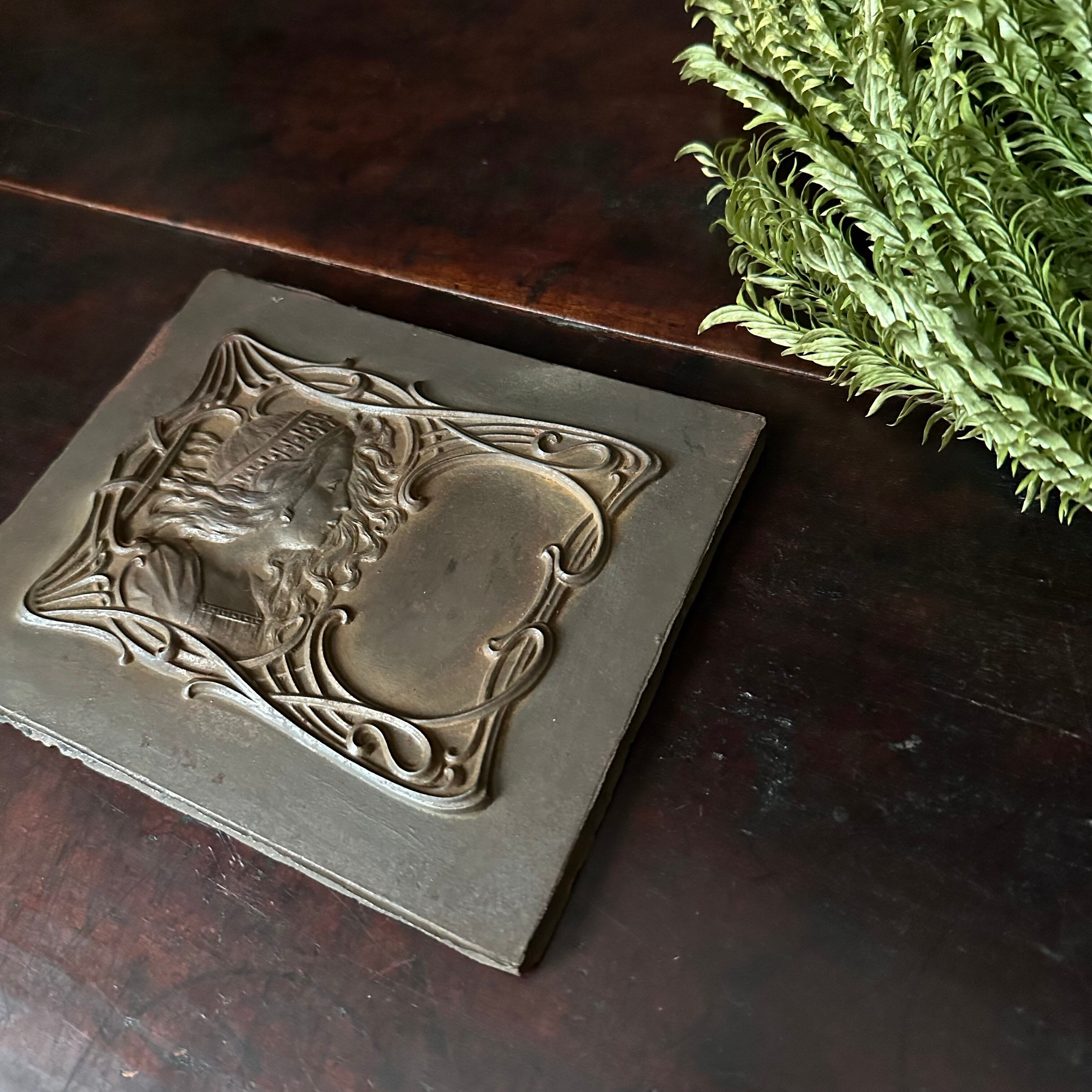 風になびく髪や優しい表情は繊細で立体感溢れる装飾です。見る角度や陽の光の当たり具合で印象が変わり、様々な雰囲気が愉しめるプレートとなっています。