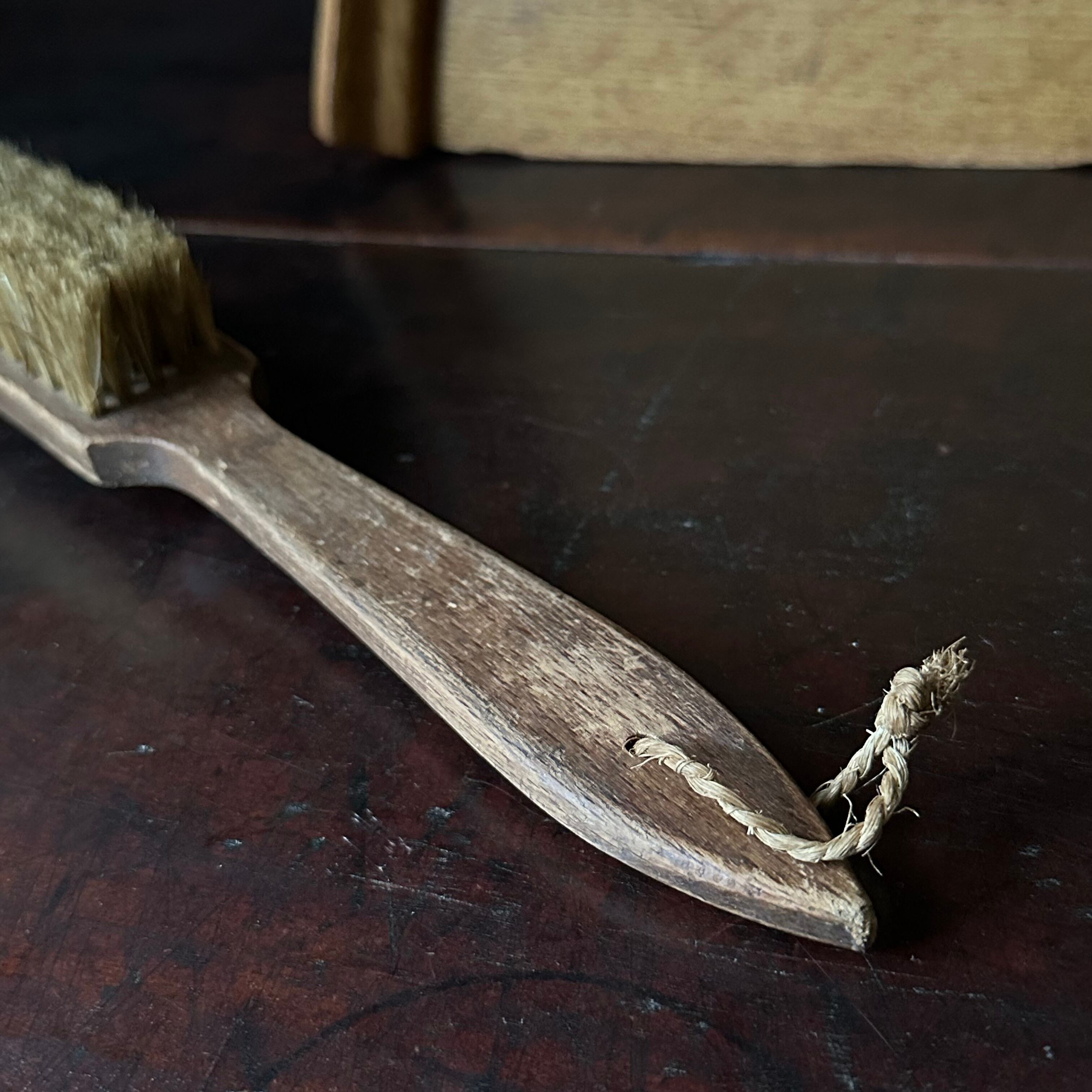 古いものですがしっかりとした状態を保っております。ダストパンには小さなキズが全体にあり、先の部分には多少の欠けがあります。ブラシ背面には小さな穴と先の方に木の浮きがあります。長年大切に使用されていたヴィンテージの風合いとして感じて頂けると幸いです。
