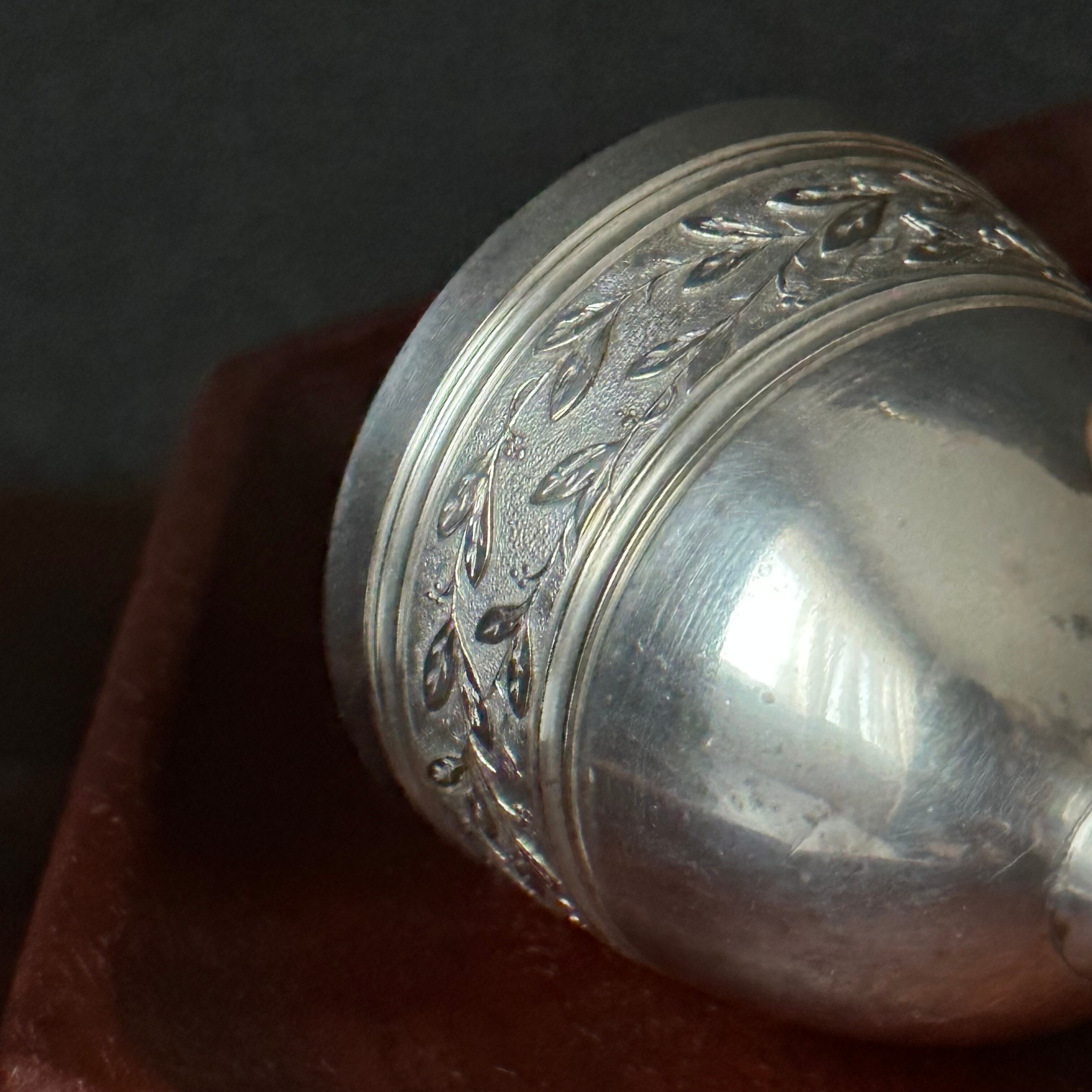 経年による黒ずみやくすみが全体に見受けられますが、古いものの良い風合いとなっており、味わい深いシルバーの輝きを放っています。