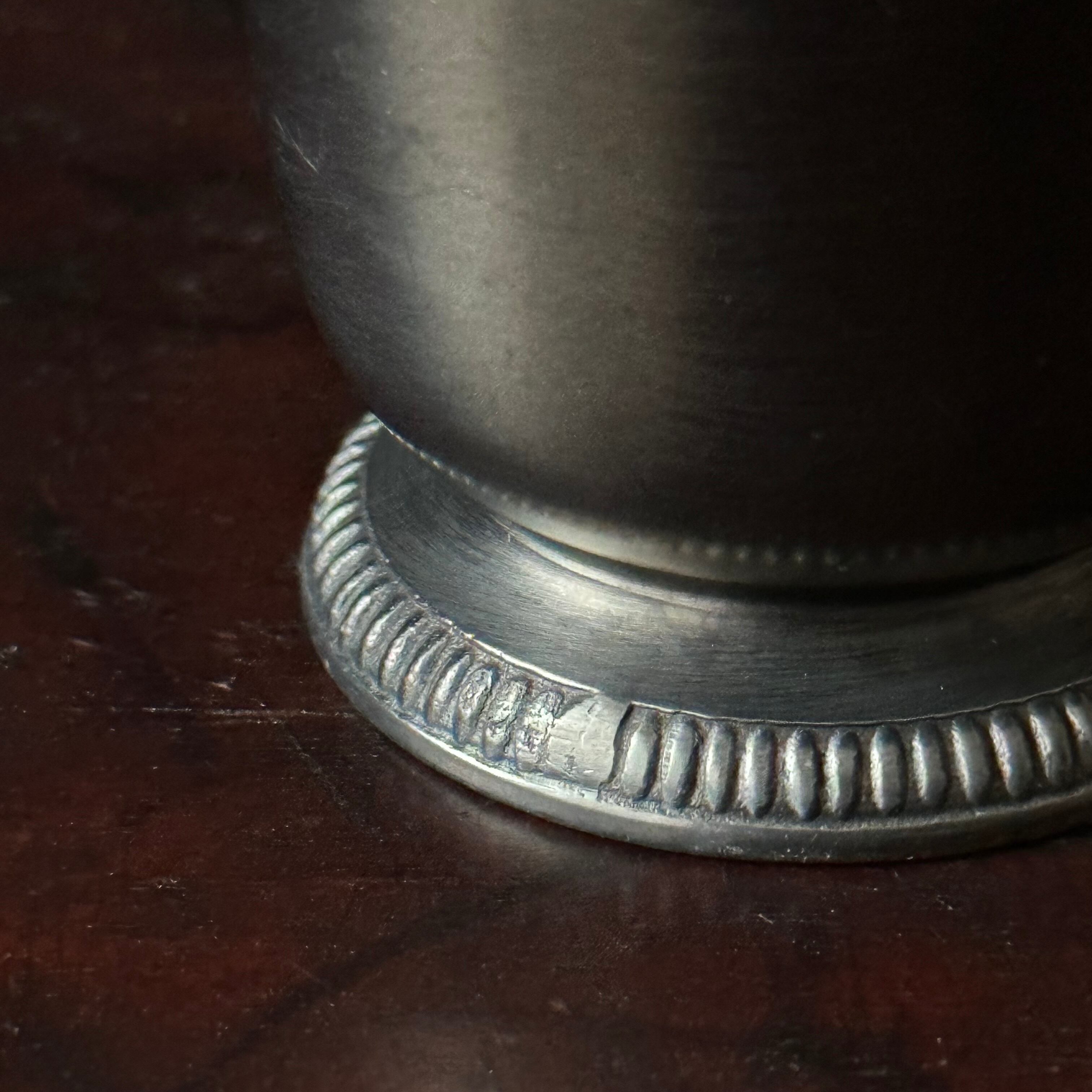 使い込まれた経年の変化で美しい渋みのある光沢を放ち、カップ上部のラインや土台のレリーフ装飾がアクセントとなった美しいゴブレットです。