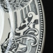 単色の濃淡が美しいグリザイユで、躍動感ある馬の描写やプレートいっぱいの絵柄がとても繊細です。