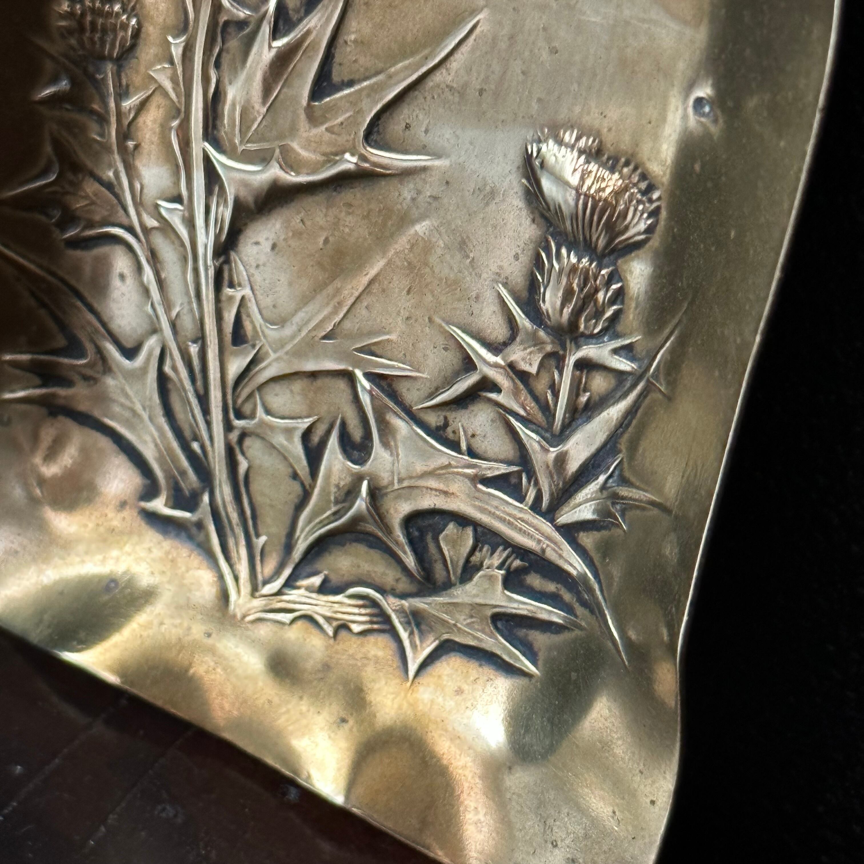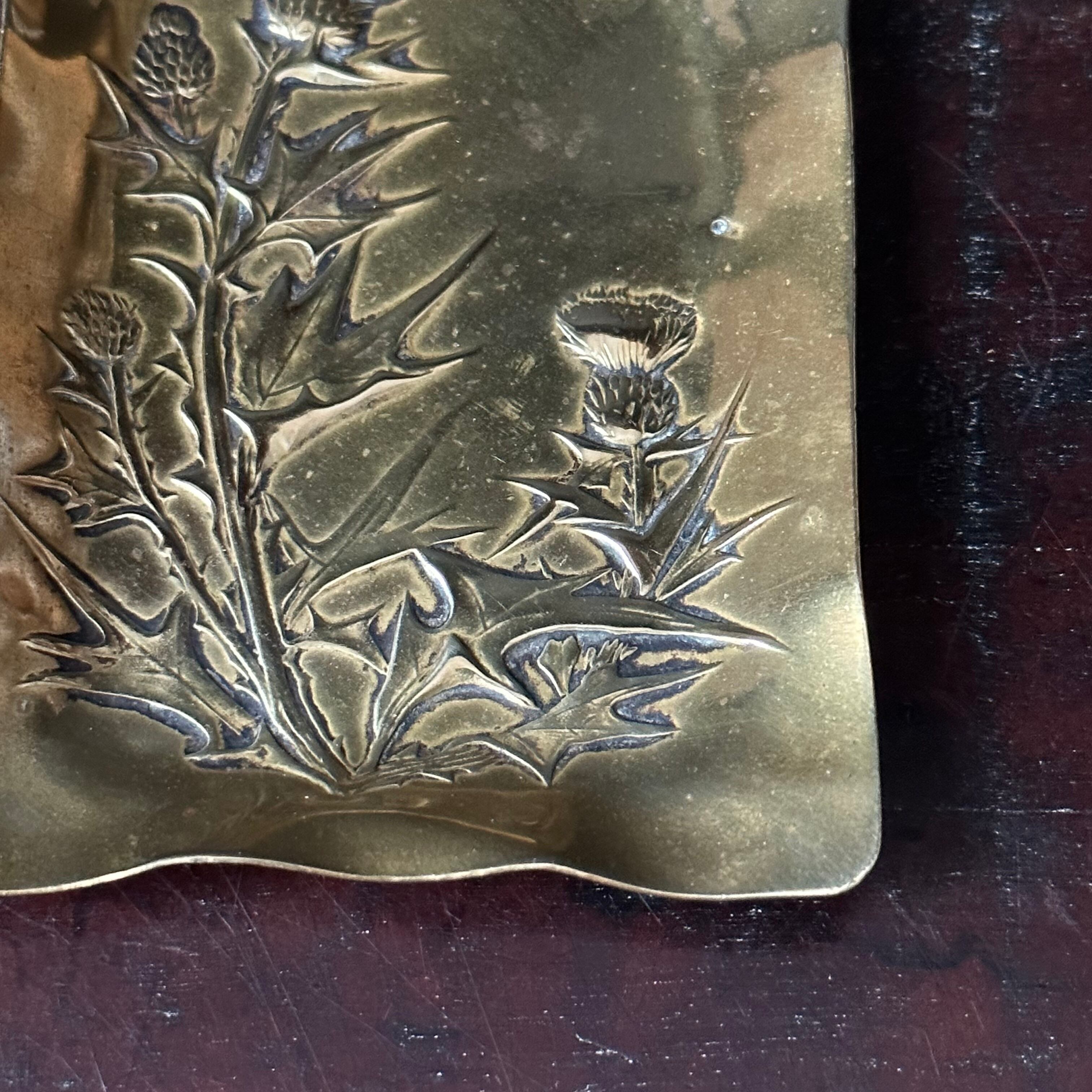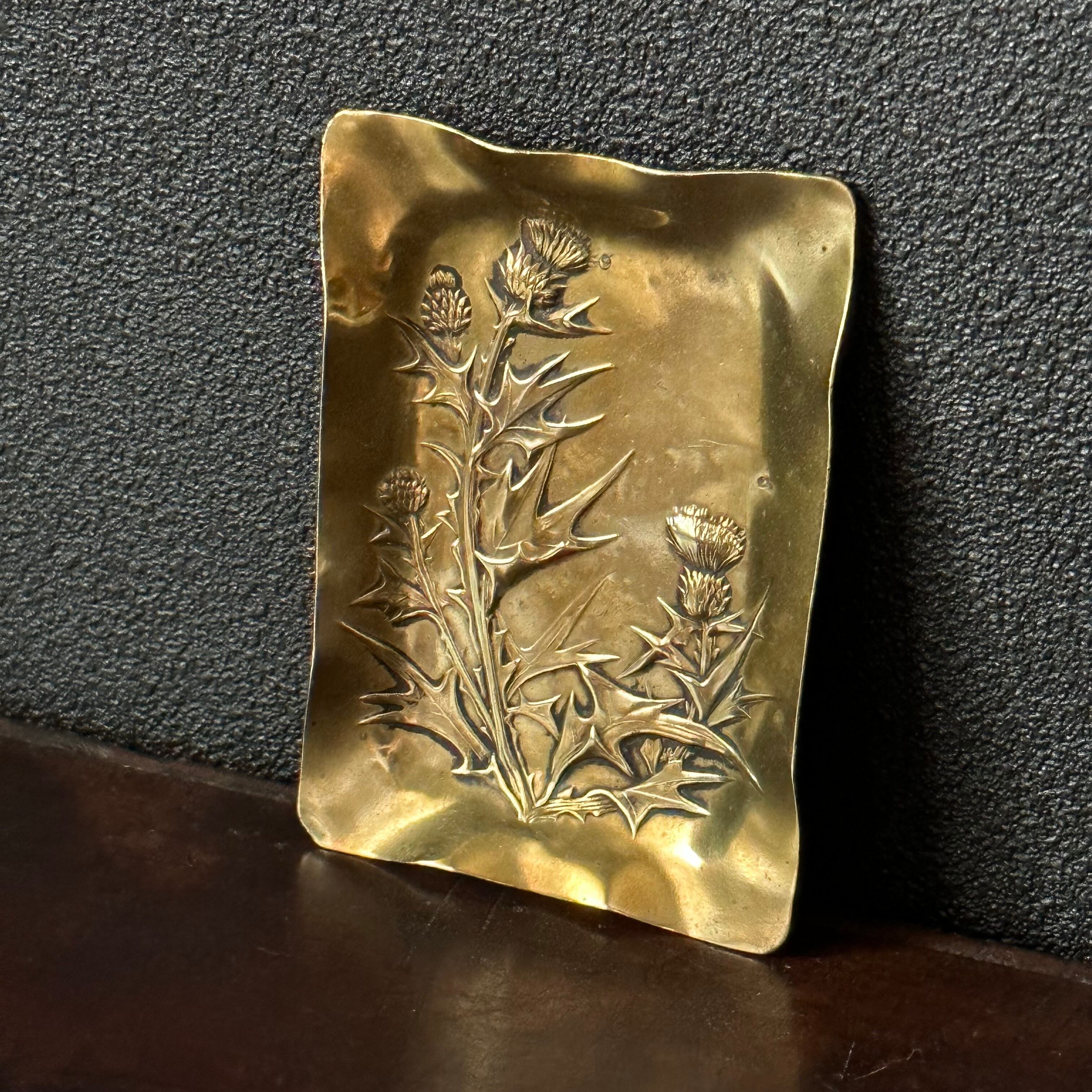 アザミの花の打ち出し模様が美しい真鍮トレイです。