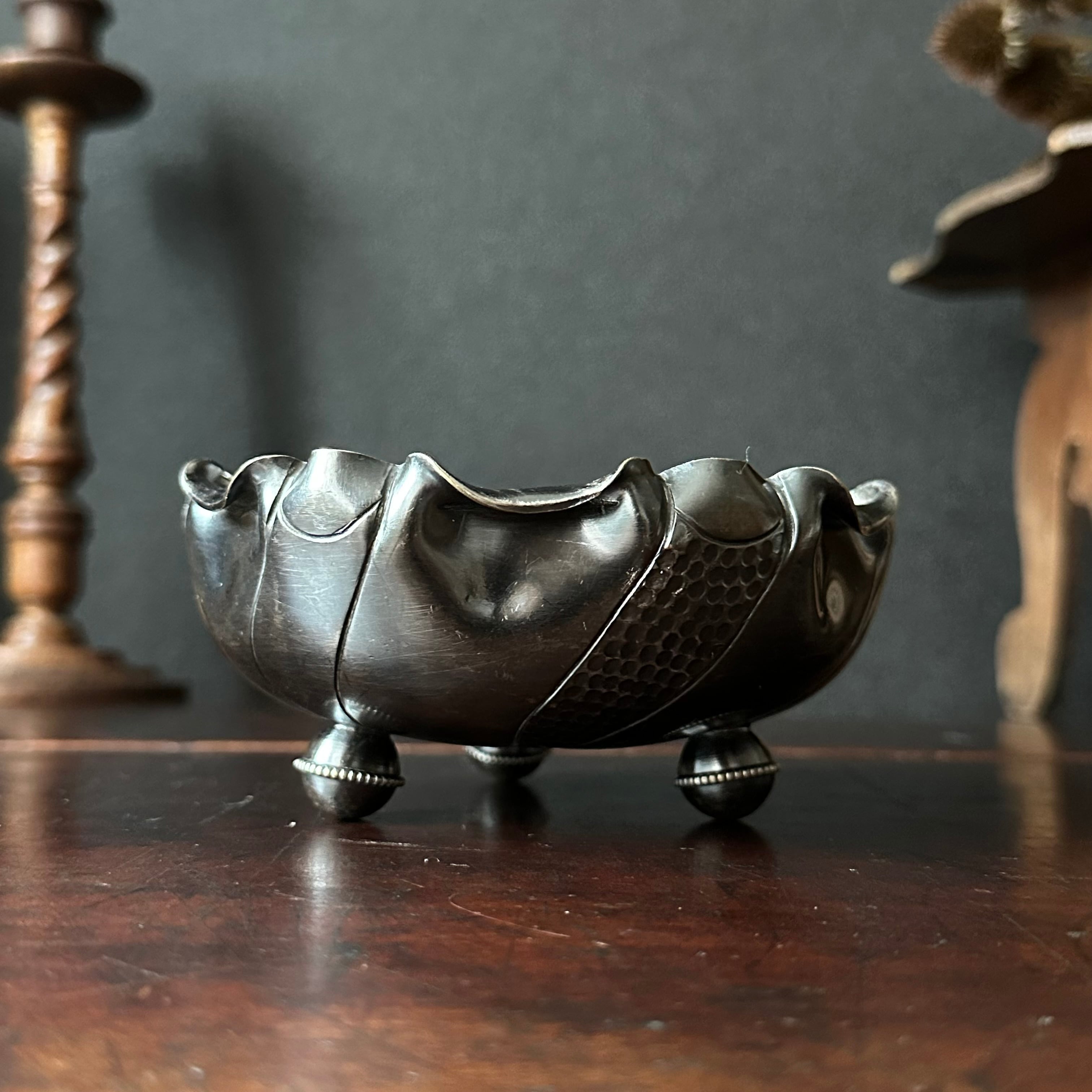 真上から除くとまるで1輪のお花が咲いているかのようにも見え、また黒みの強い深みのあるシルバーの色合いに気品溢れる佇まいを感じますね。