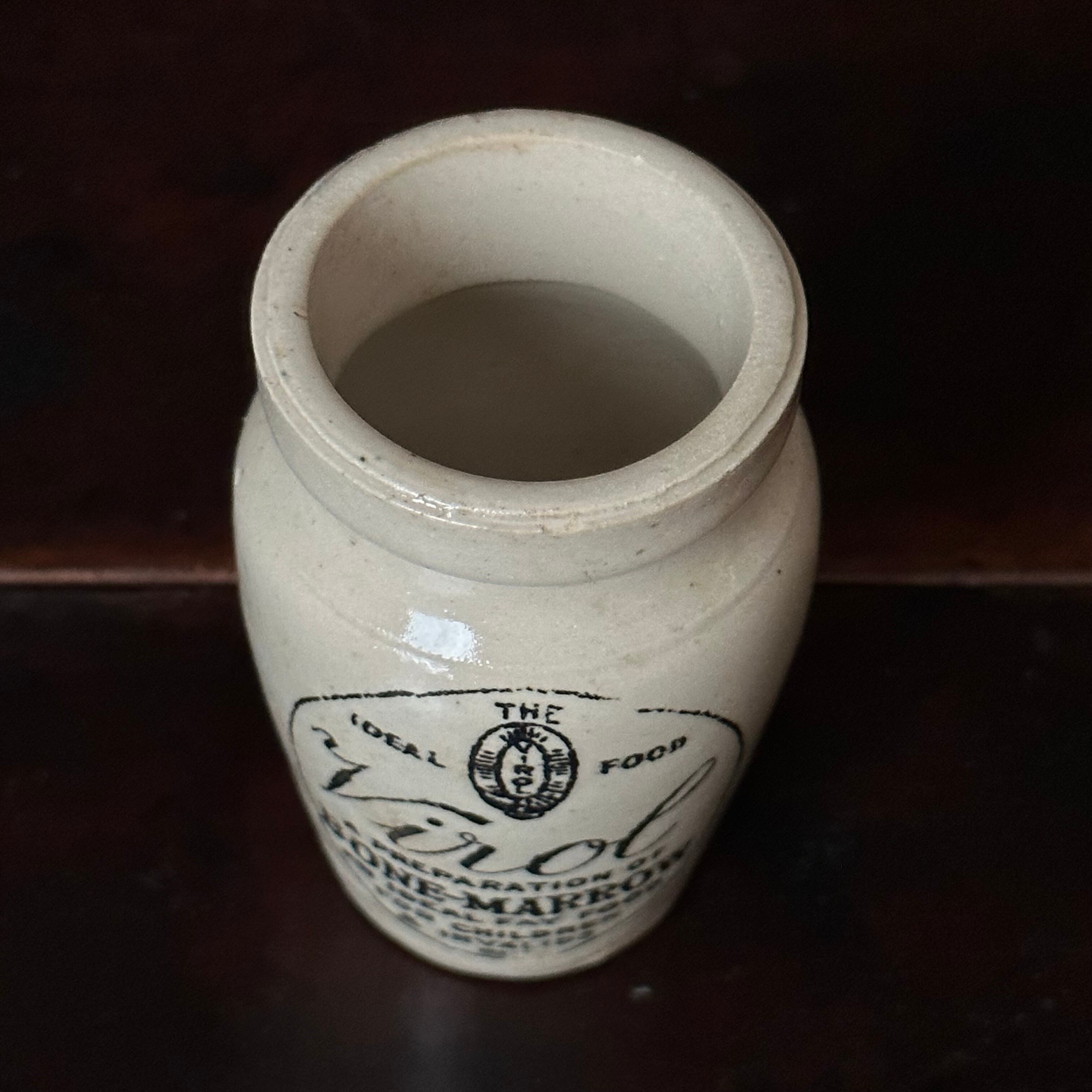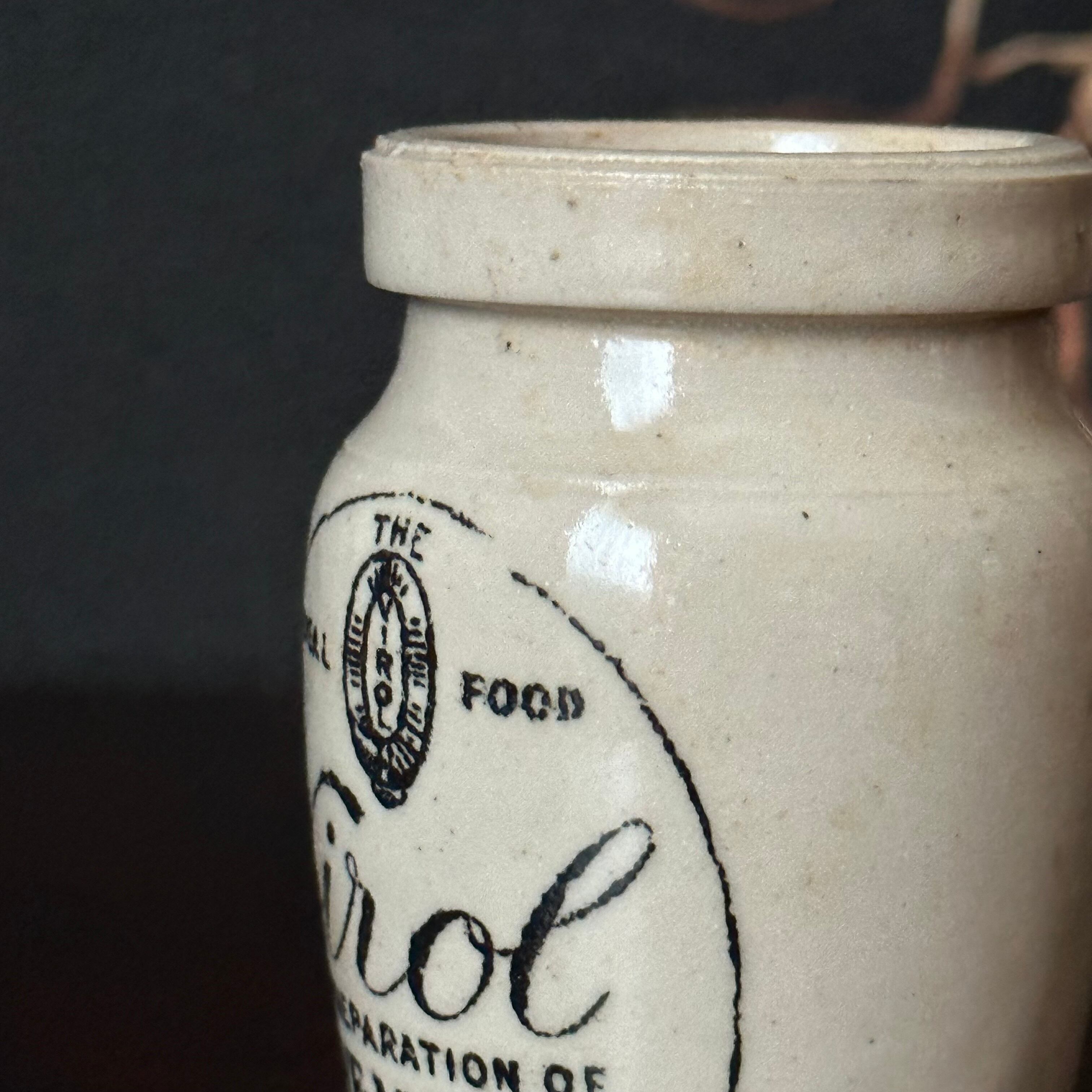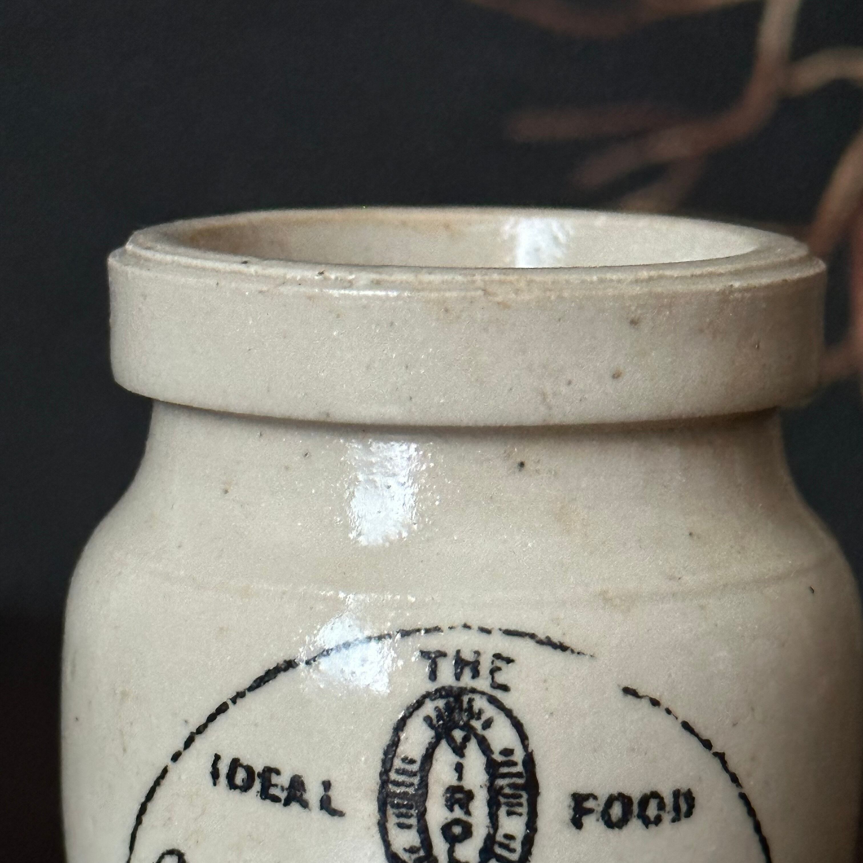 こちらはイギリスで1860年~1950年代まで発売されていた栄養補助食品が入っていたポットで、当時は子供や病弱な人のための食品として普及しており料理に混ぜて栄養補給をしていたようです。