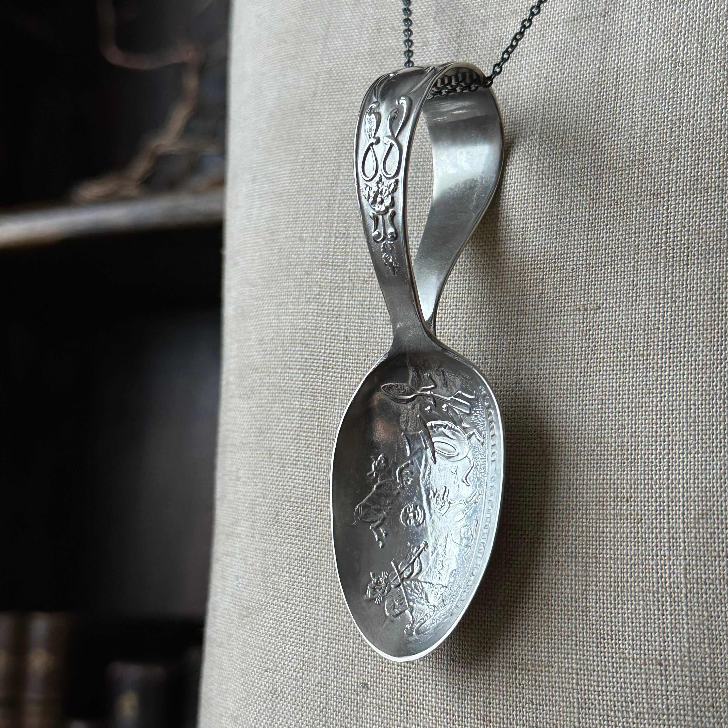 こちらのスプーンには「Hey Diddle Diddle ヘイ・ディドル・ディドル」という英語の童謡の歌詞に登場する場面が描かれております。