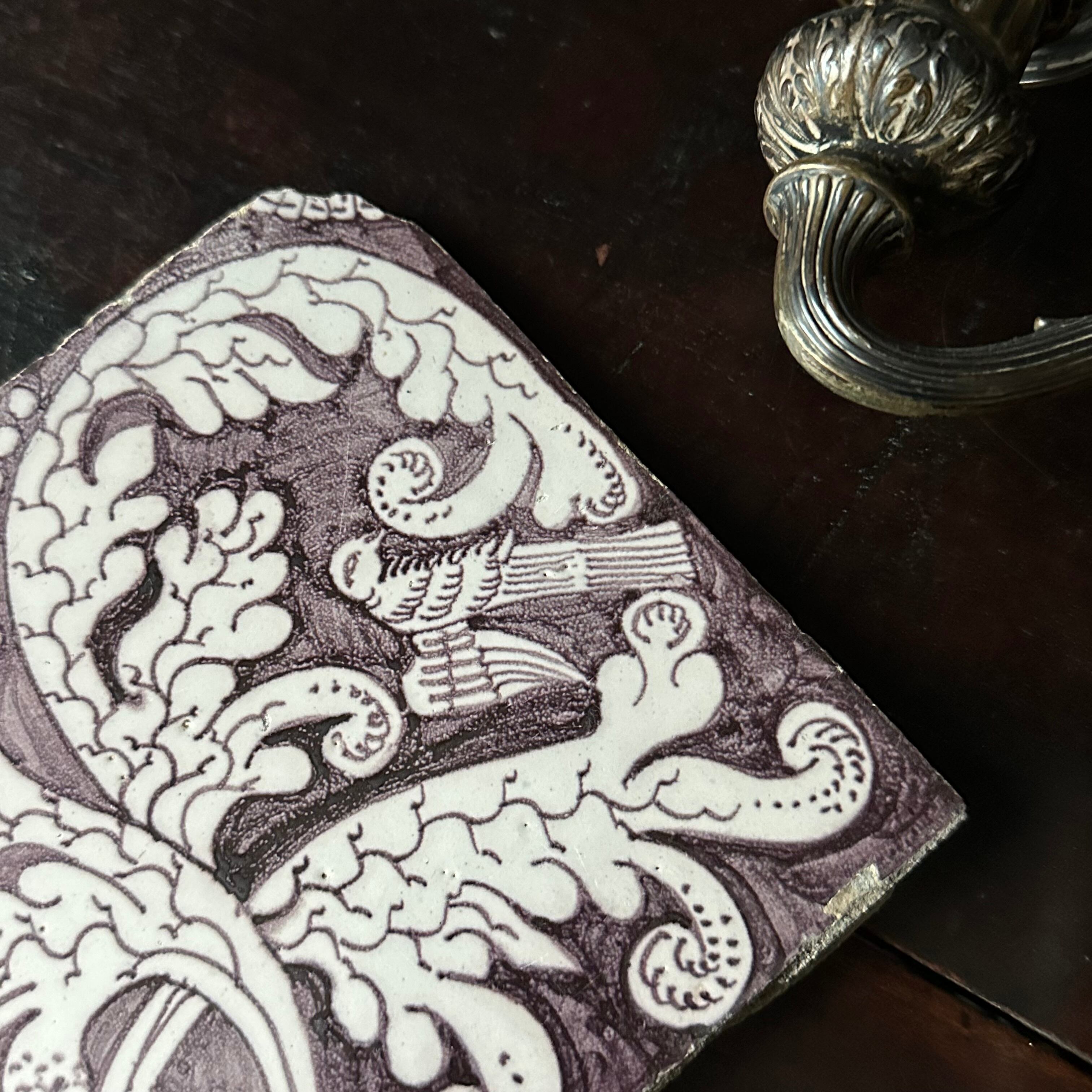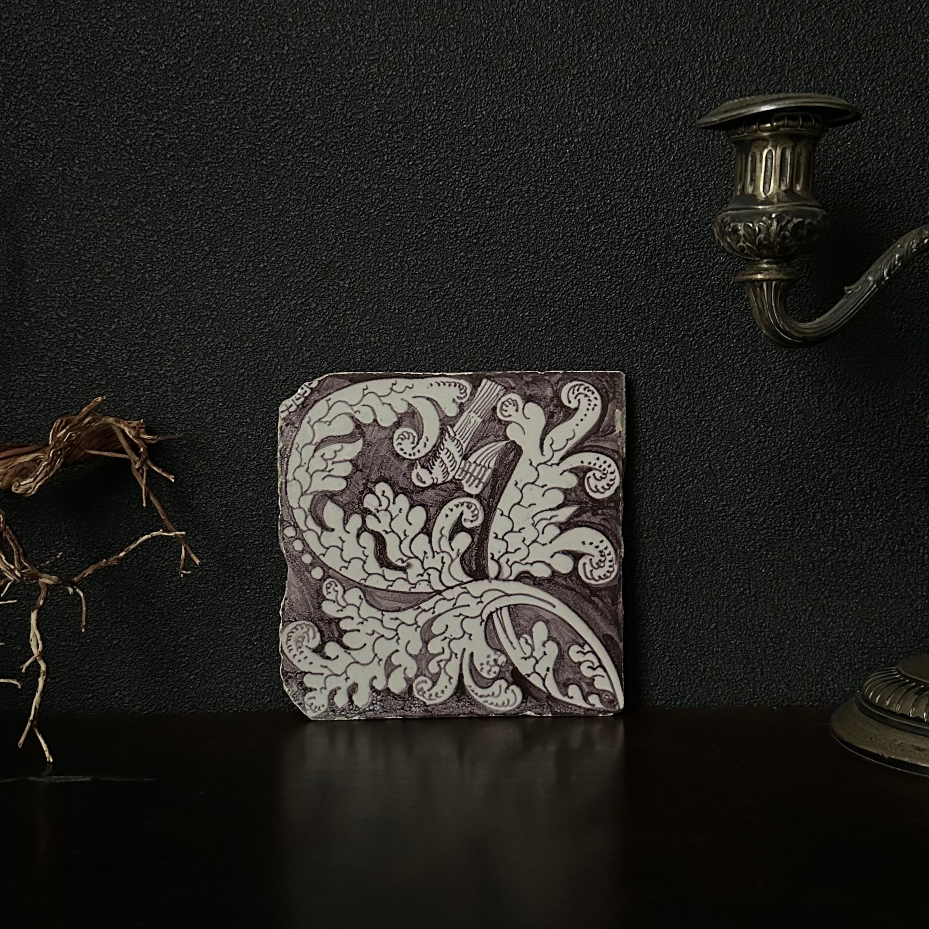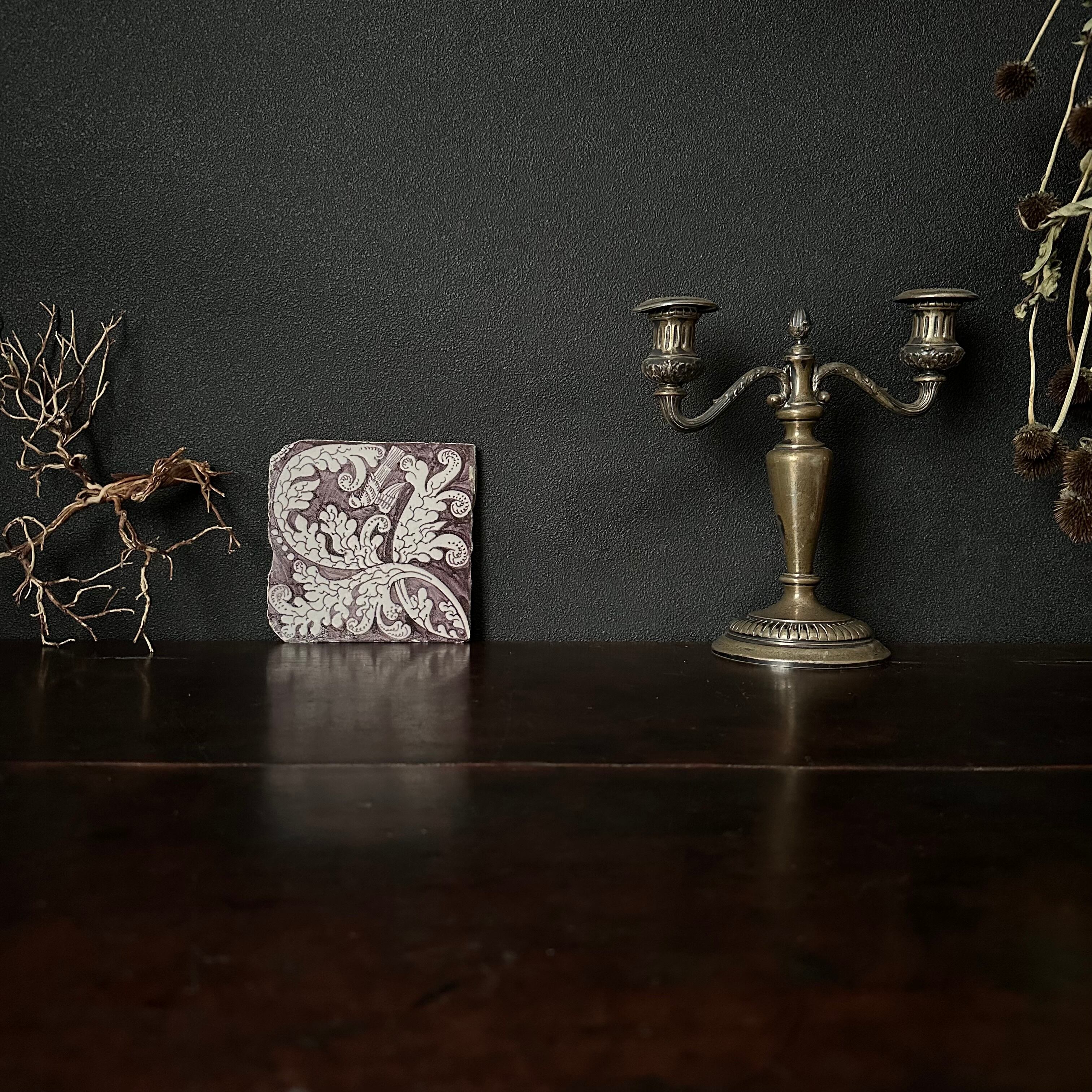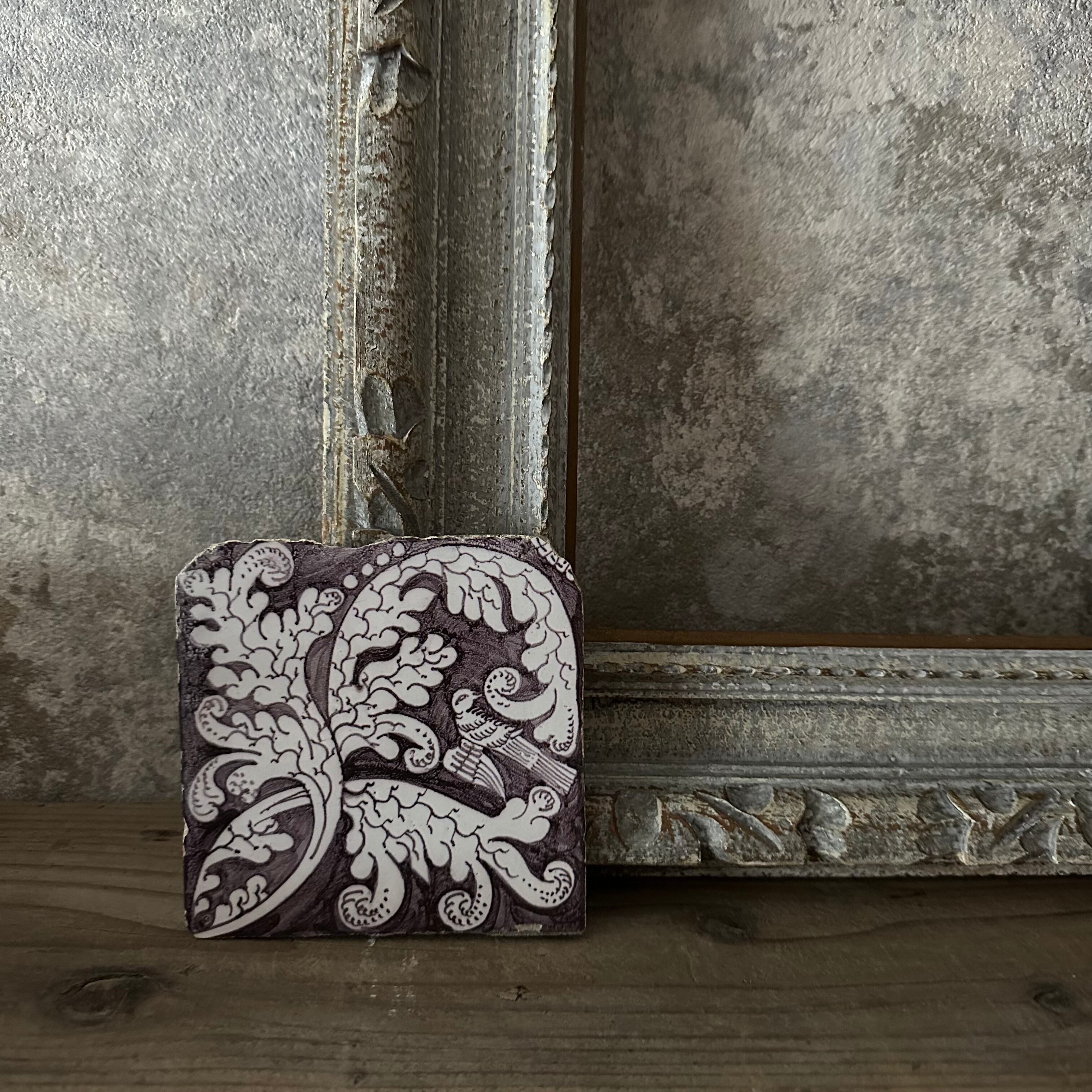 ベルギーの蚤の市で見つけたヴィンテージの手書きの絵付けタイルです。