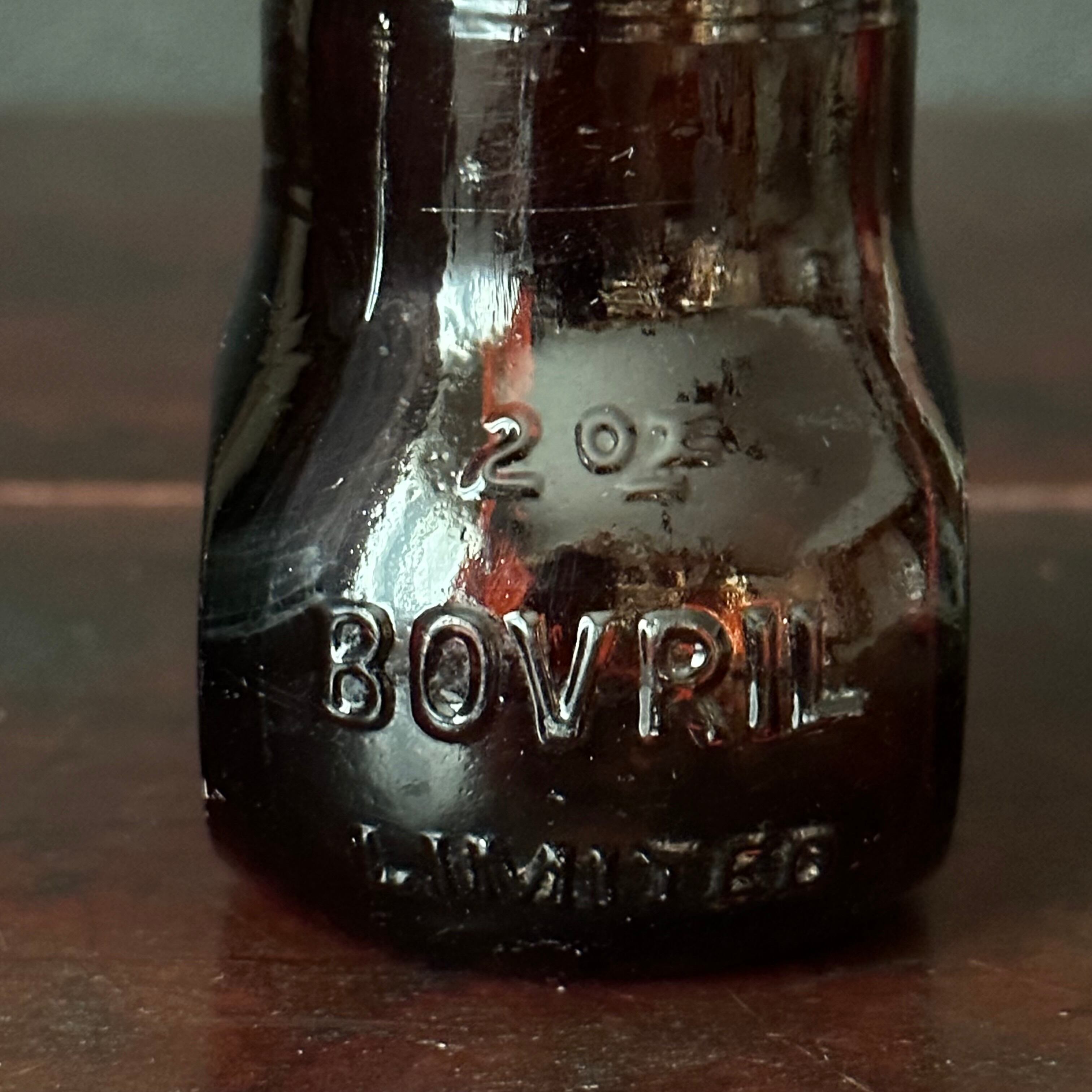 「BOBRIL」との文字があり 1800年代後期ごろ栄養価の高い食品を入れて食料品店や薬局などで販売されていたボトルと思われます。