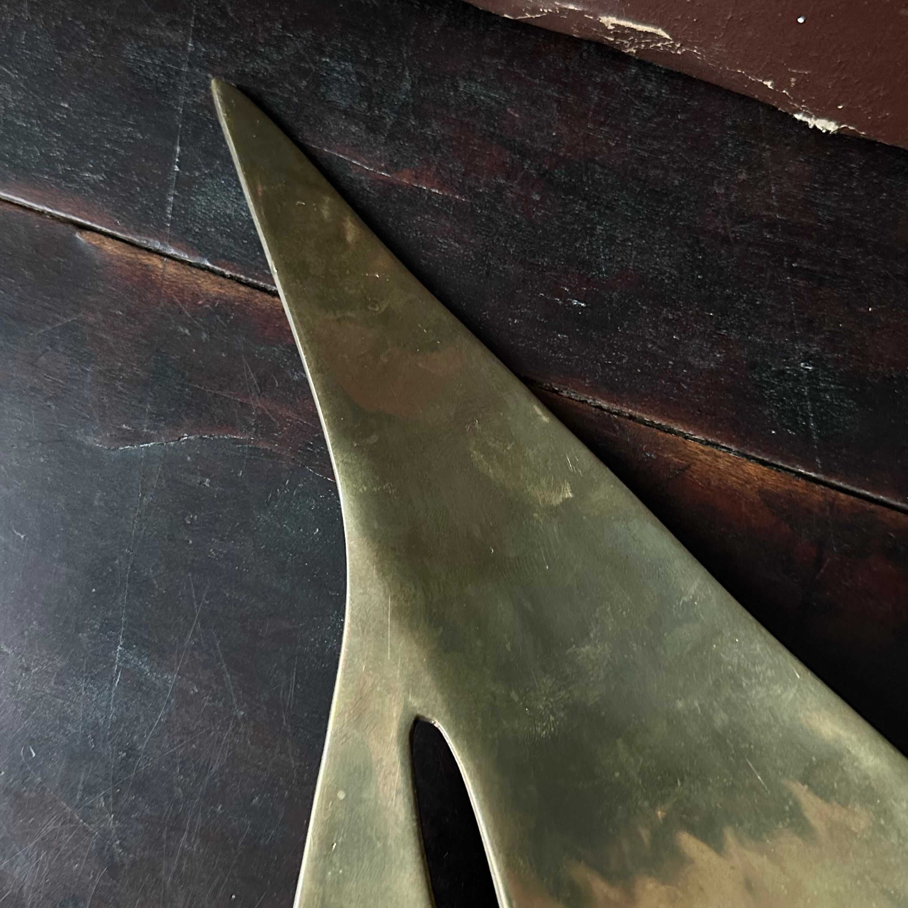 経年により渋い輝きを放ち、色むらや酸化による黒ずみ、サビなども見受けられますが、とても良い奥深さのあるヴィンテージの雰囲気が感じられます。