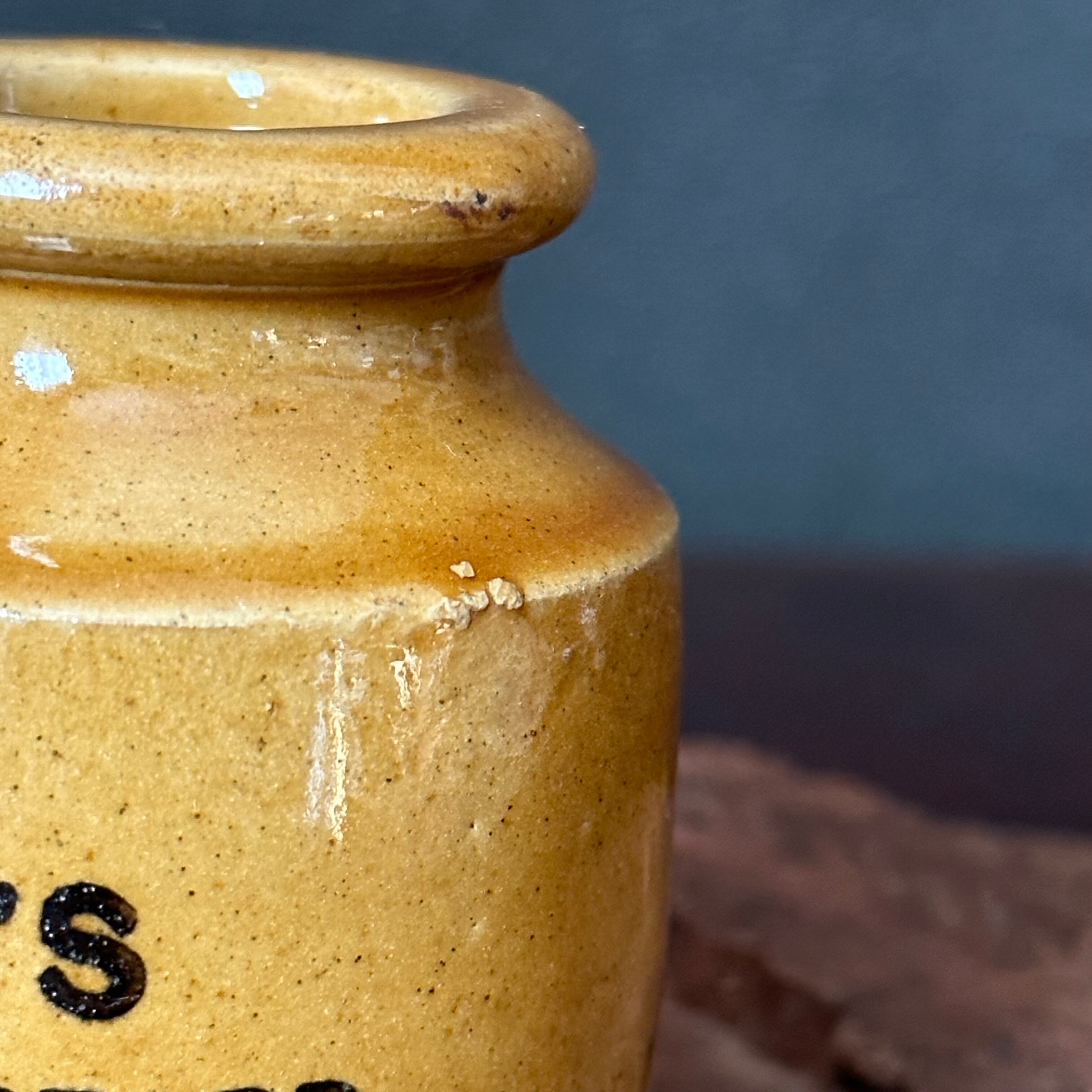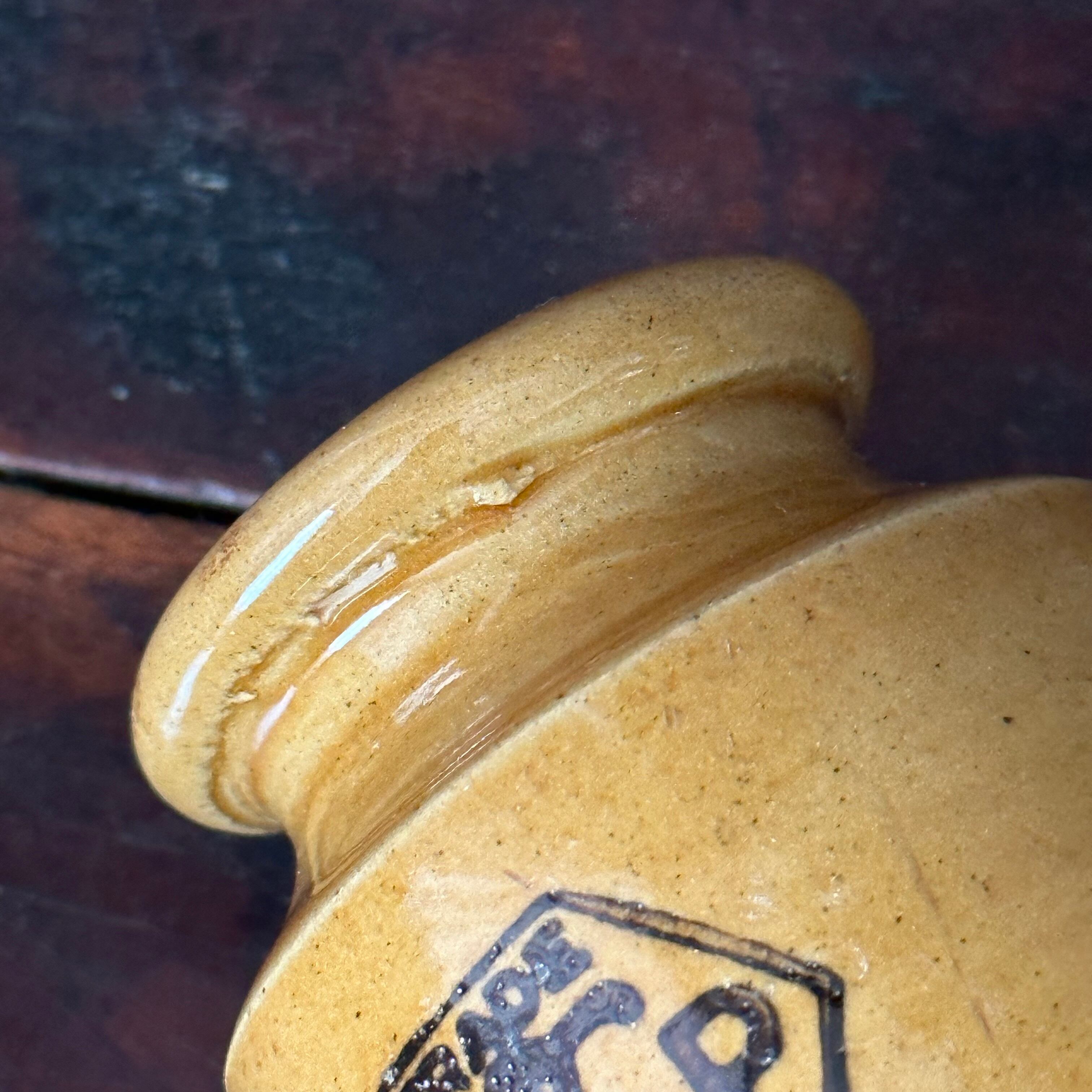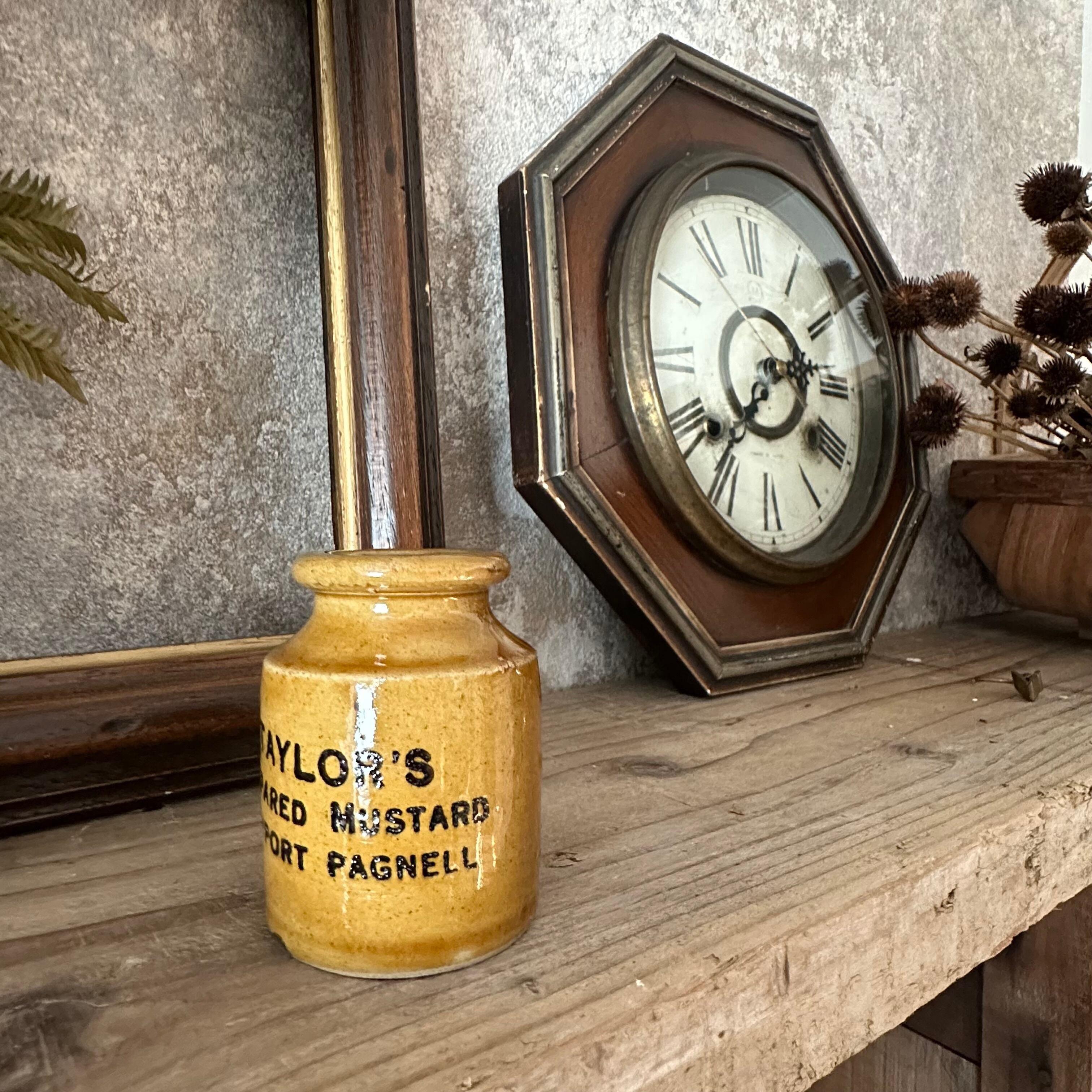 TAYLOR'Sというメーカーのマスタードポットで1900年代初期のものと思われます。当時は陶器の器に食品などを入れて販売されており、こちらはとても古い時代を感じさせてくれる素敵なポットです。