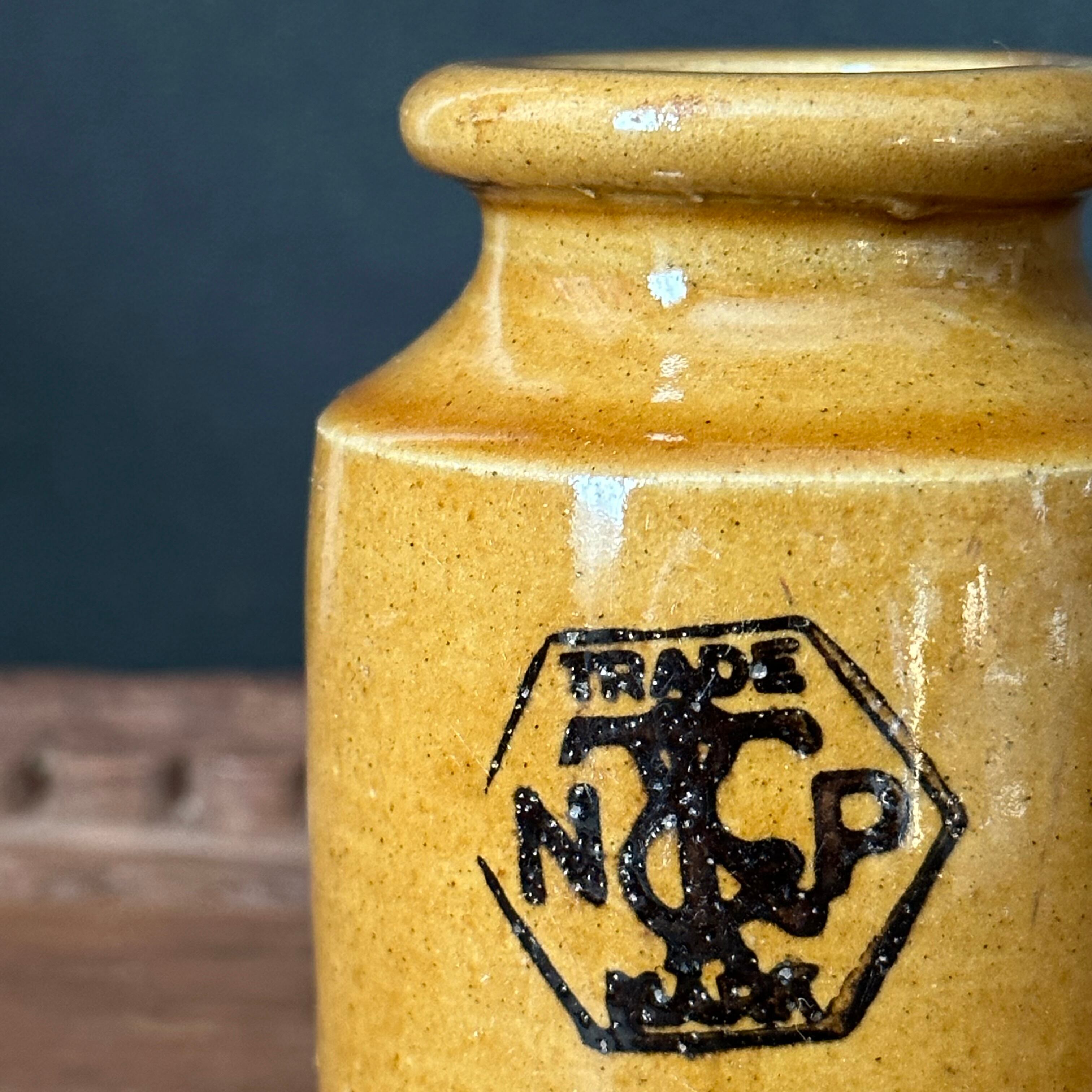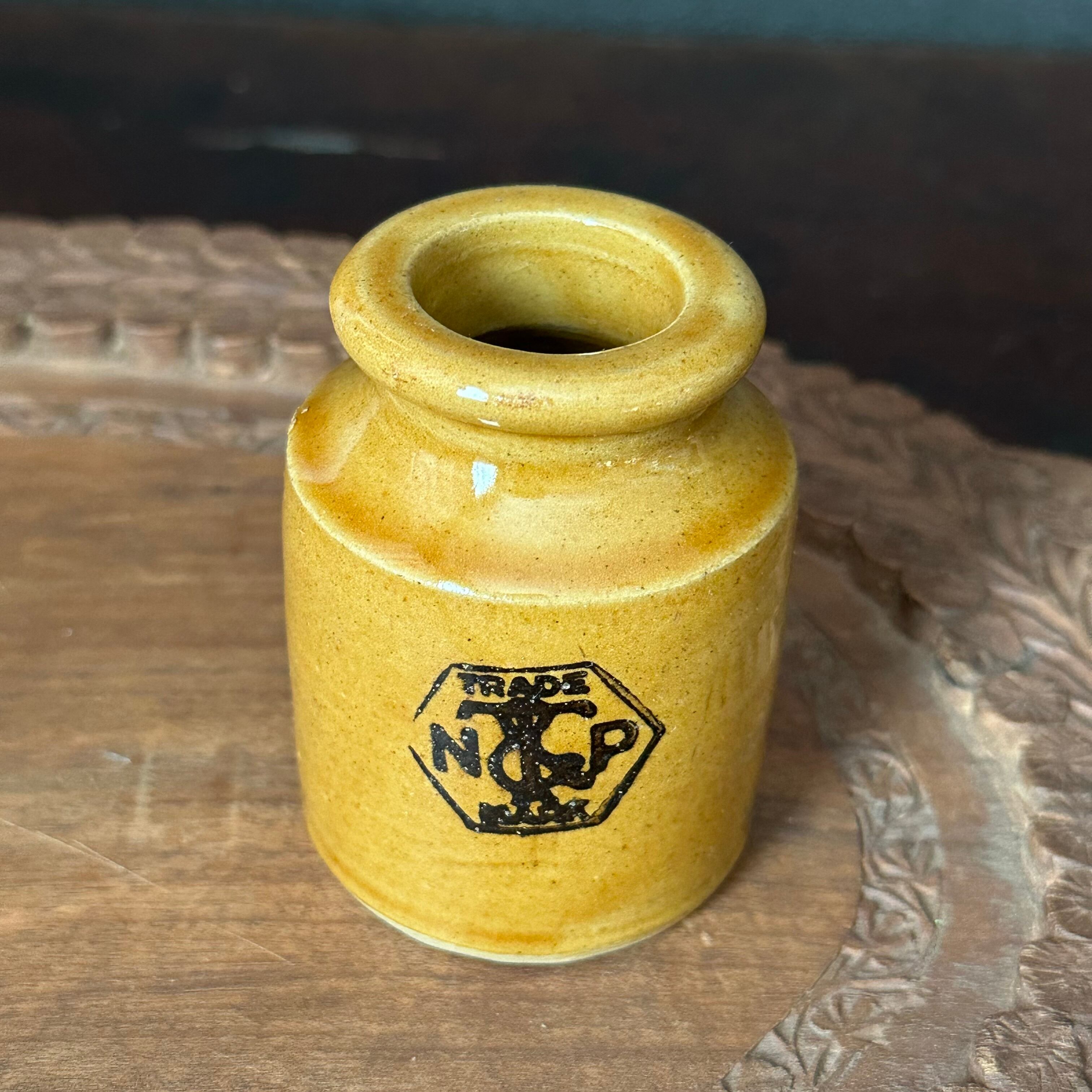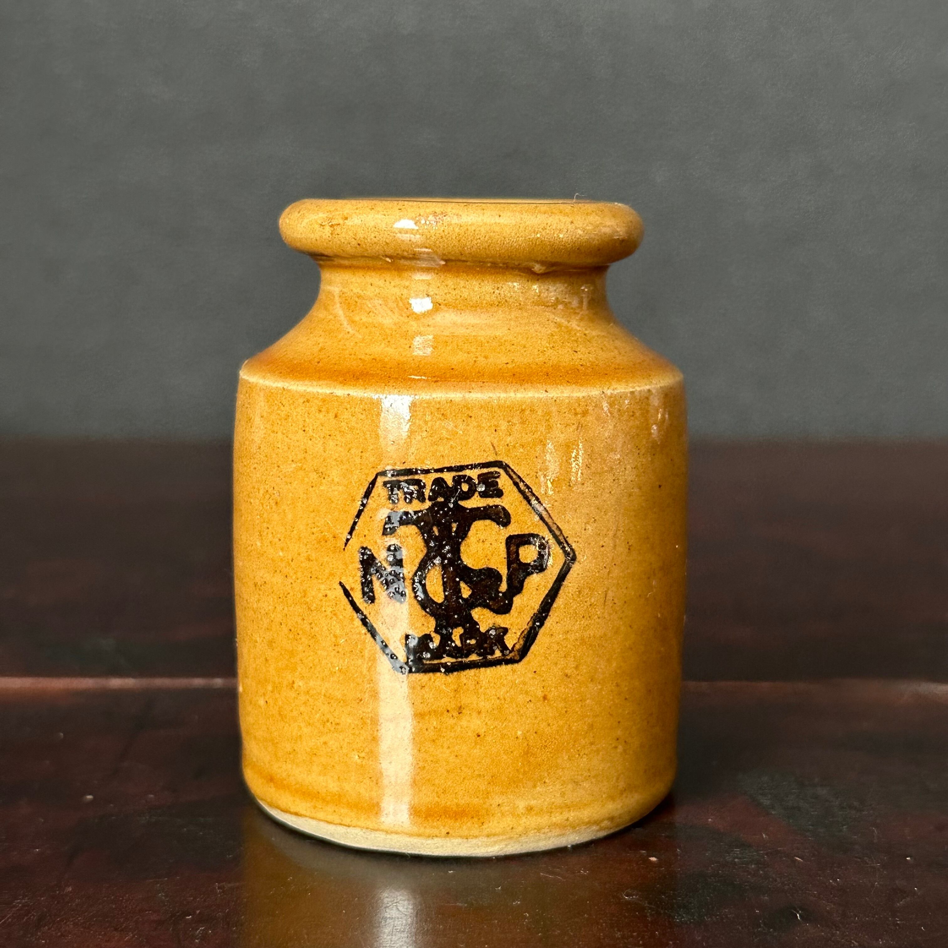 TAYLOR'Sというメーカーのマスタードポットで1900年代初期のものと思われます。当時は陶器の器に食品などを入れて販売されており、こちらはとても古い時代を感じさせてくれる素敵なポットです。