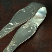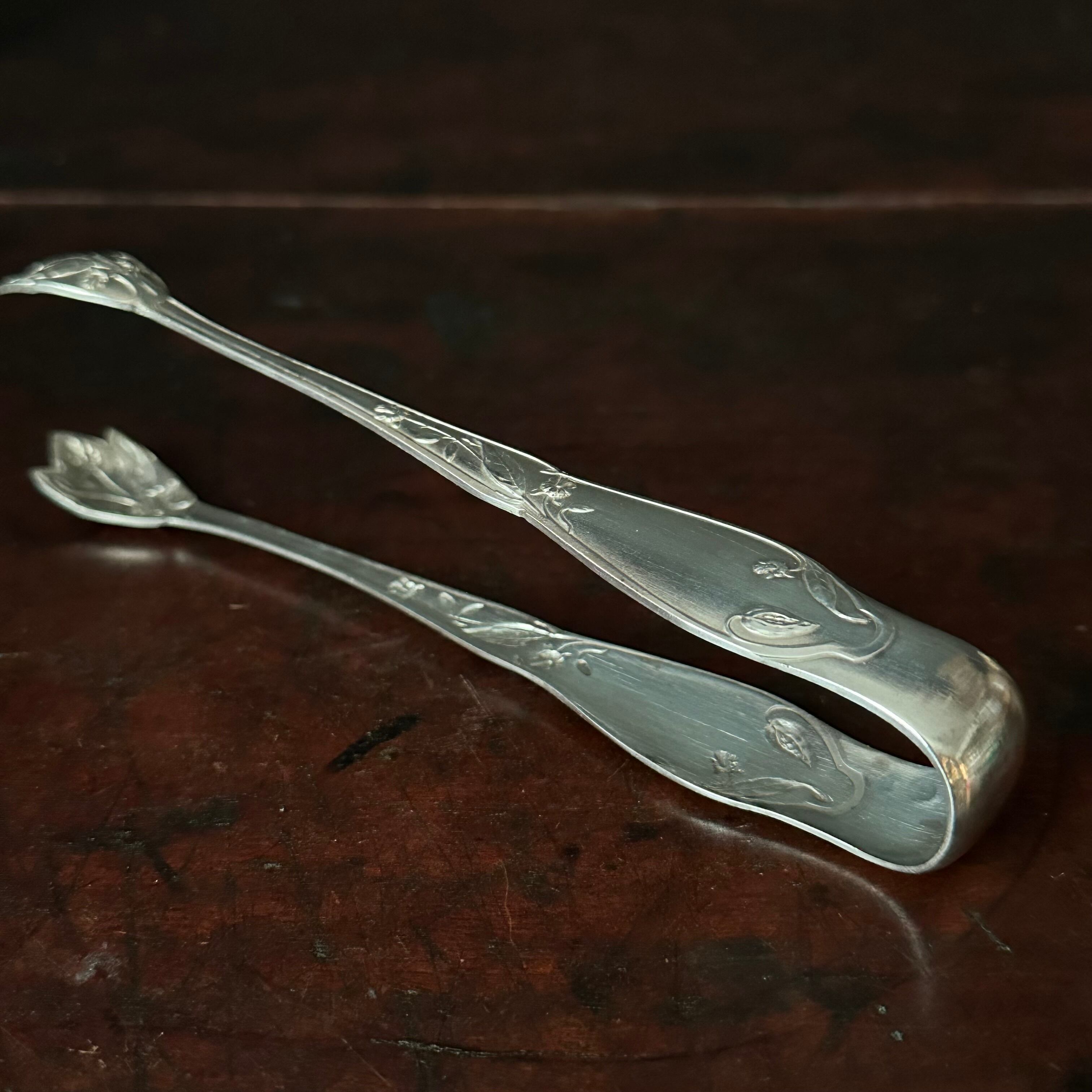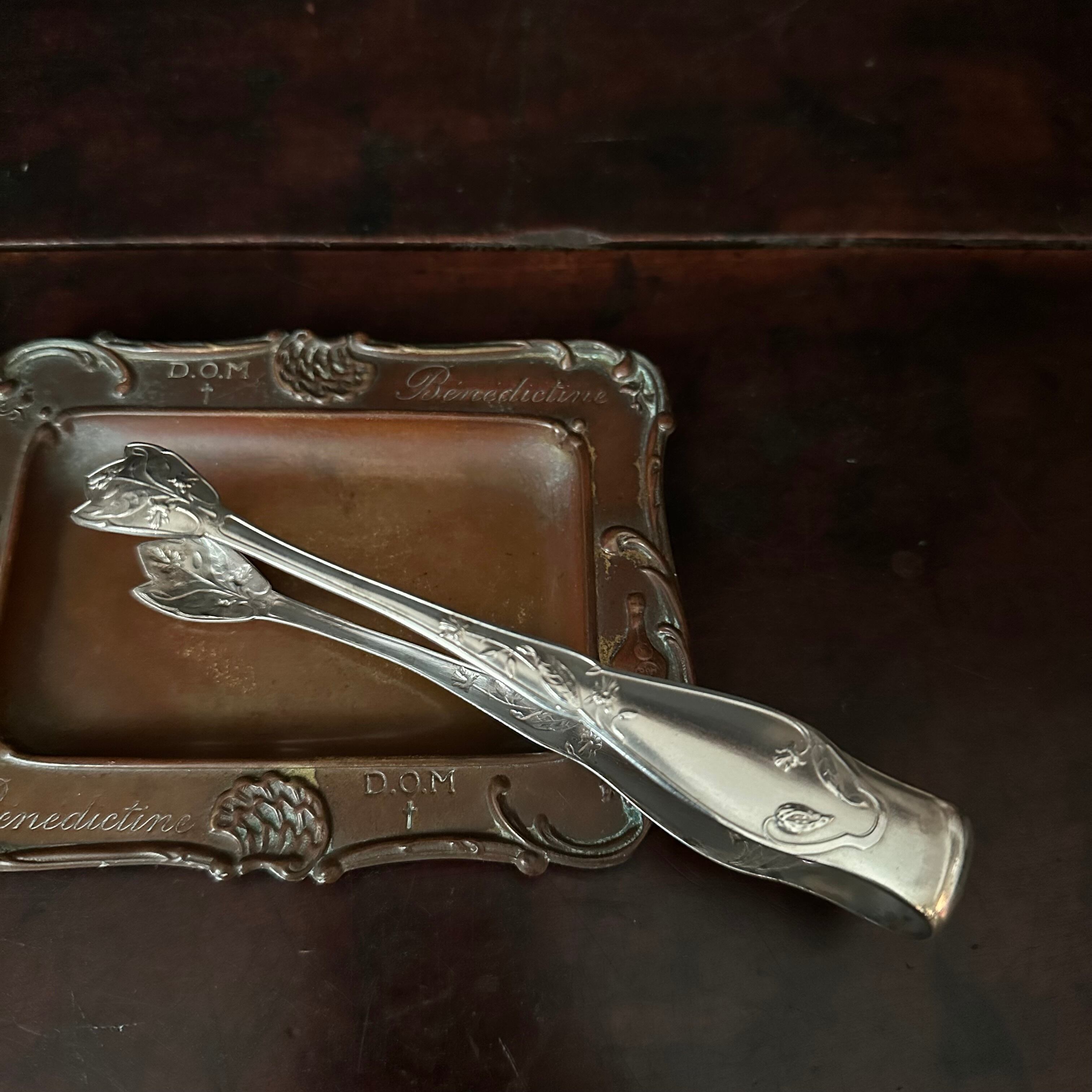 パリの蚤の市で見つけたシルバープレート製の上品なシュガートングです。