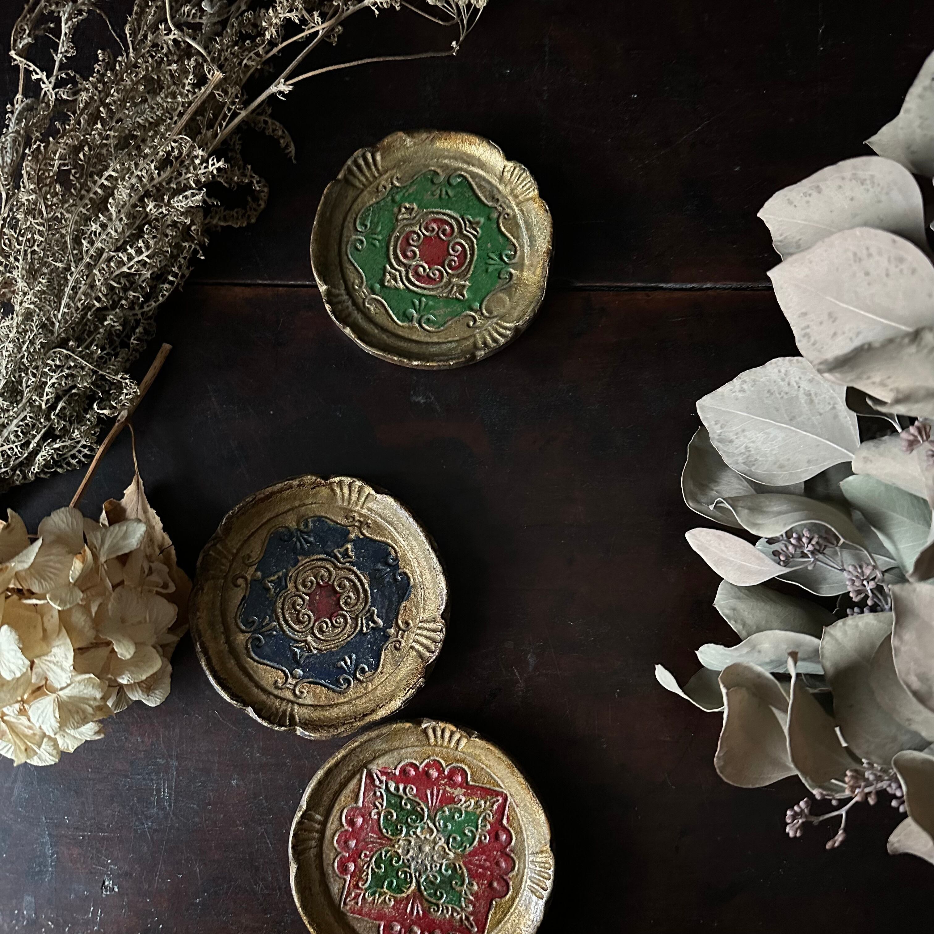 イタリア製のフローレンタイン、ヴィンテージの金彩コースターです。