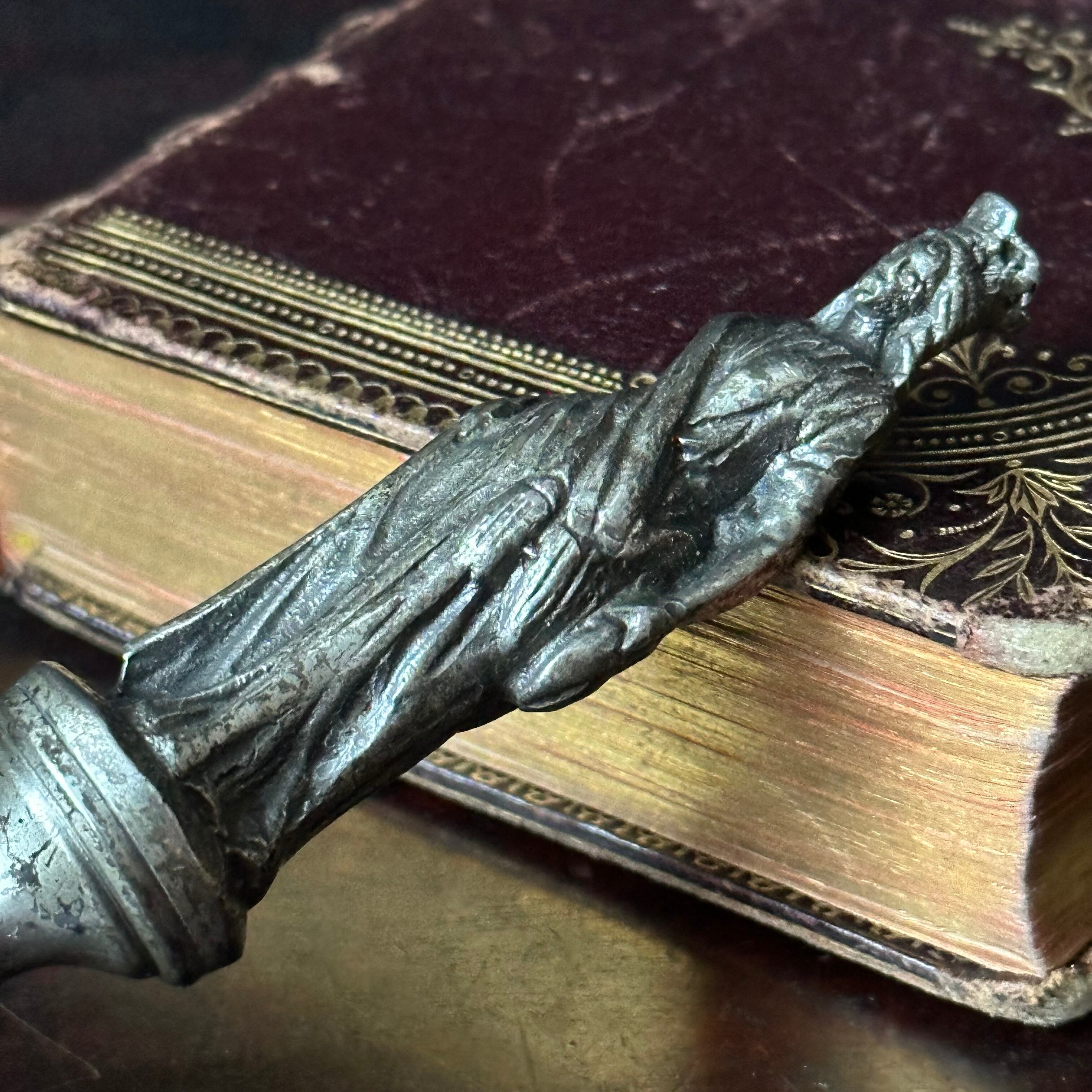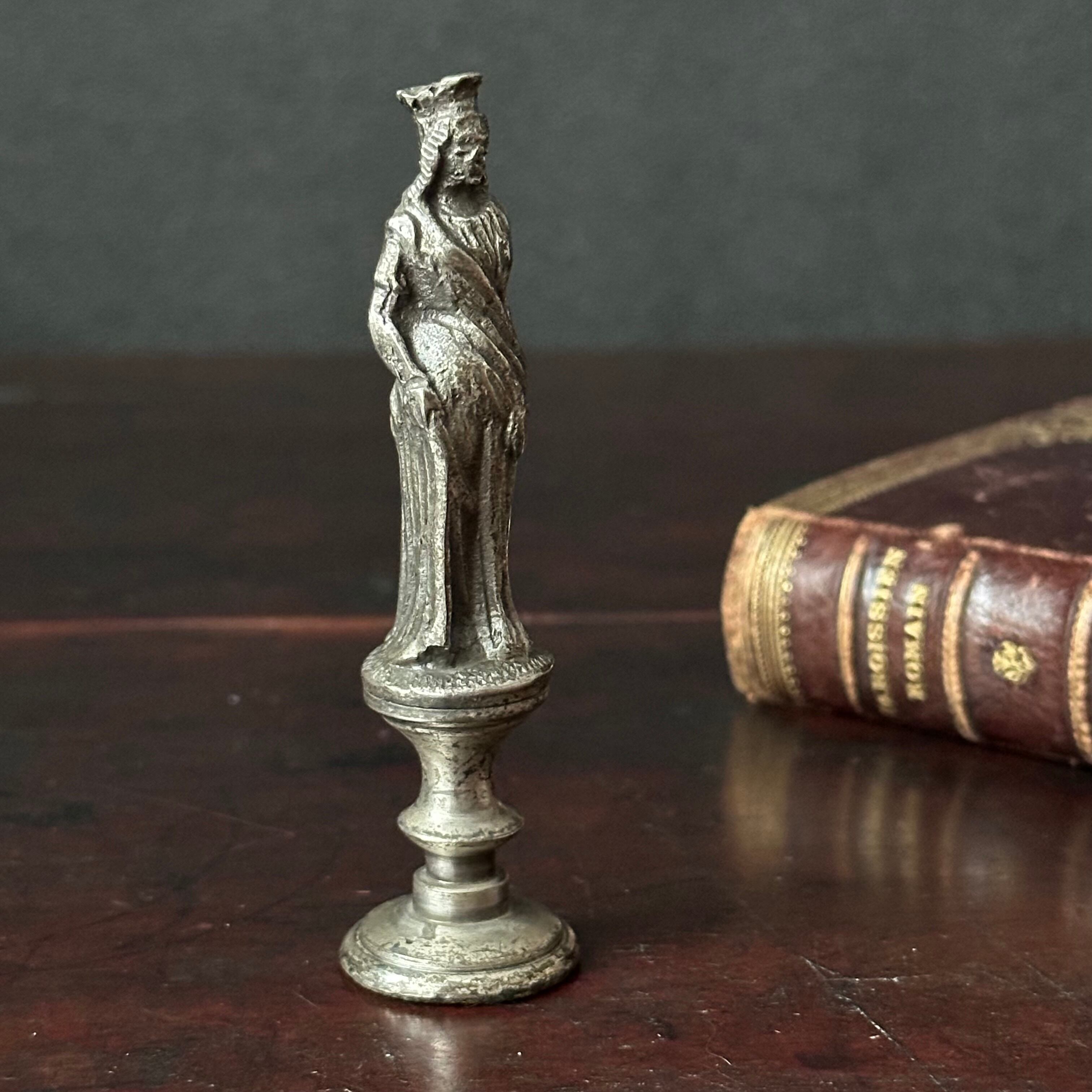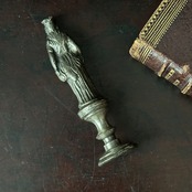 スッと佇むクイーンの姿や精悍な表情に勇ましさが垣間見れる存在感のあるお品となっています。素材は分かりかねますが金属製で細部まで丁寧に作られており、しっかりとした重みを感じます。