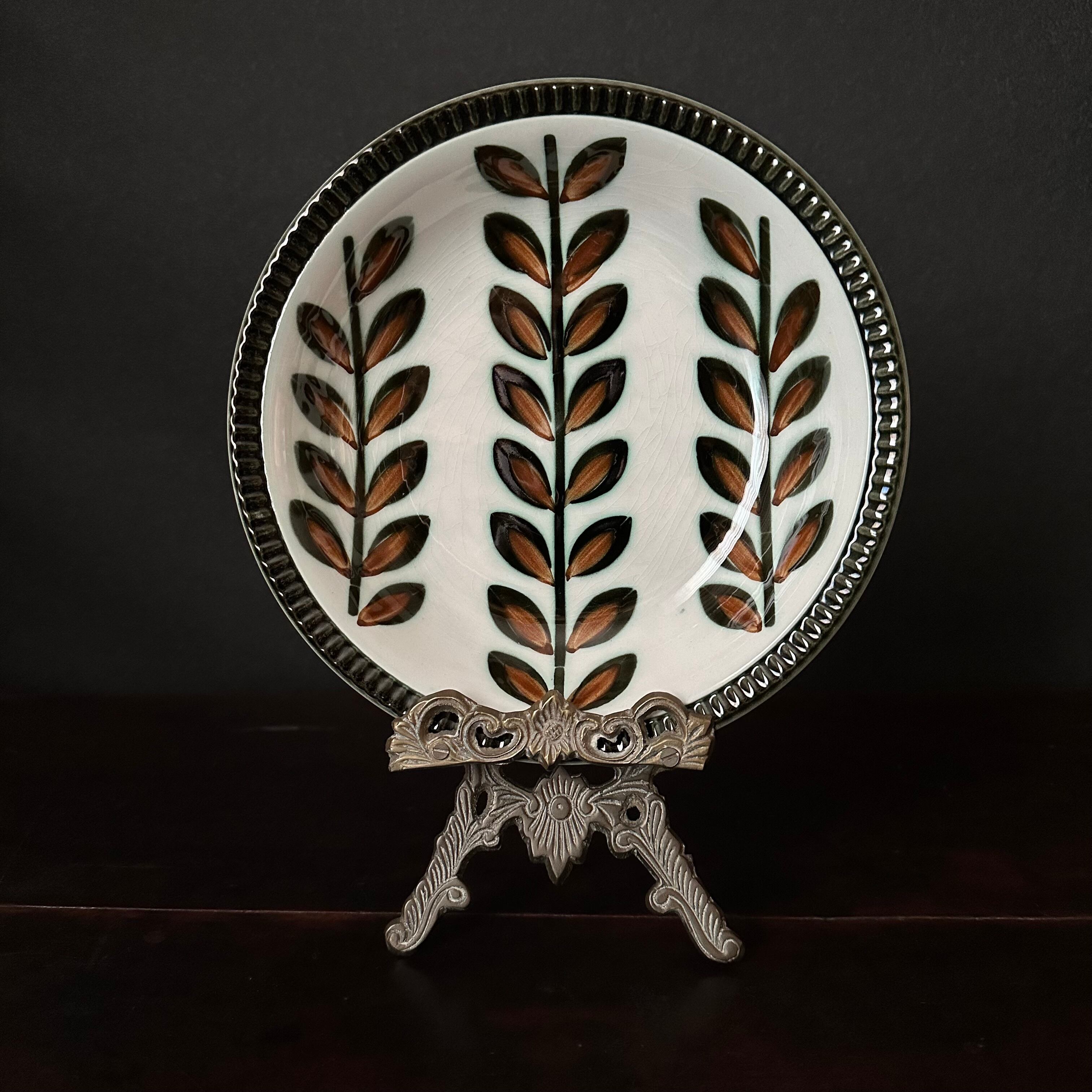 こちらは北欧デザインのようなリーフ模様がハンドペイントで描かれており、艶感とヴィンテージ感たっぷりなRambouilletランブイエシリーズです。