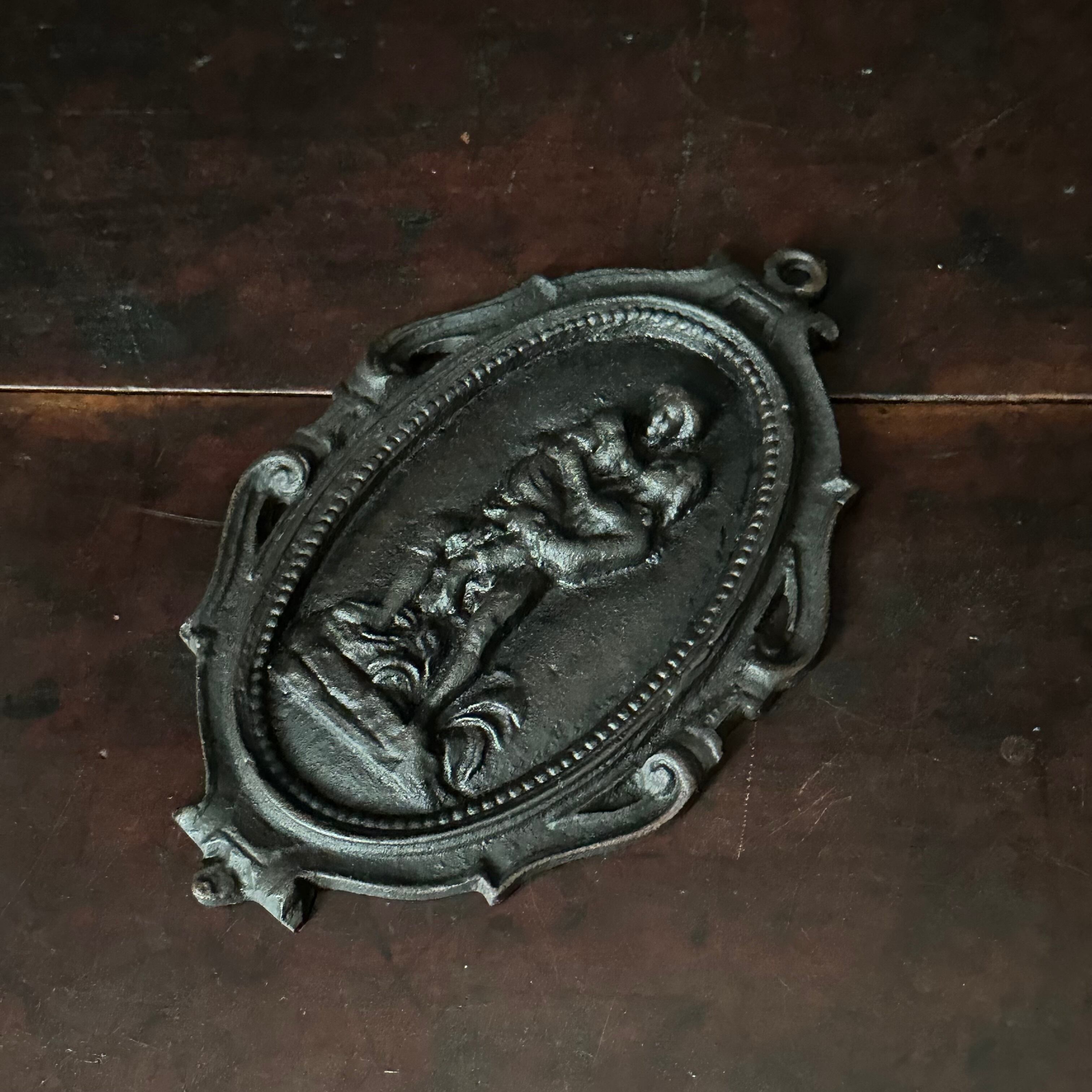 立体感のある装飾が美しいアイアンのウォールディスプレイプレート。