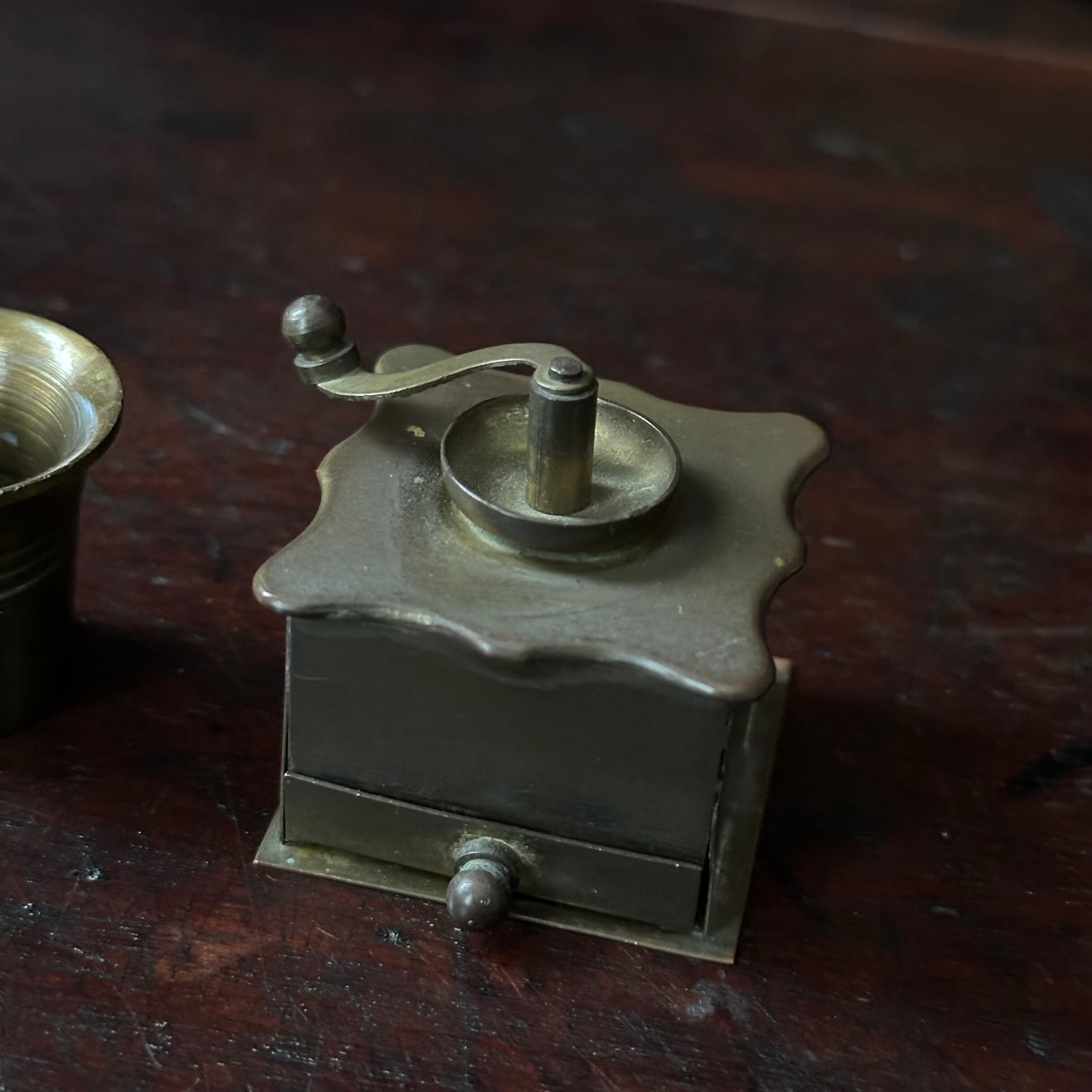 手のひらサイズですが細部まで繊細に作られており、コーヒーミルのハンドルはくるくると周り、受皿も引き出せます。
