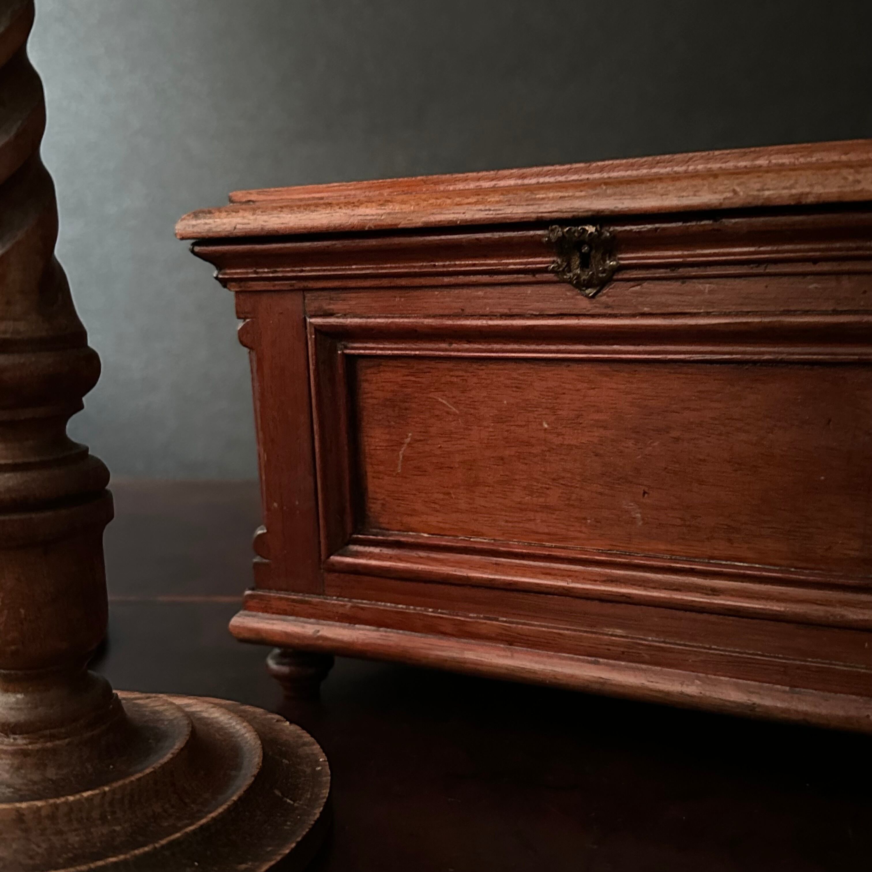 高級感溢れる佇まいの小さな木製のジュエリーボックスです。パリの蚤の市で見つけました。