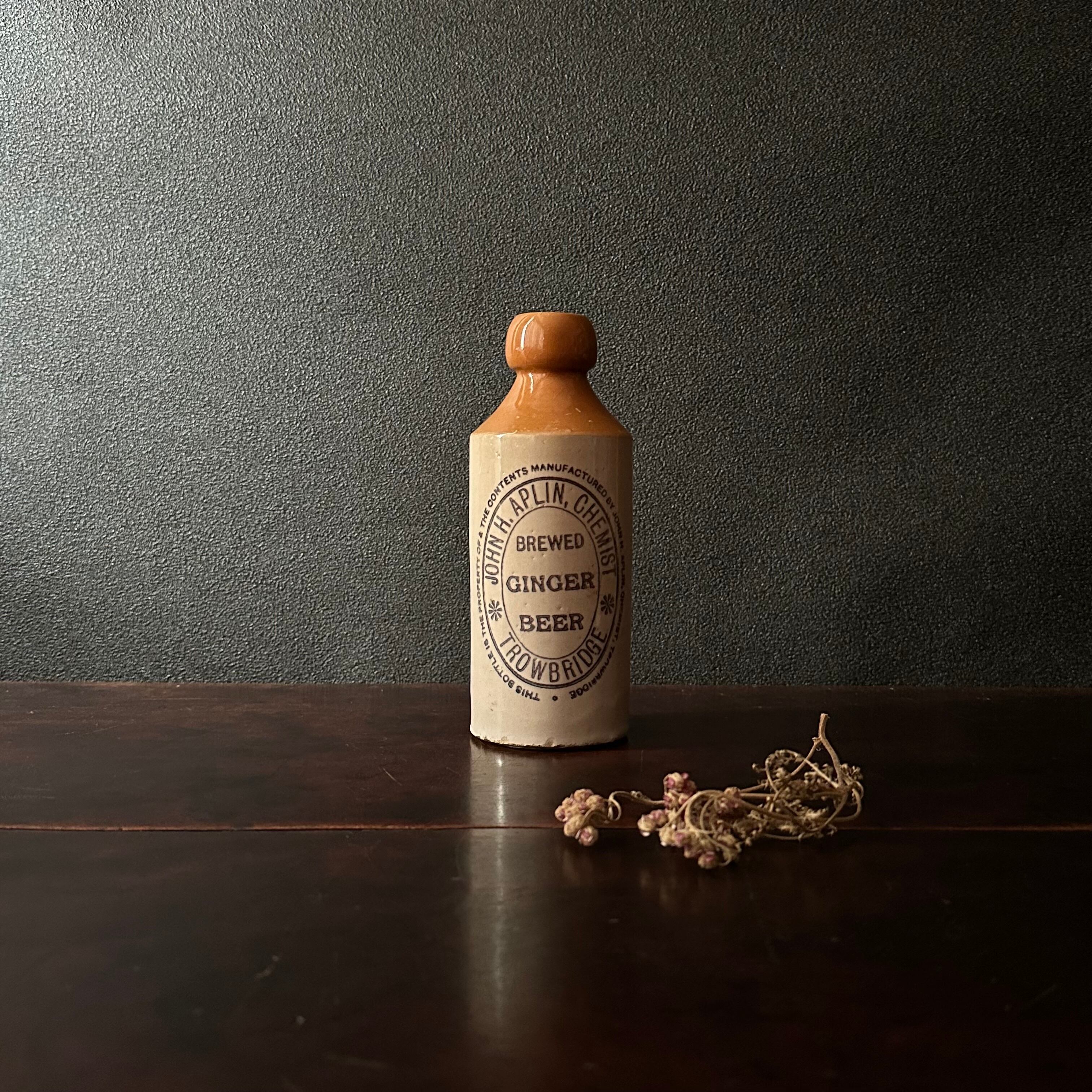 ロゴには「JOHN H,APLIN CHEMIST TROWBRIDGE」「BREWED GINGER BEER 」 と書かれており、ジョン H. アプリン の科学者トローブリッジが醸造したジンジャー ビールであると言うことが分かります。