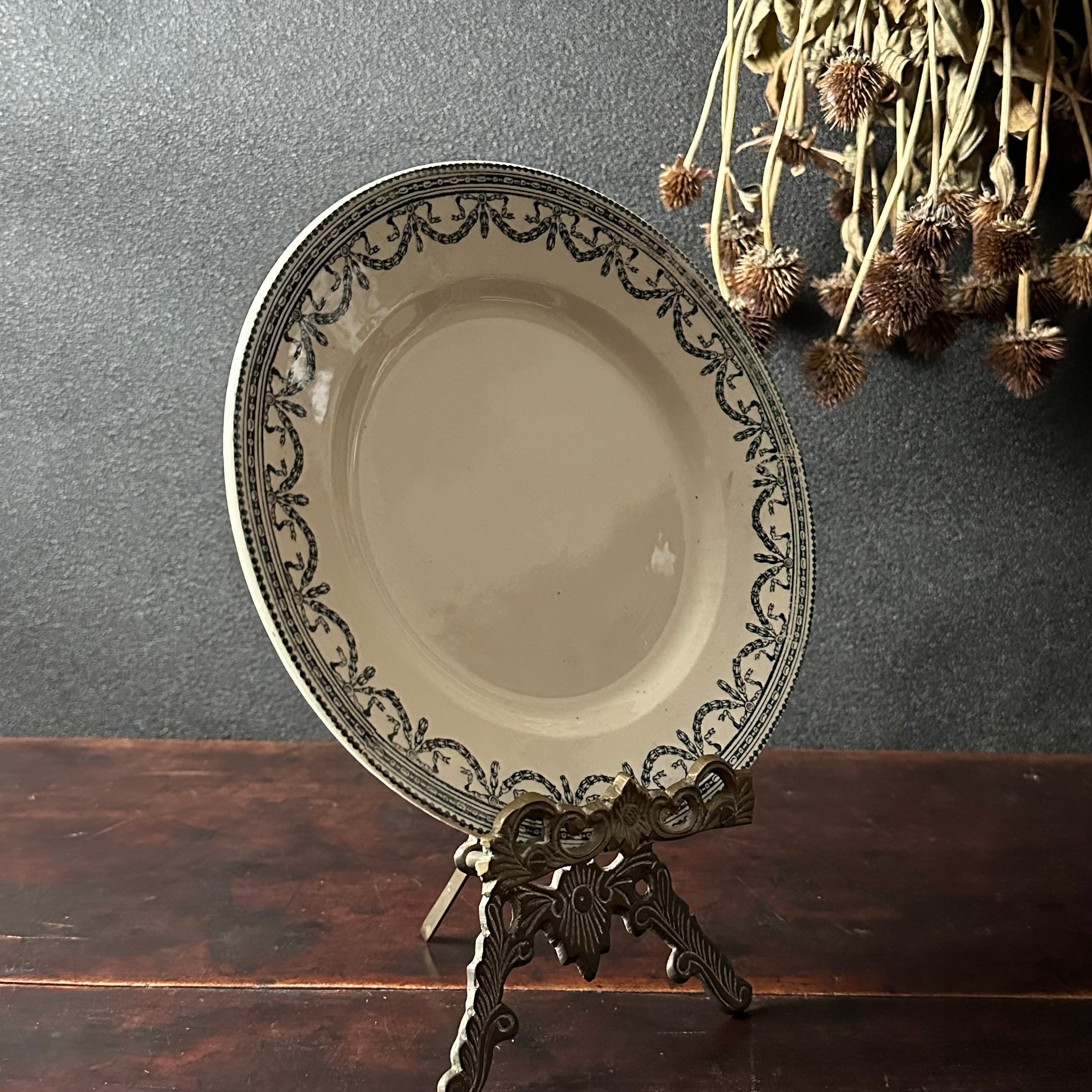 こちらは半陶半磁器のTerre de fer テール・ド・フェールで作られております。Terre de fer は19世紀後半頃により白くより頑丈にと量産されたもの。1900年前後頃のプレートと思われます。