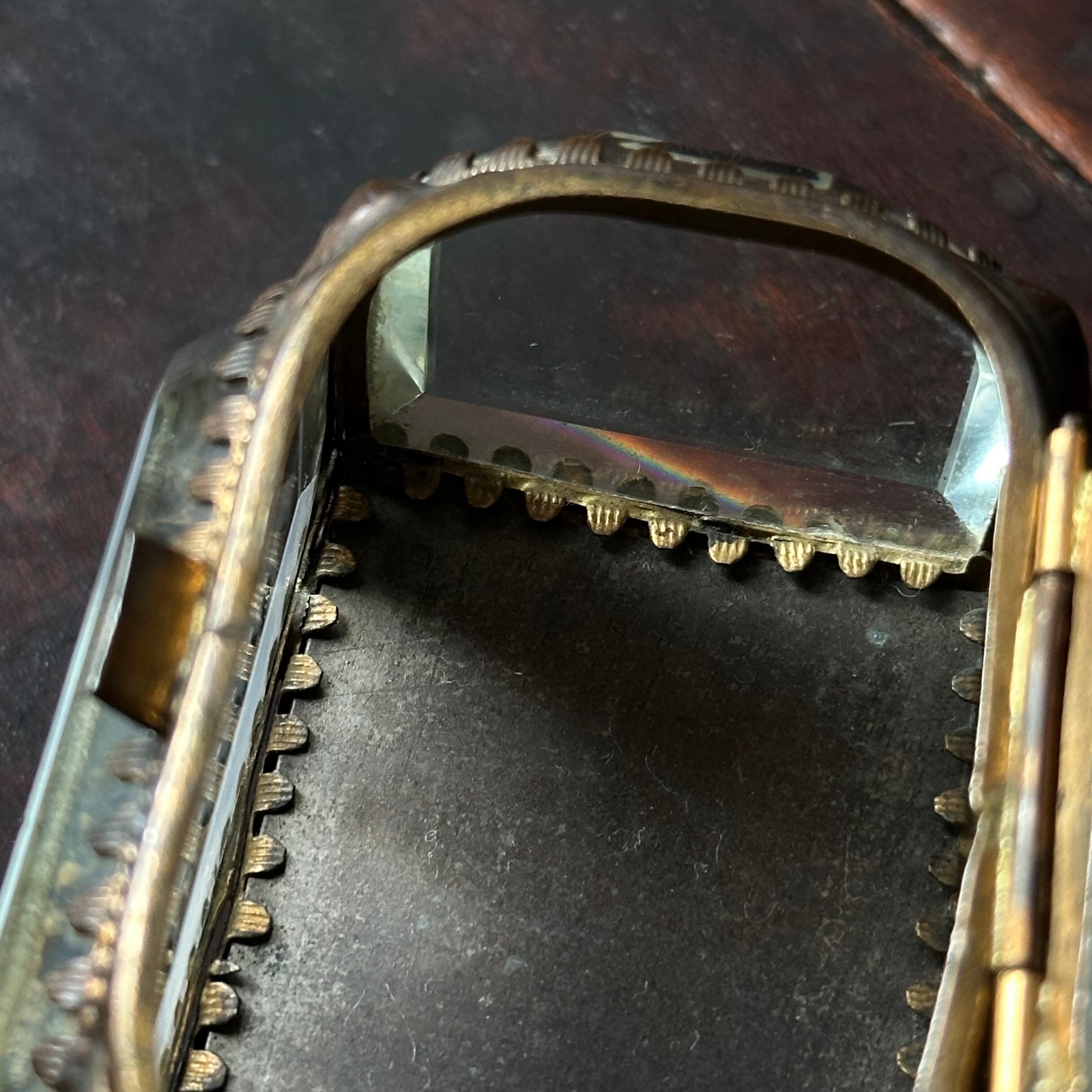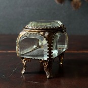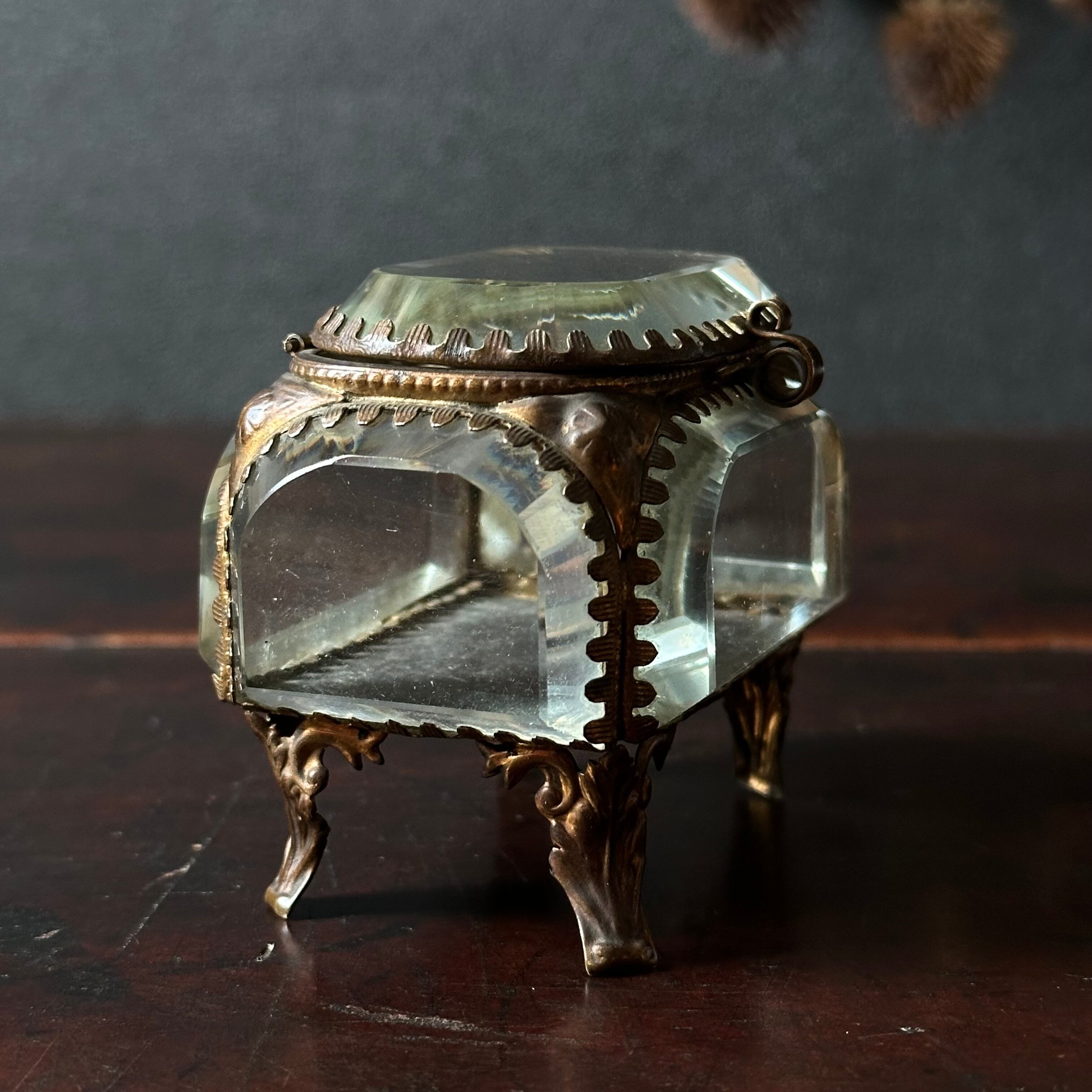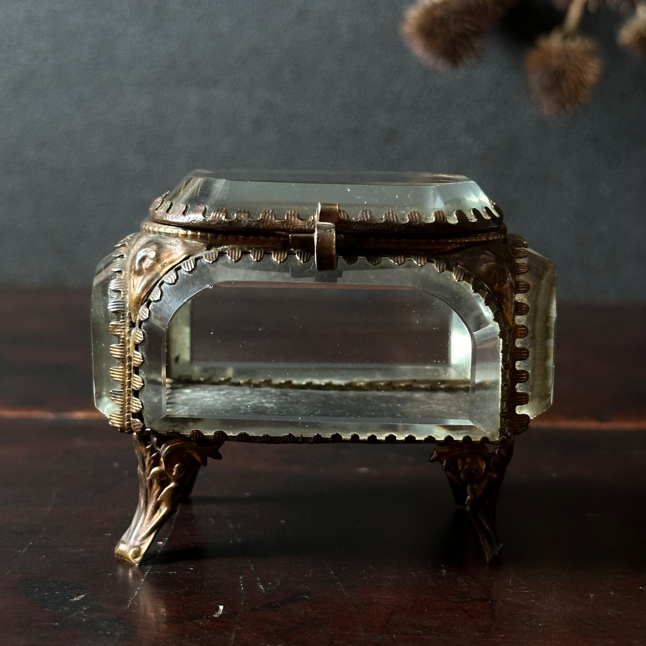 France Vintage ガラス 猫脚真鍮装飾 ジュエリーケース