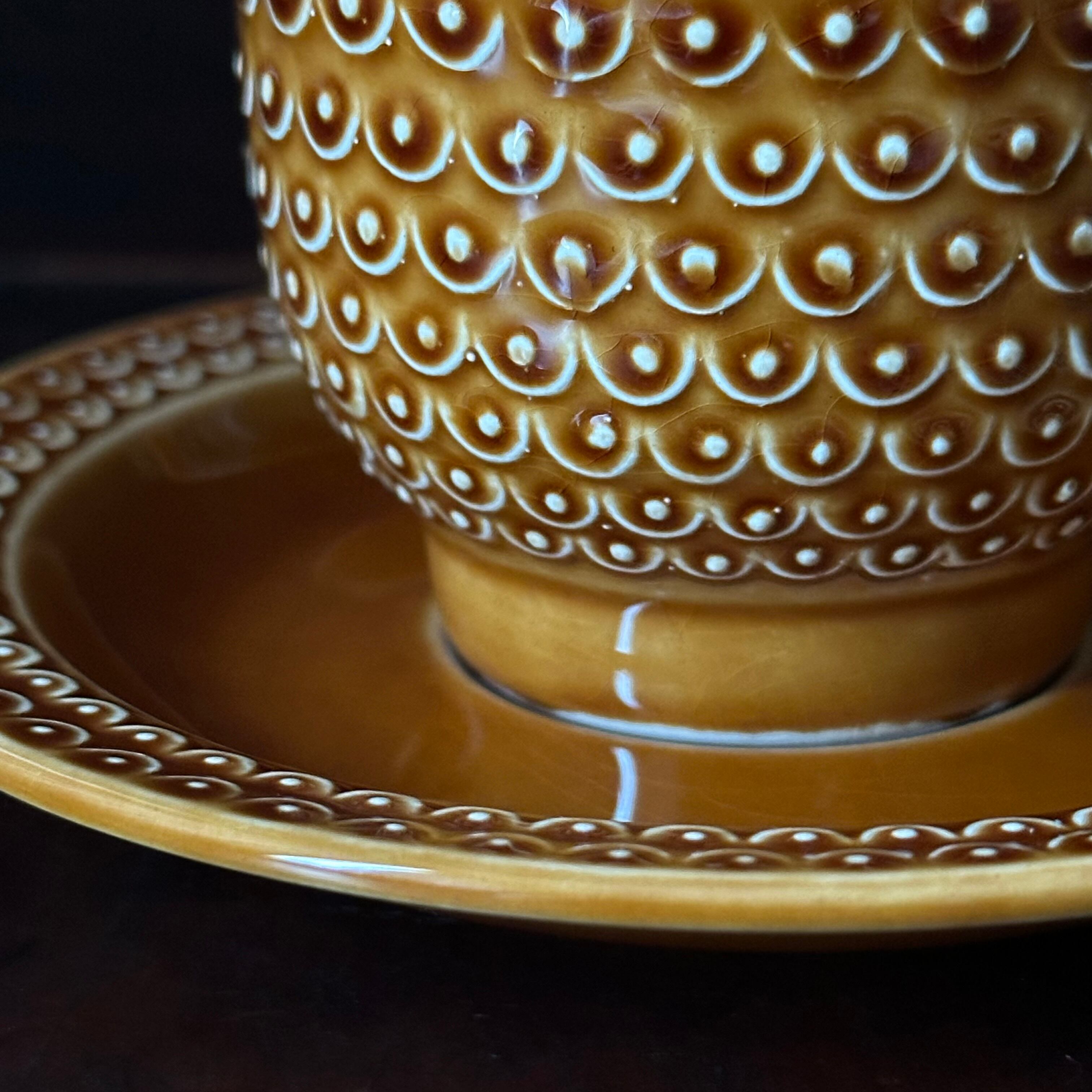 飴色のベースに白いウロコ模様の個性的なデザインで、艶のある器の表情が美しくエスプレッソカップとしてお使いいただけるような小さなサイズです。
