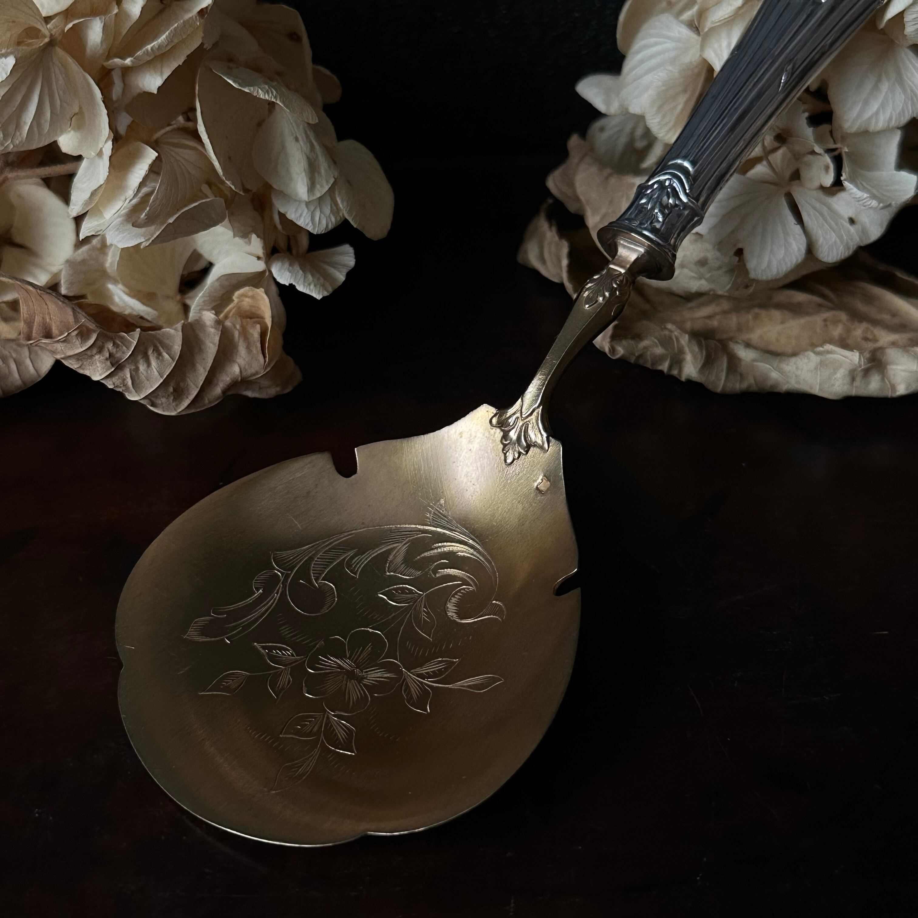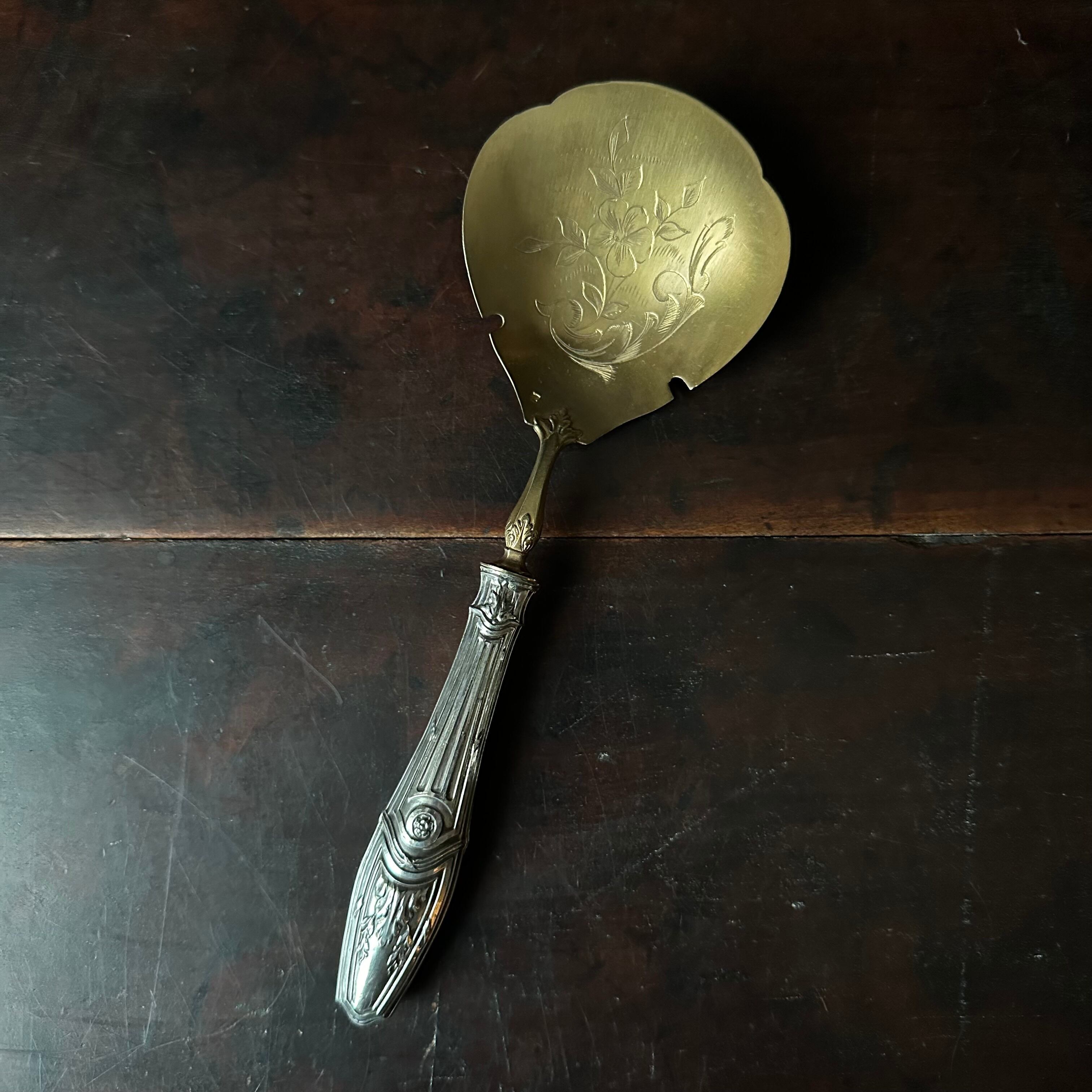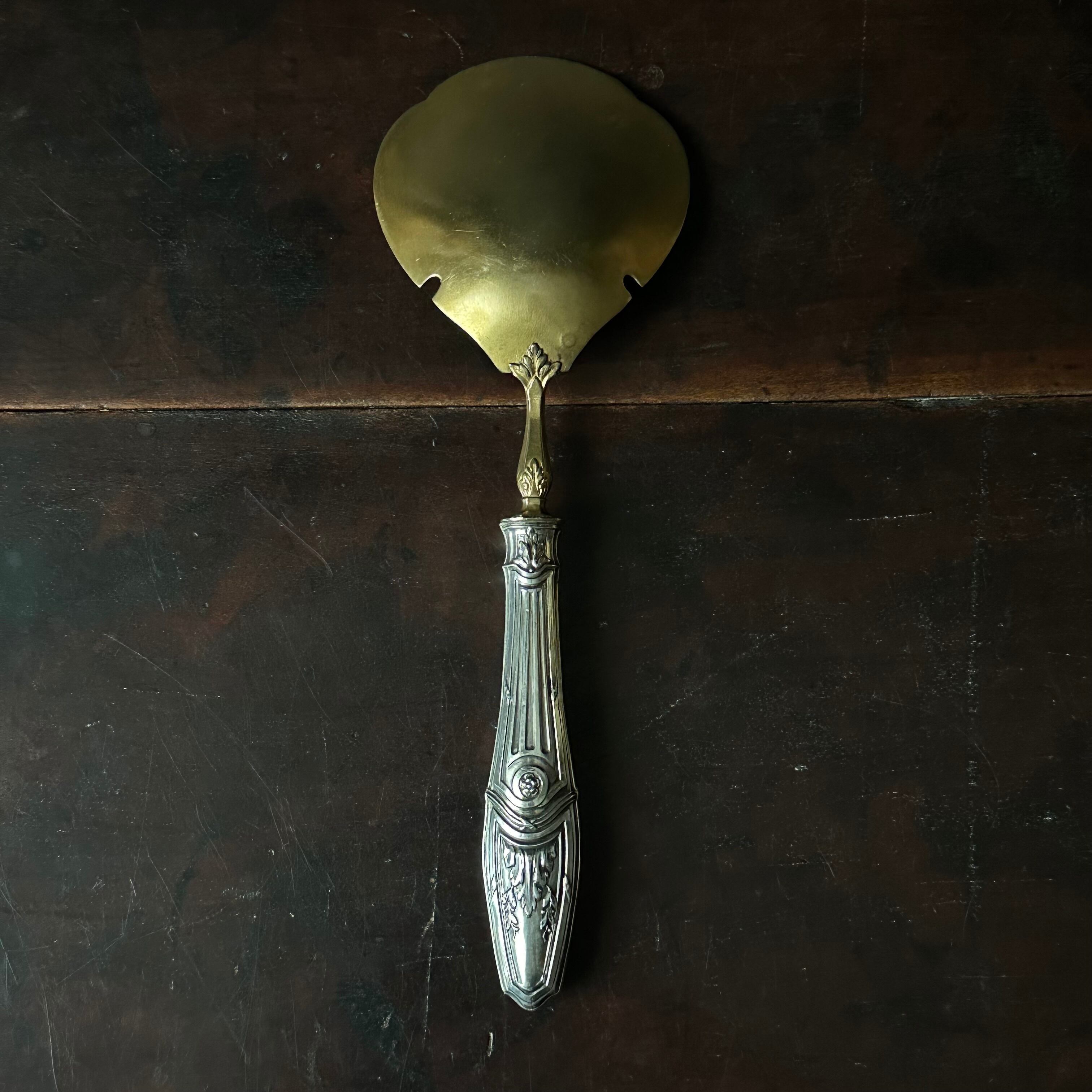 シルバーと真鍮のデザイン製溢れる素敵なヴィンテージのサービングスプーンです。パリの蚤の市で見つけたものになります。