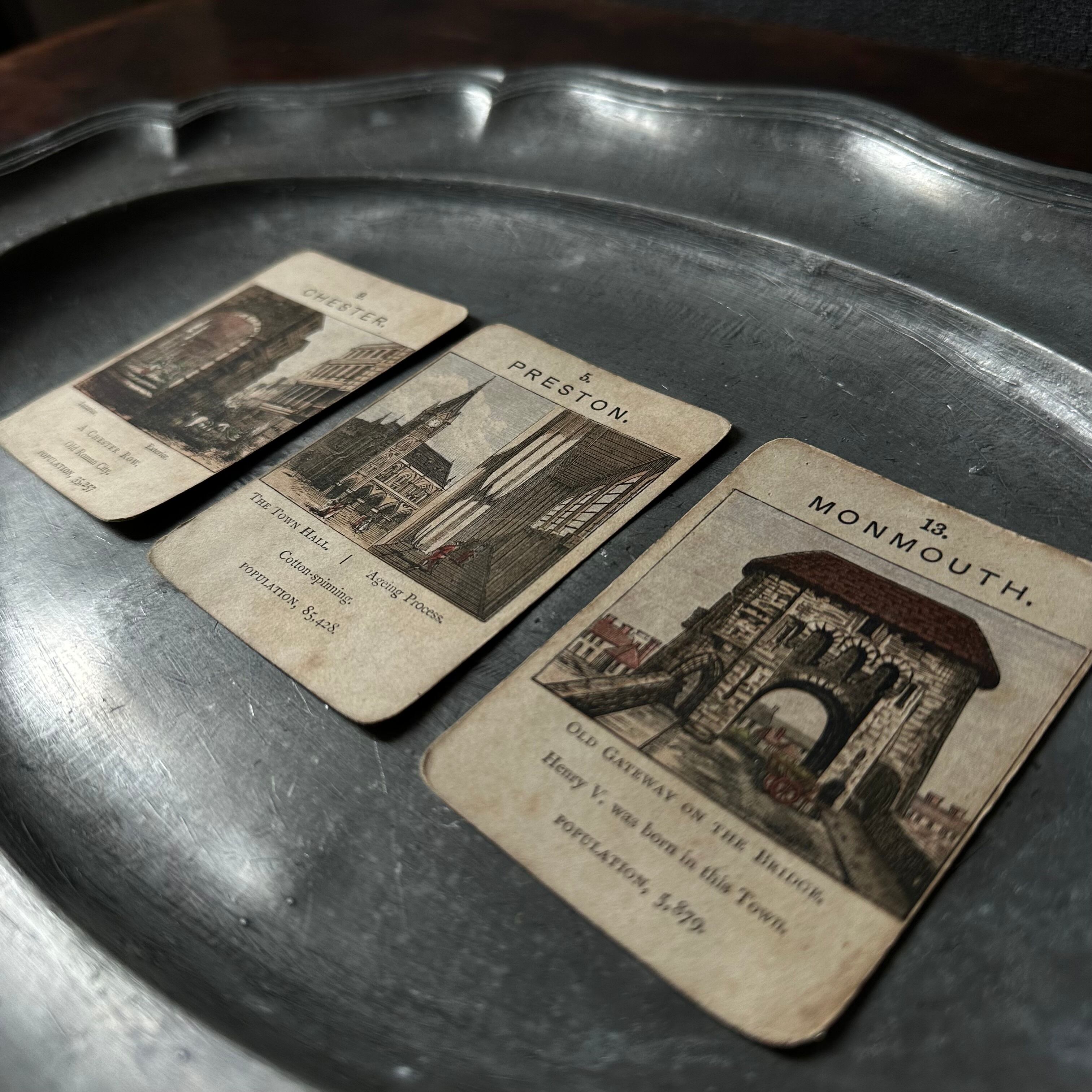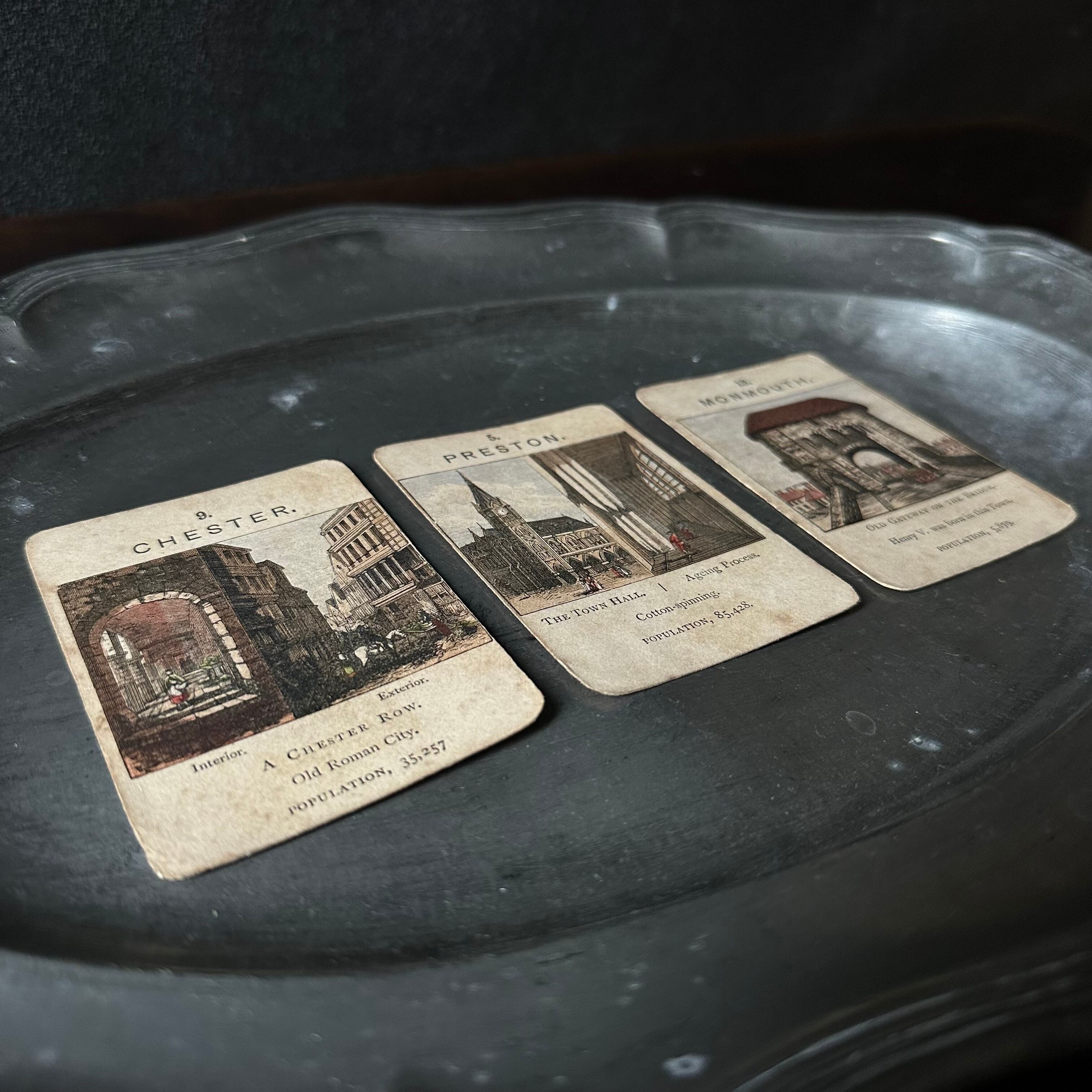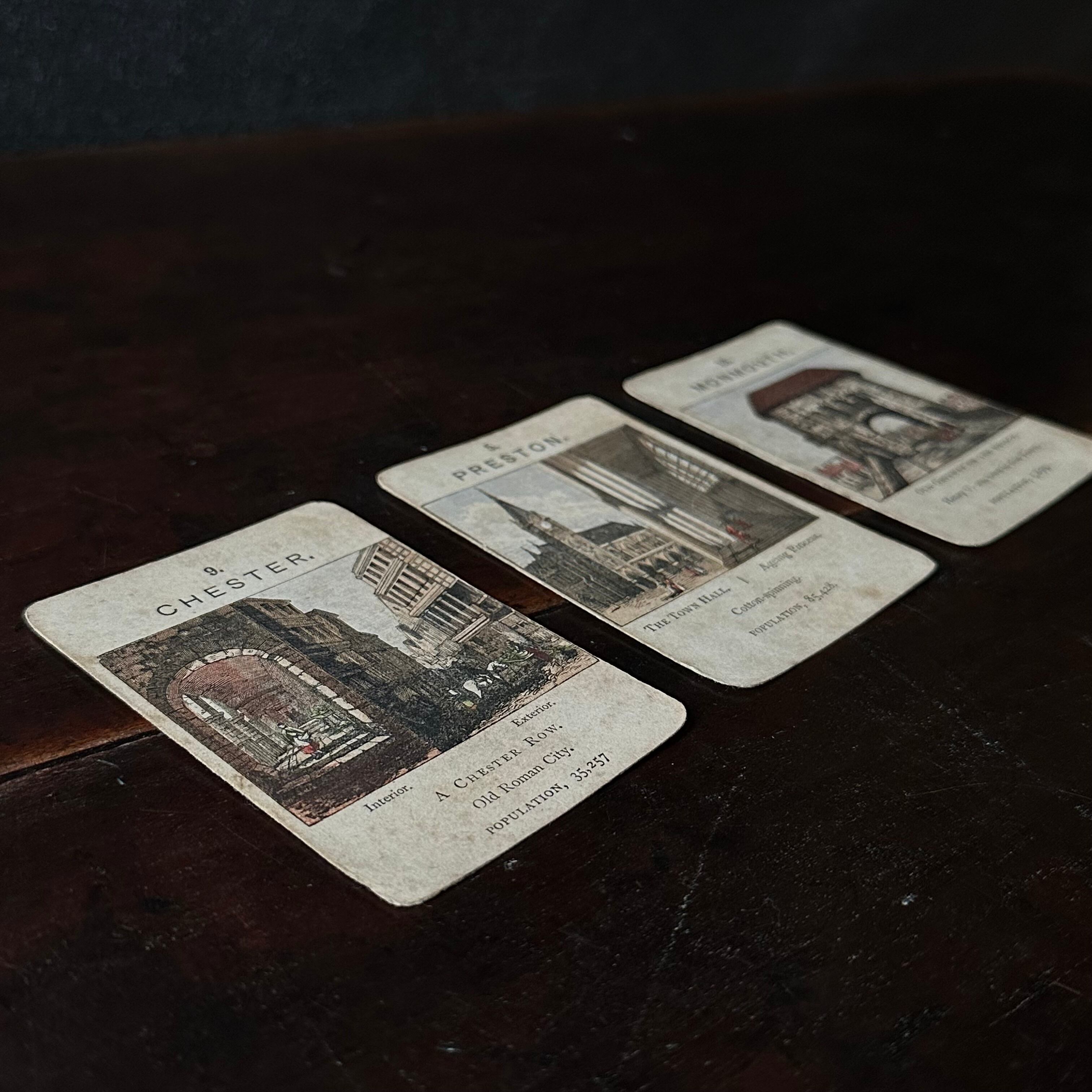イギリスの主要都市について描かれたゲームのカード、3枚セットです。