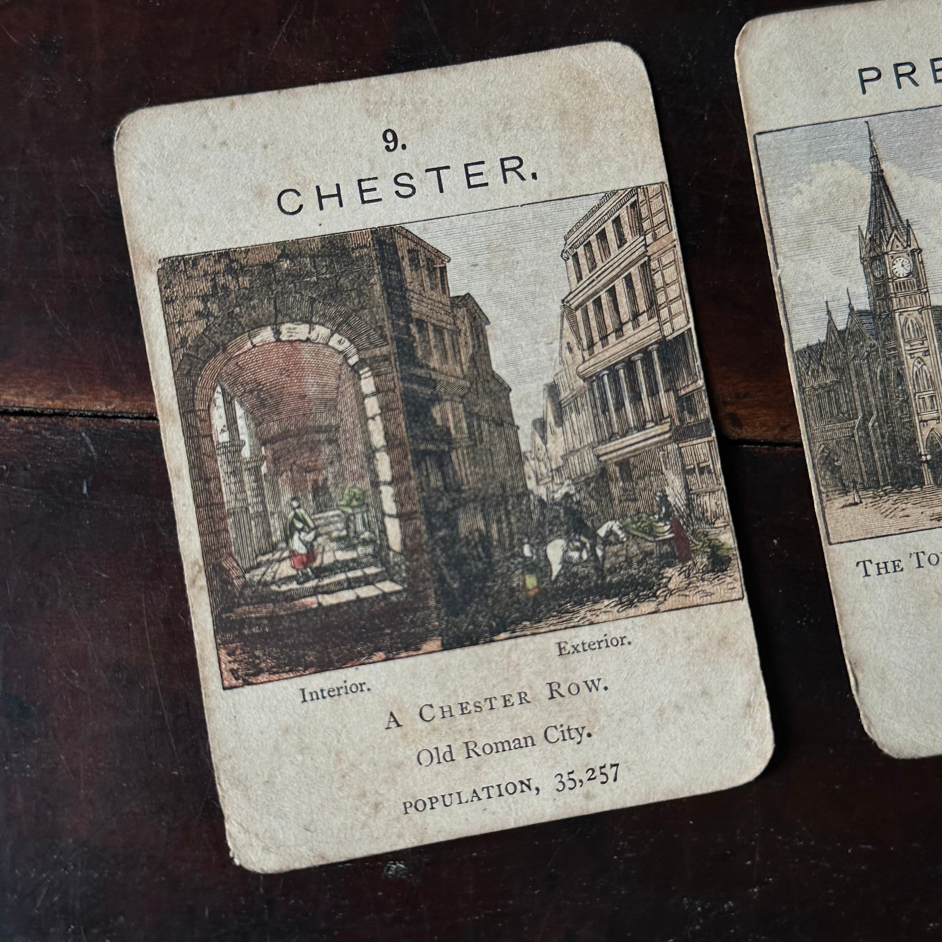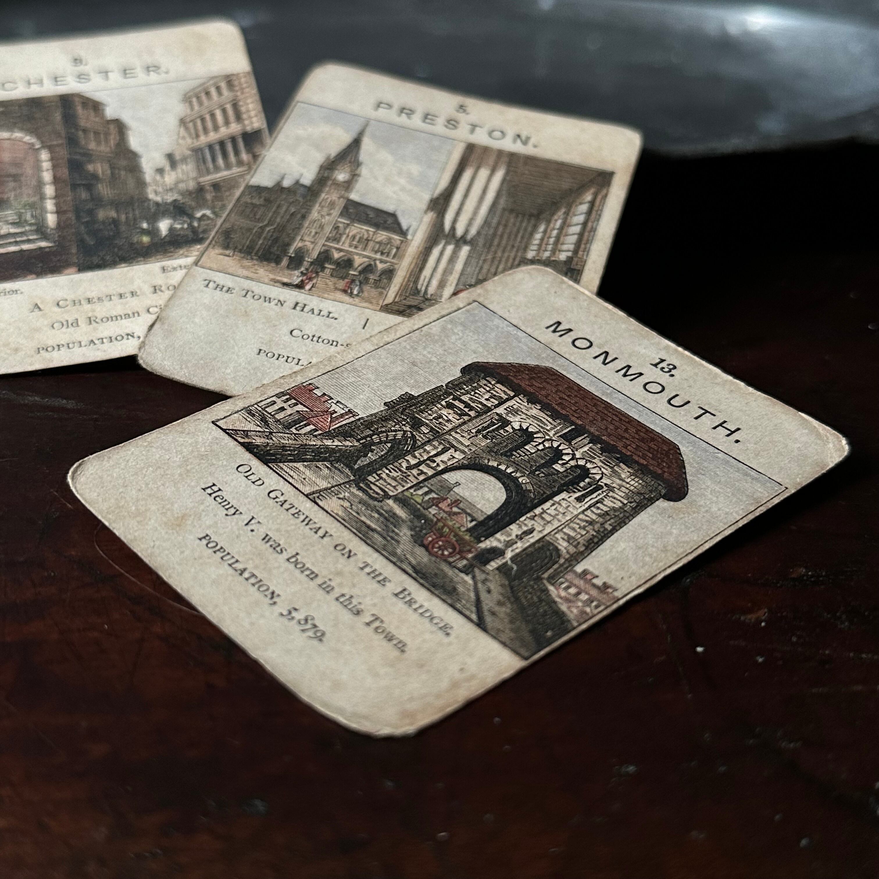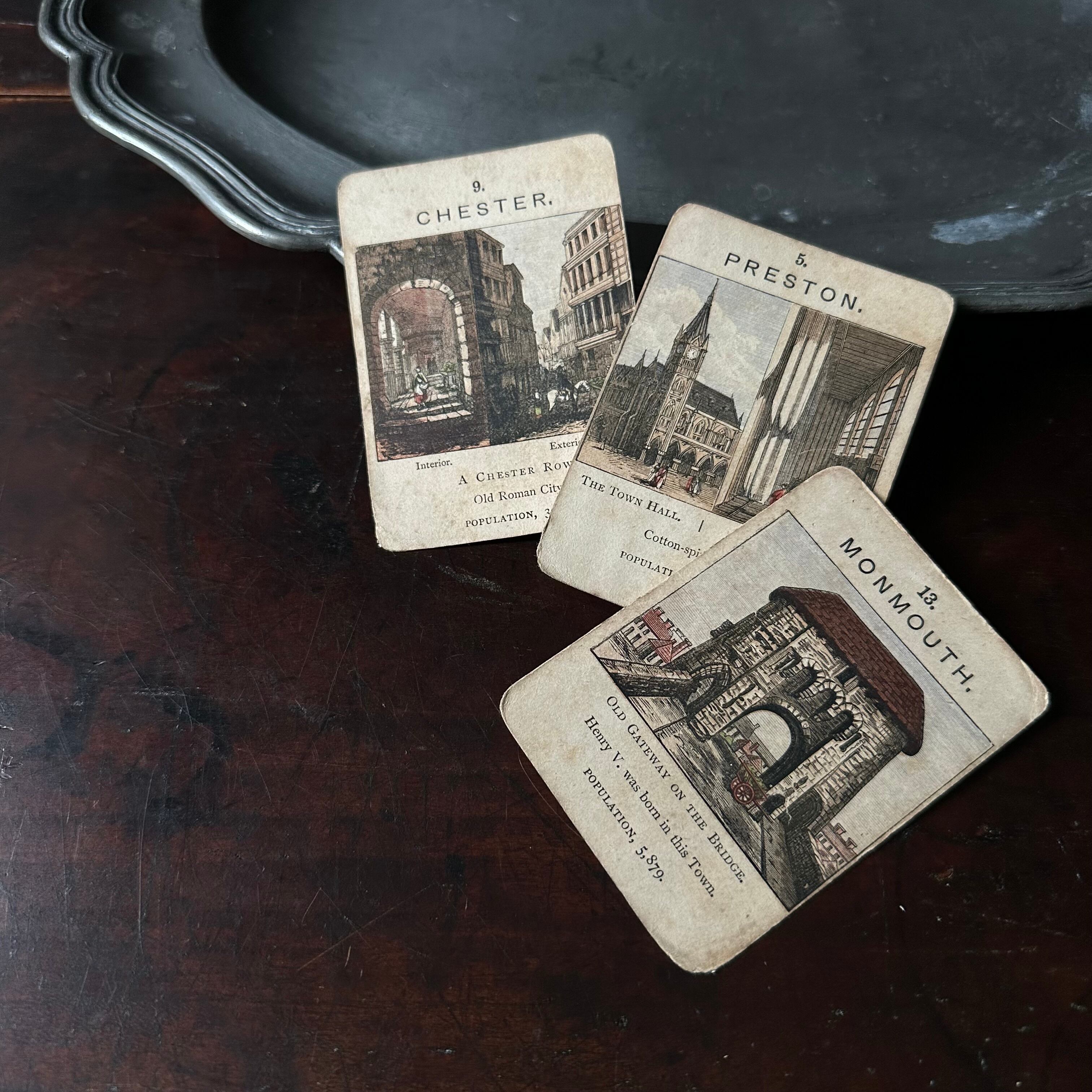 イギリスの主要都市について描かれたゲームのカード、3枚セットです。
