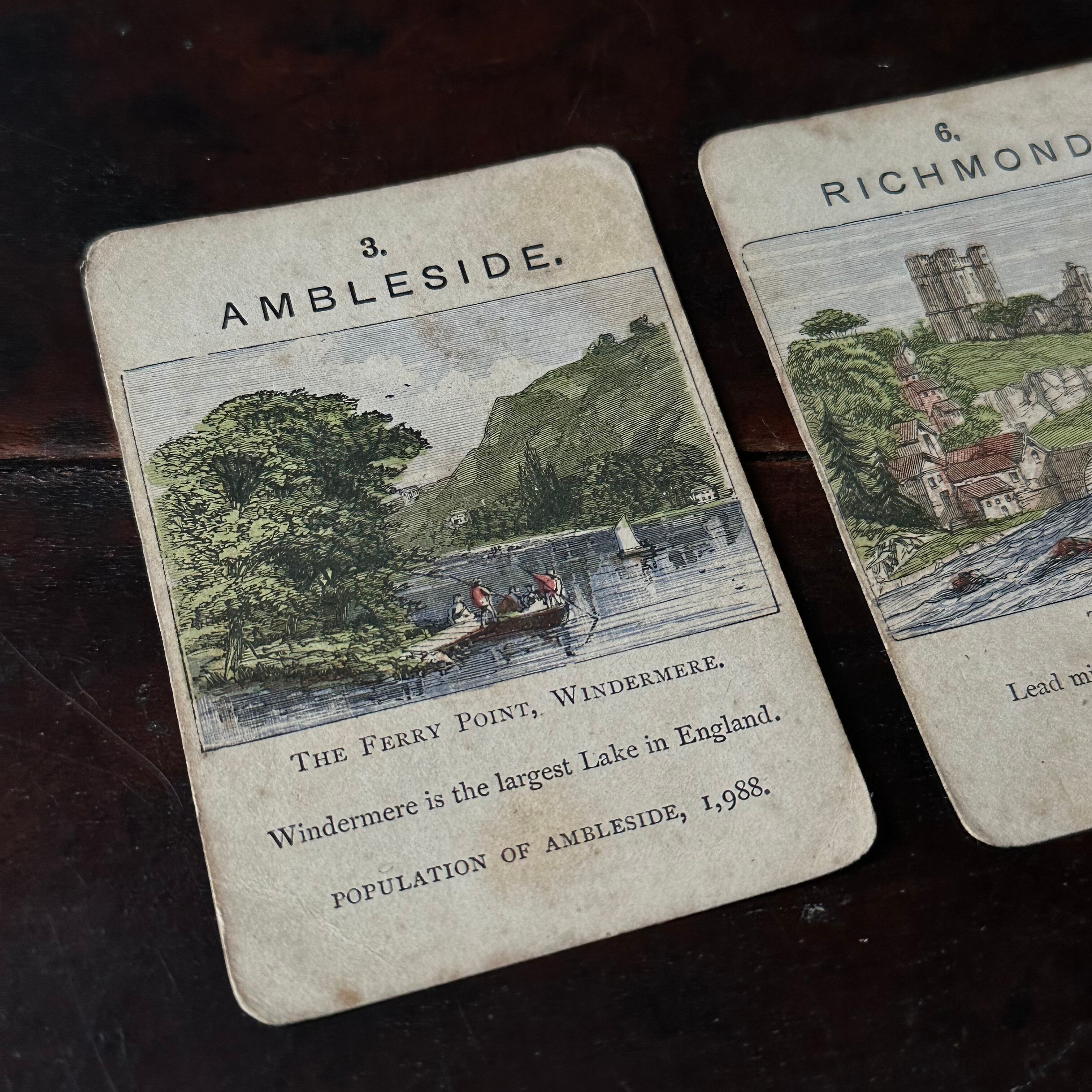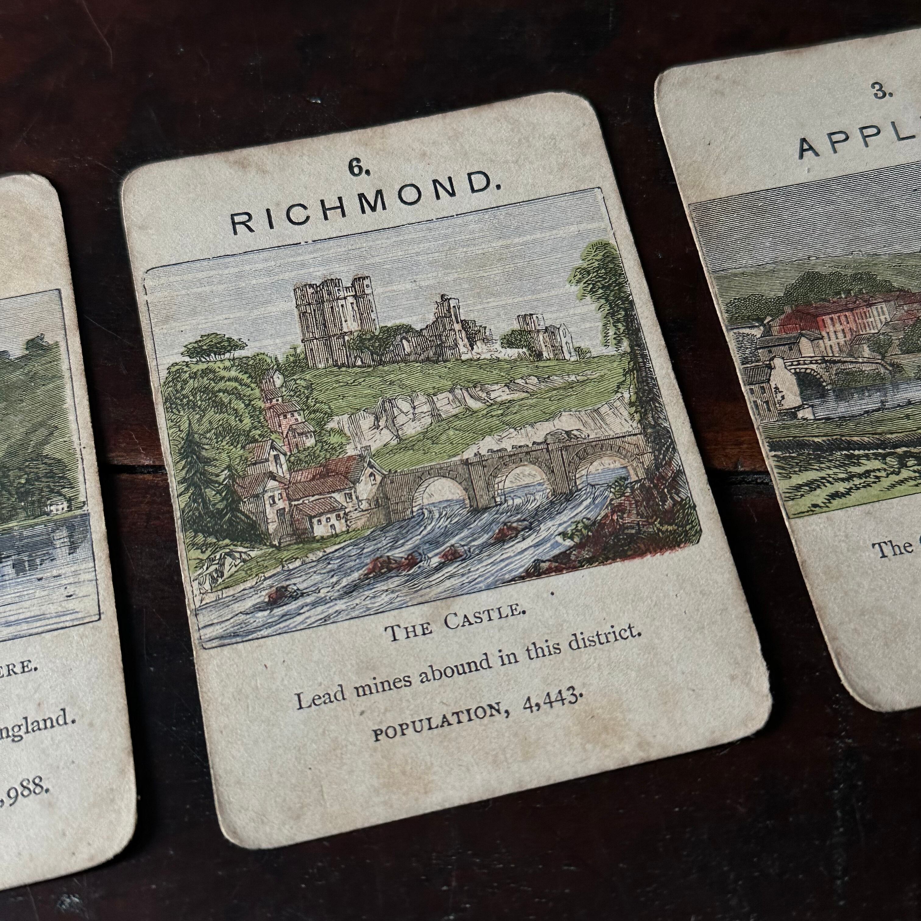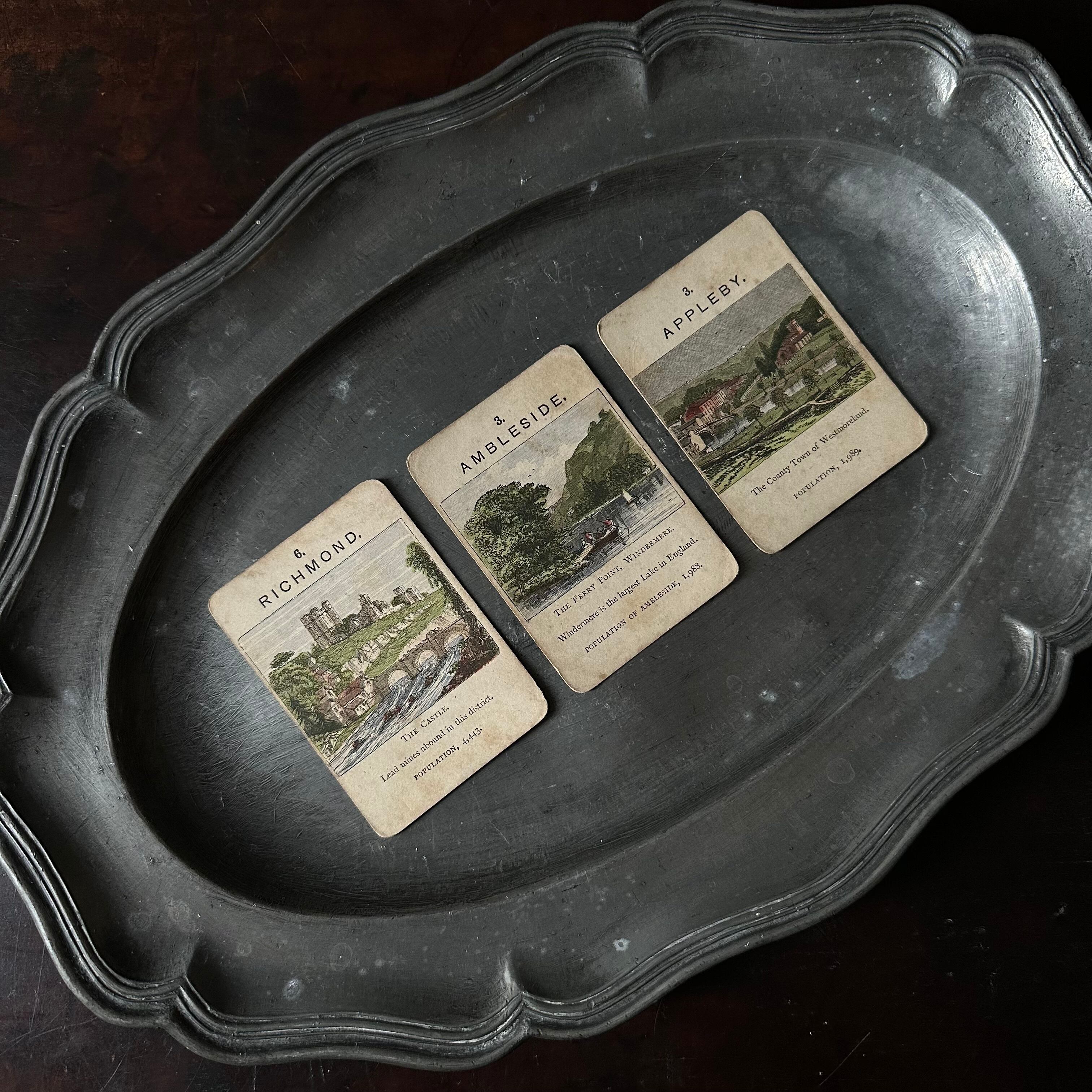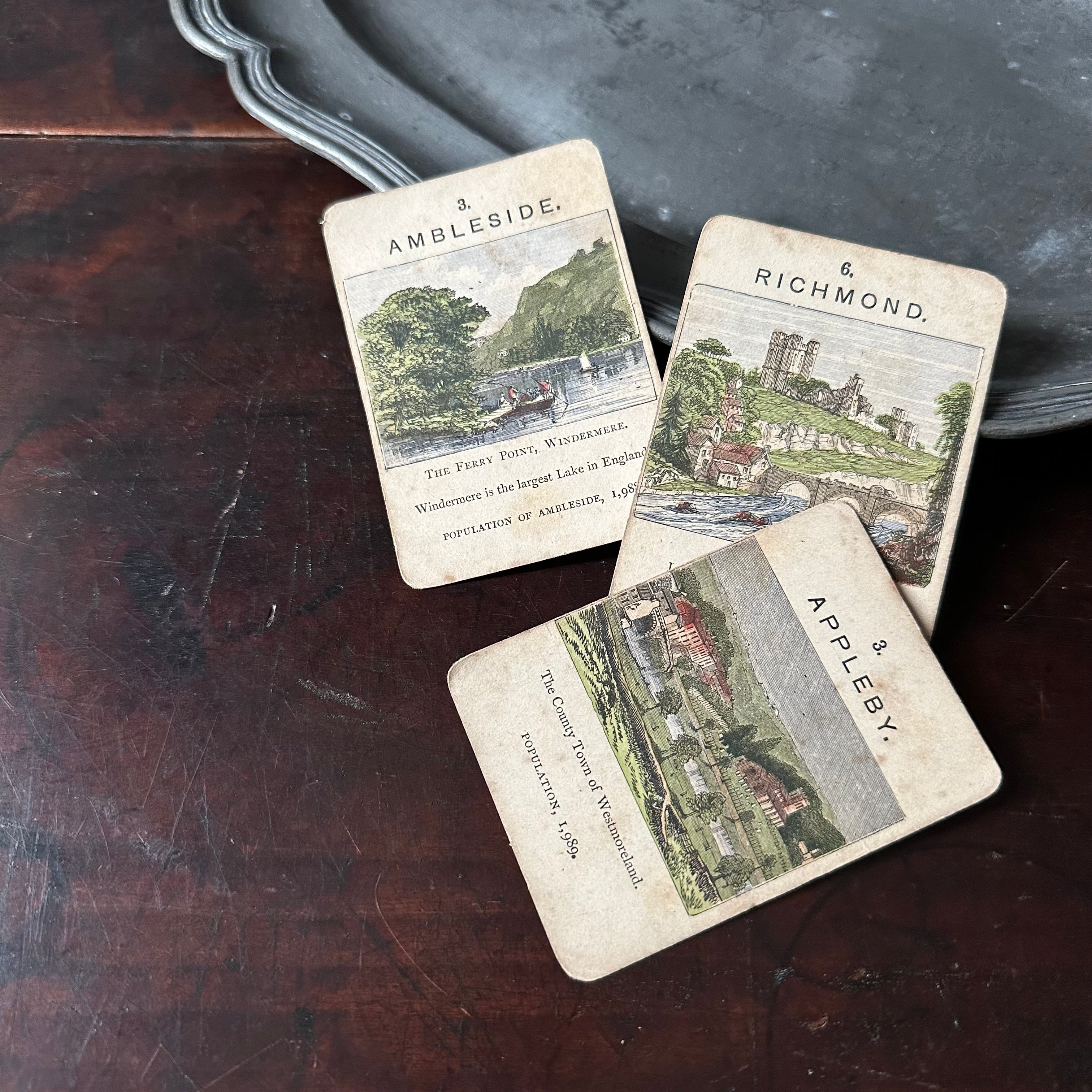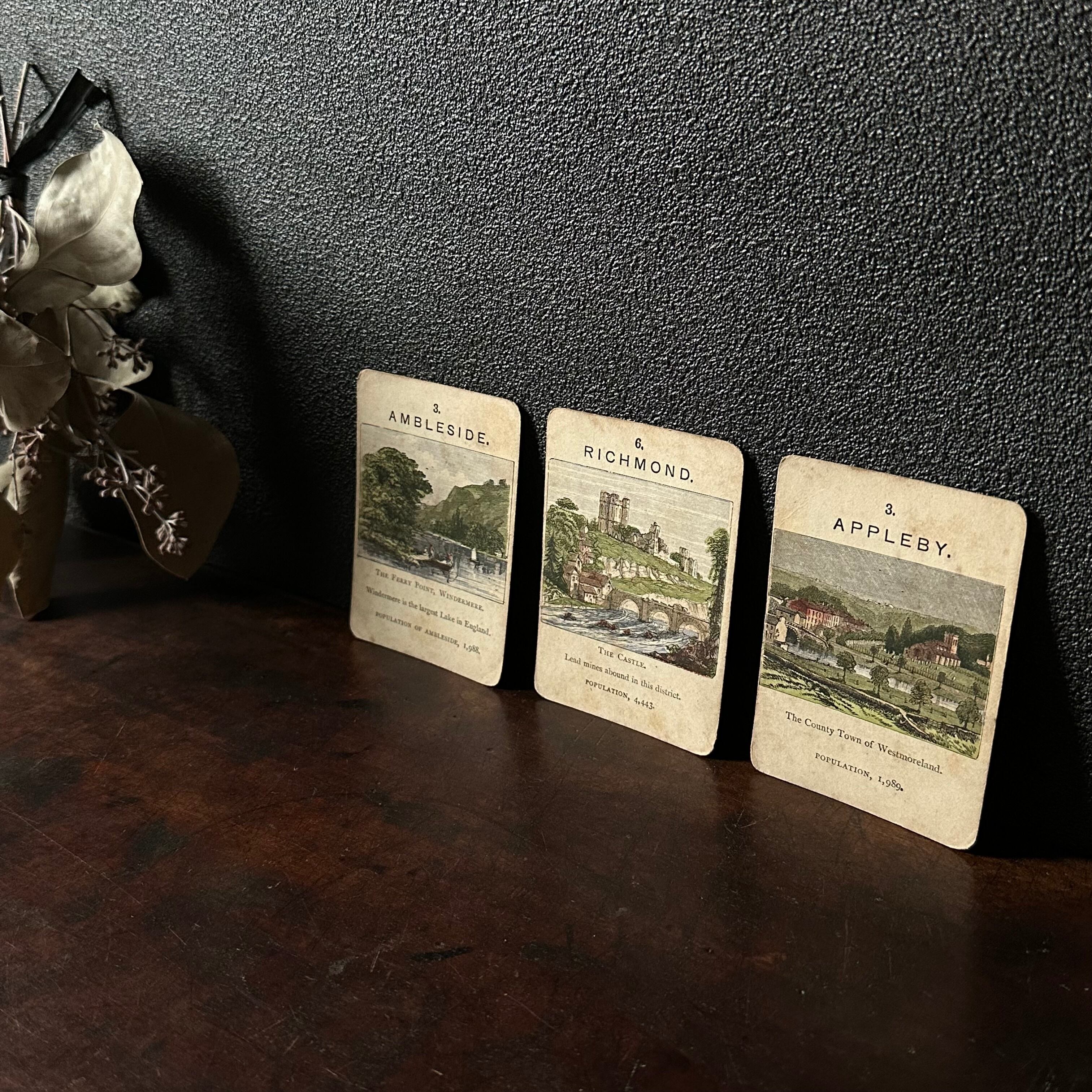 イギリスの主要都市について描かれたゲームのカード、3枚セットです。