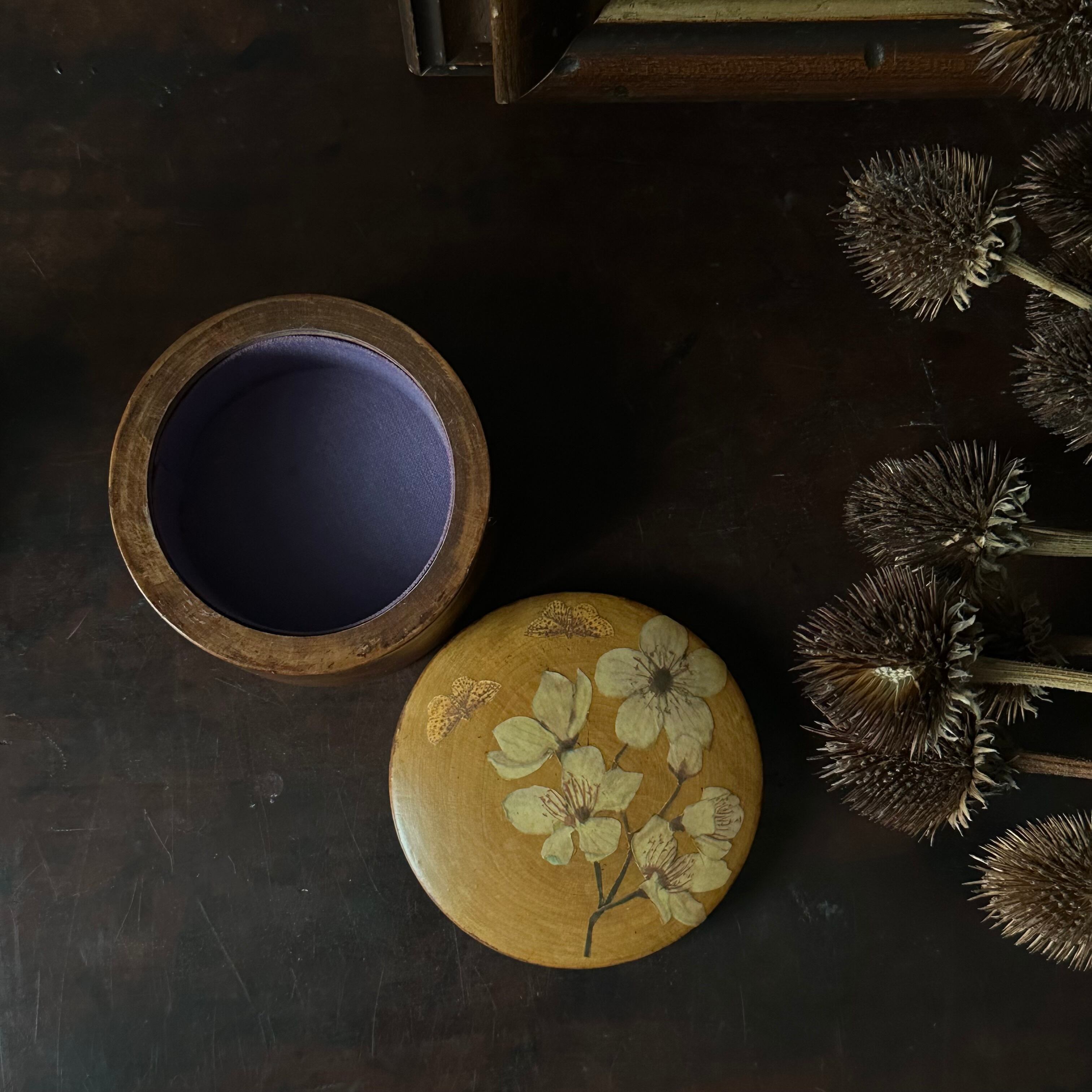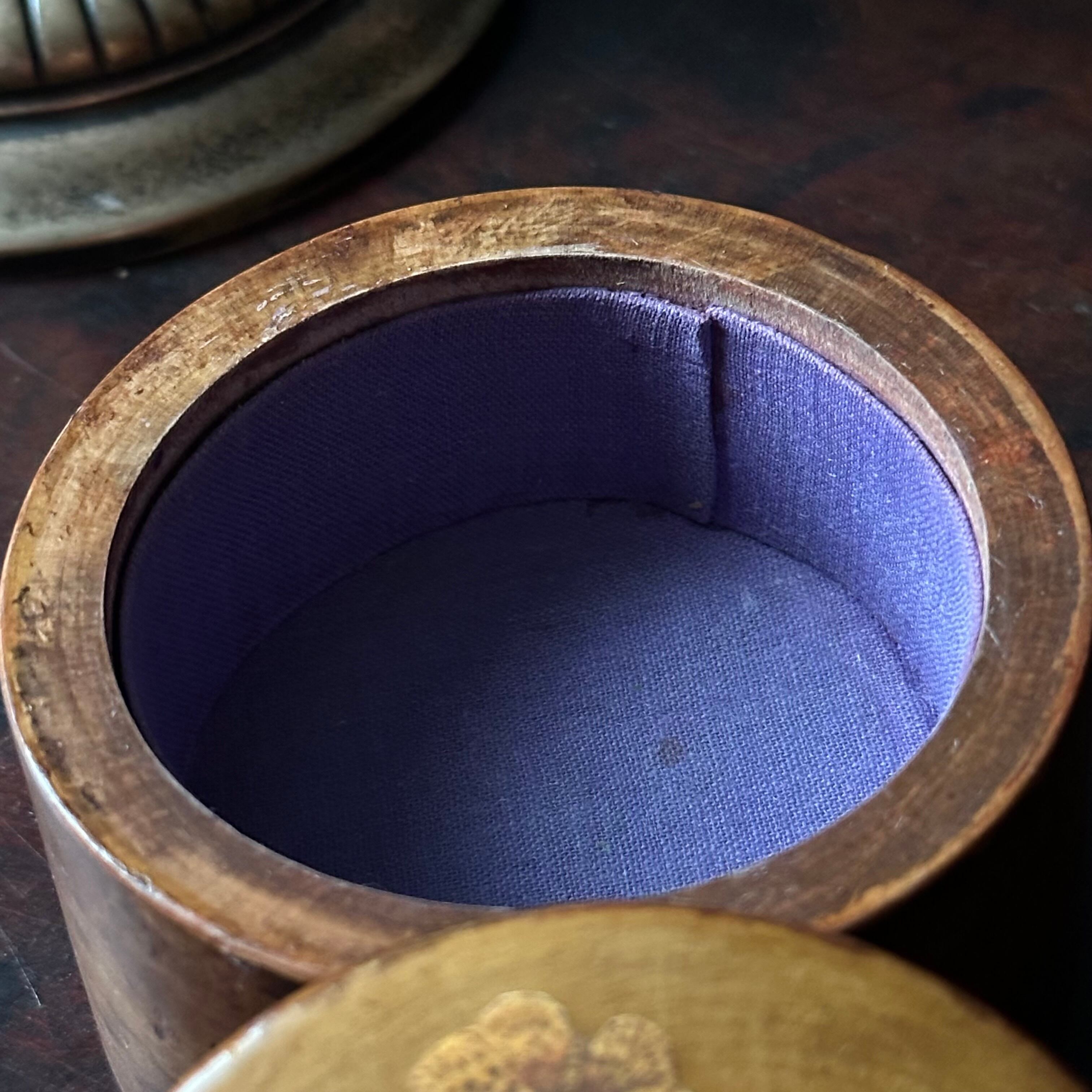 パリの蚤の市で出会った小さな丸型の木製ケース。
