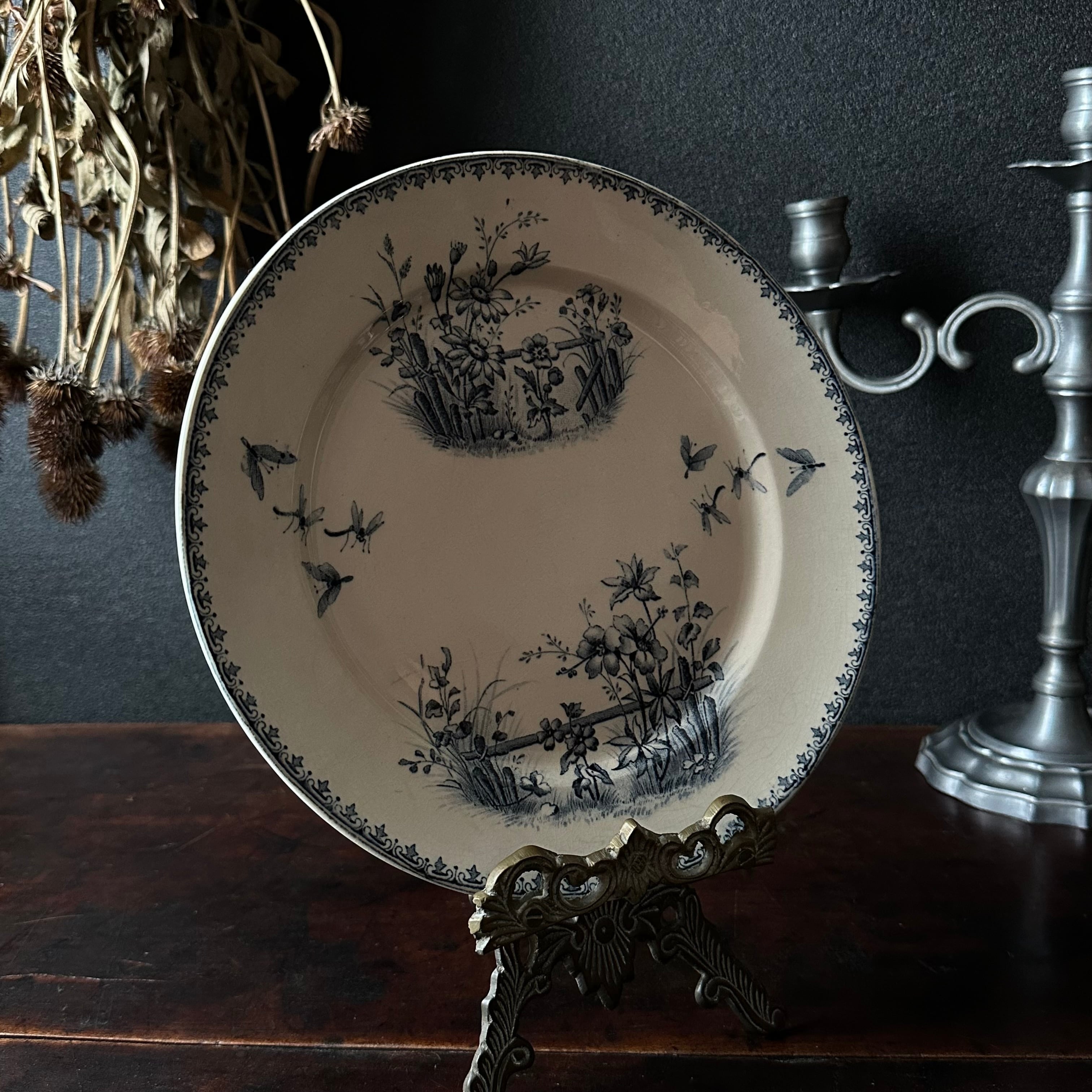 素朴に咲いたお花模様とトンボや蝶が飛び交う絵柄が可愛らしいプレートです。