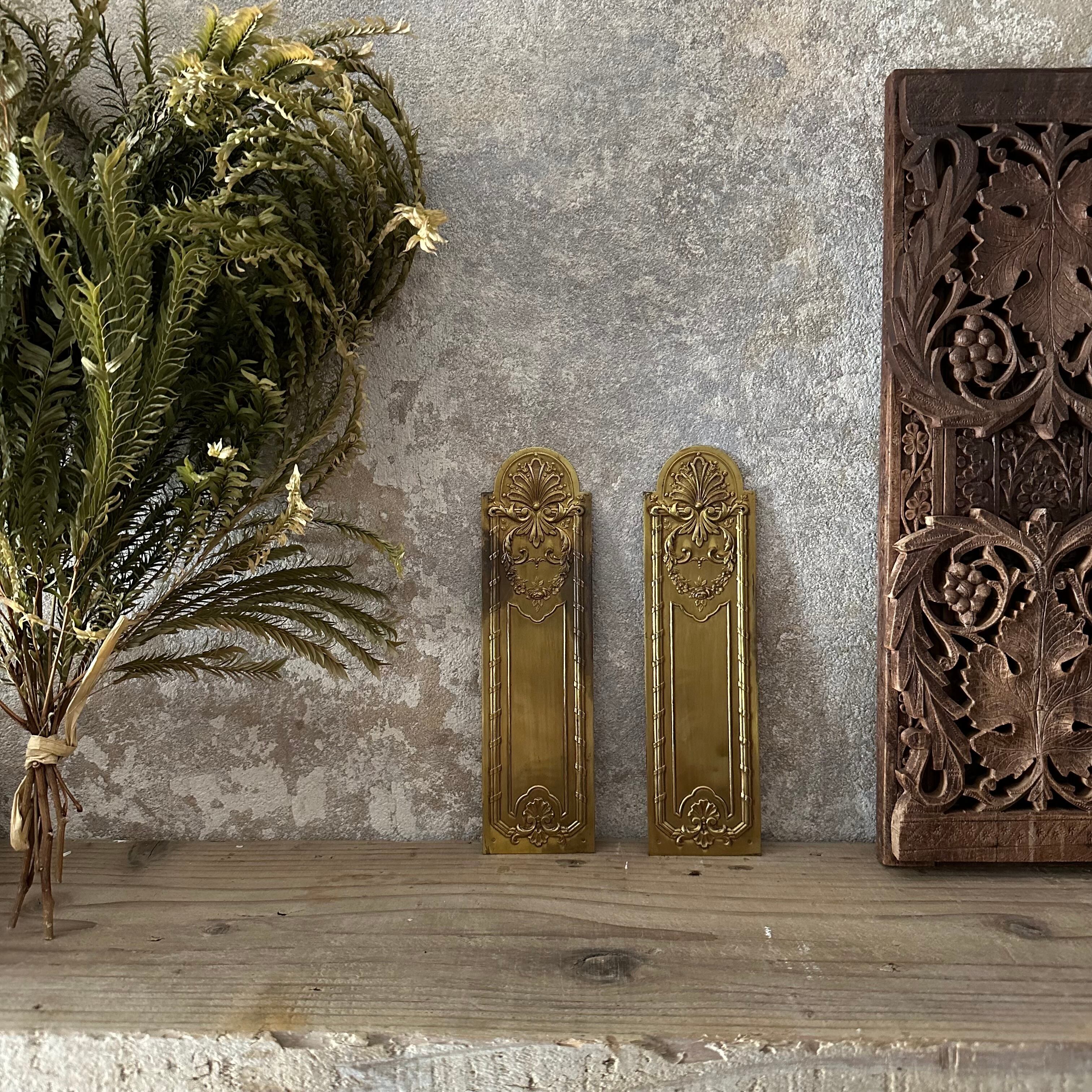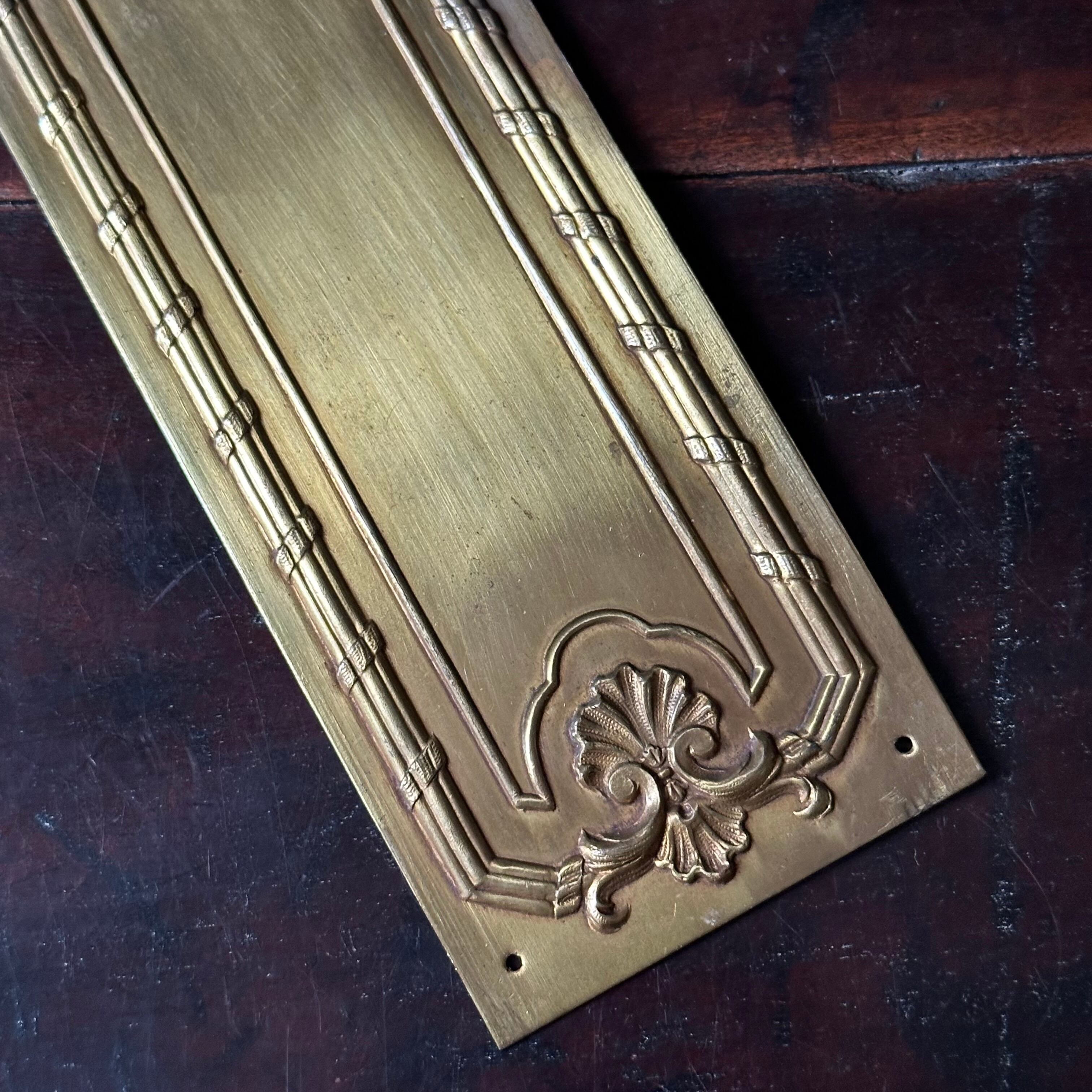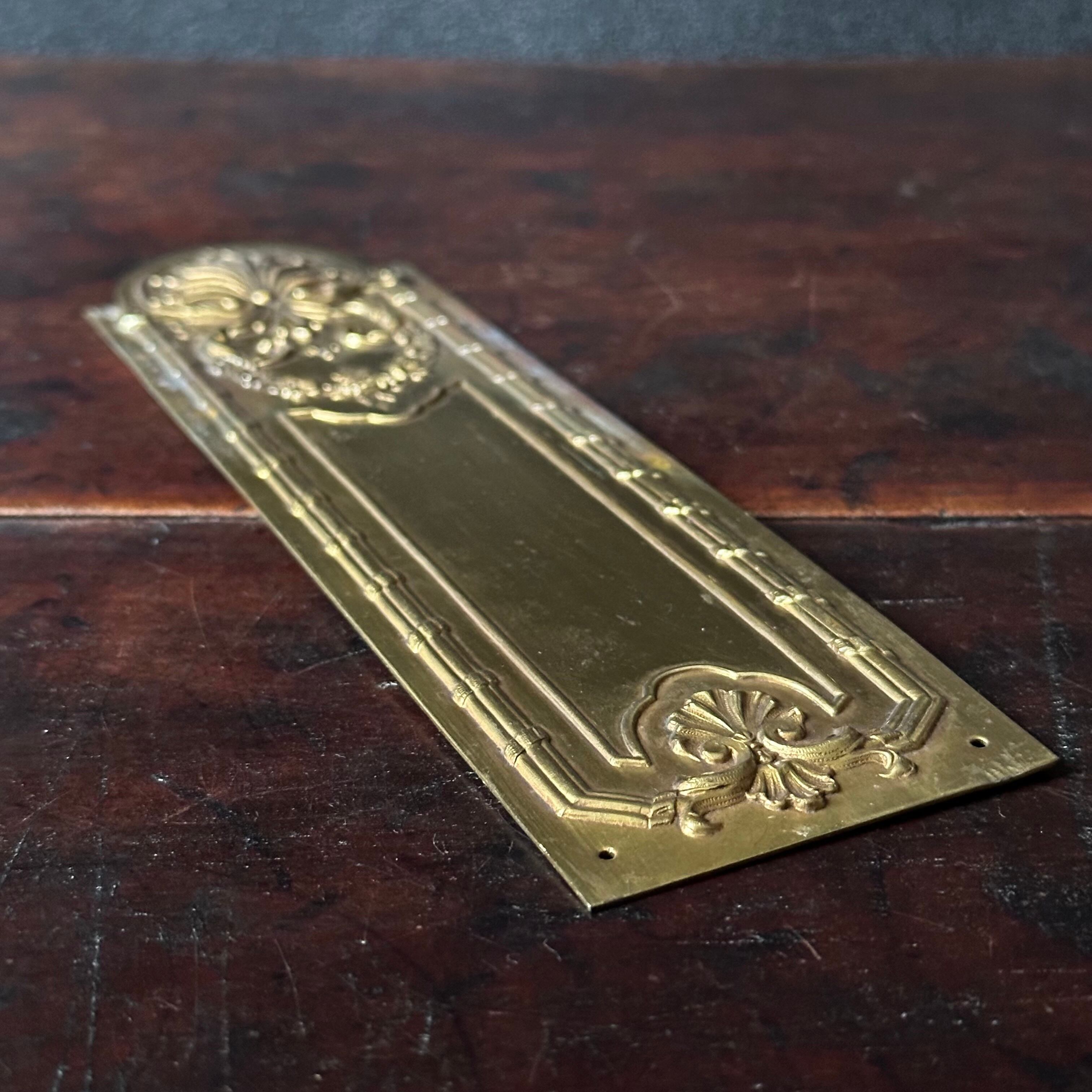 フランスの蚤の市で見つけた、ドア装飾用の真鍮製ヴィンテージフィンガープレートです。
