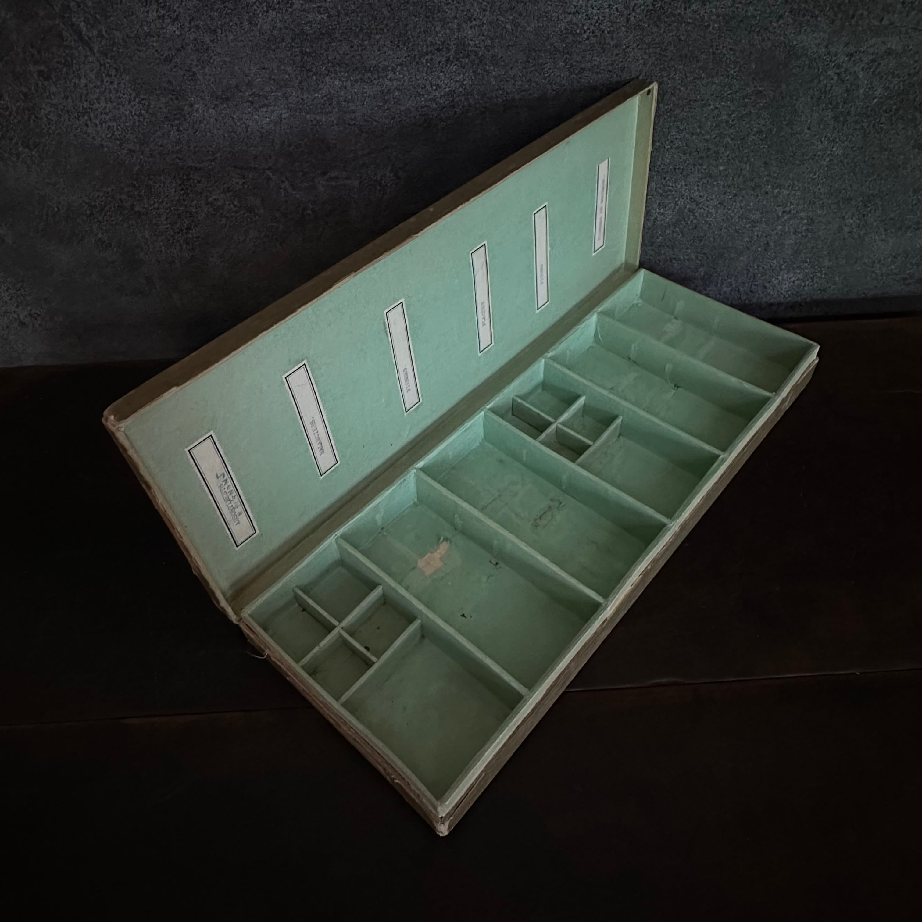 中は時計部品を収納していた仕切りがあり細かなパーツを入れたり、大切なものをしまうのにぴったりです。使用感はありますがしっかりとしたお品です。