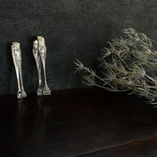 シルバー製の白く澄んだ美しい輝きと、流れるようなしなやかな植物模様、それと対照的な獣足のデザインが見事にミックスされたお品です。