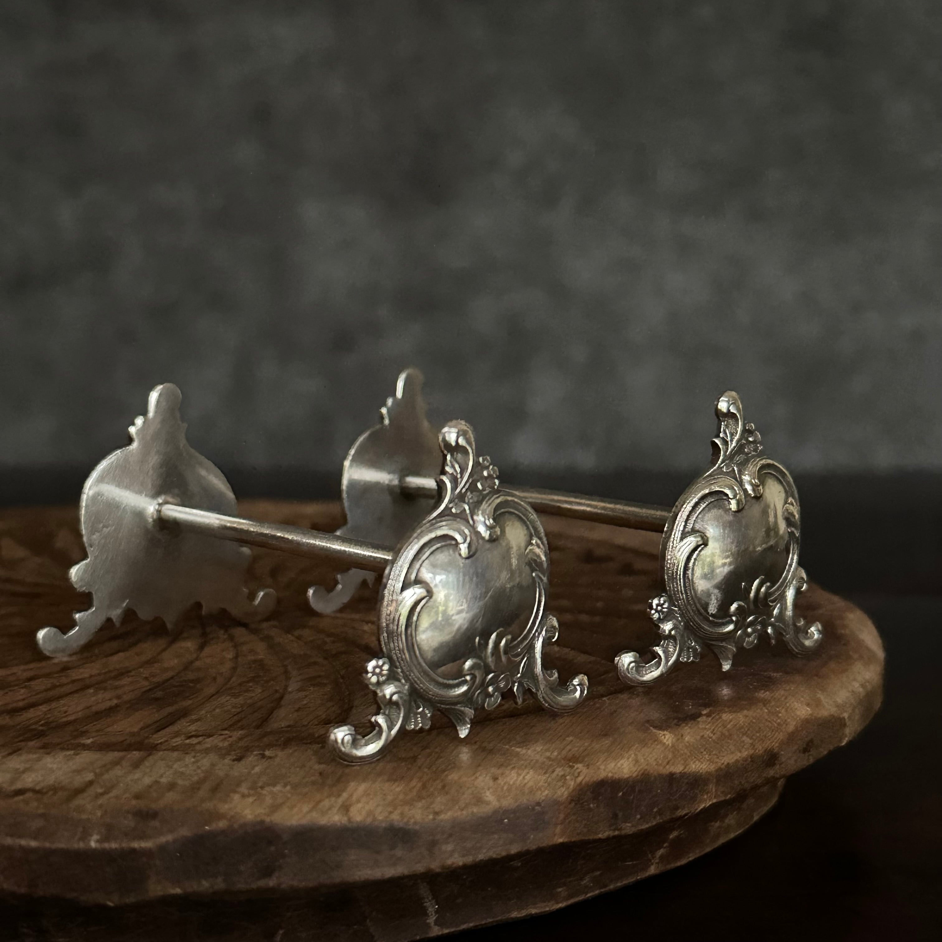 ベルギーの蚤の市で見つけたロカイユ装飾が美しいカトラリーレスト2個セットです。