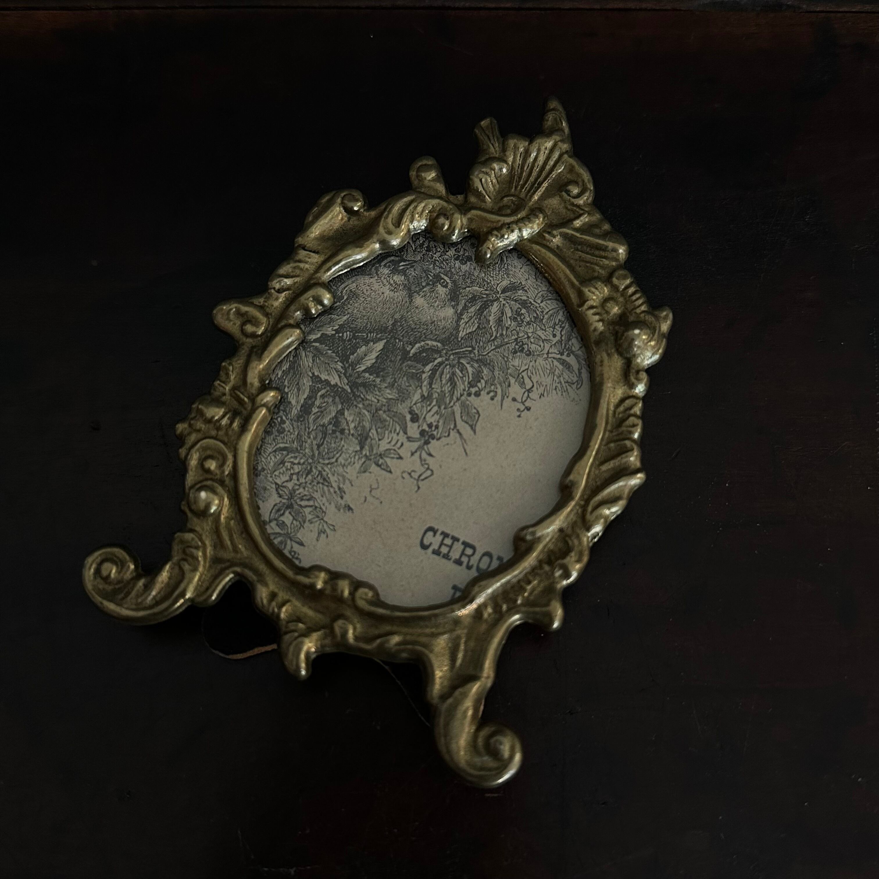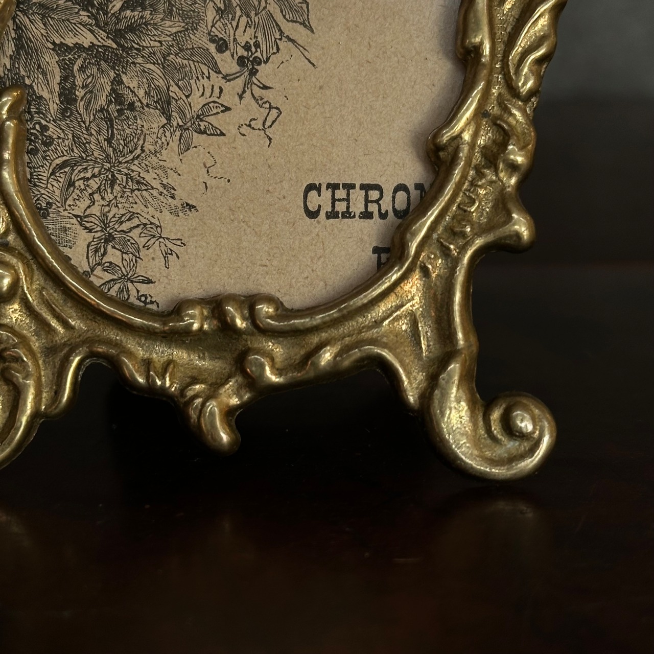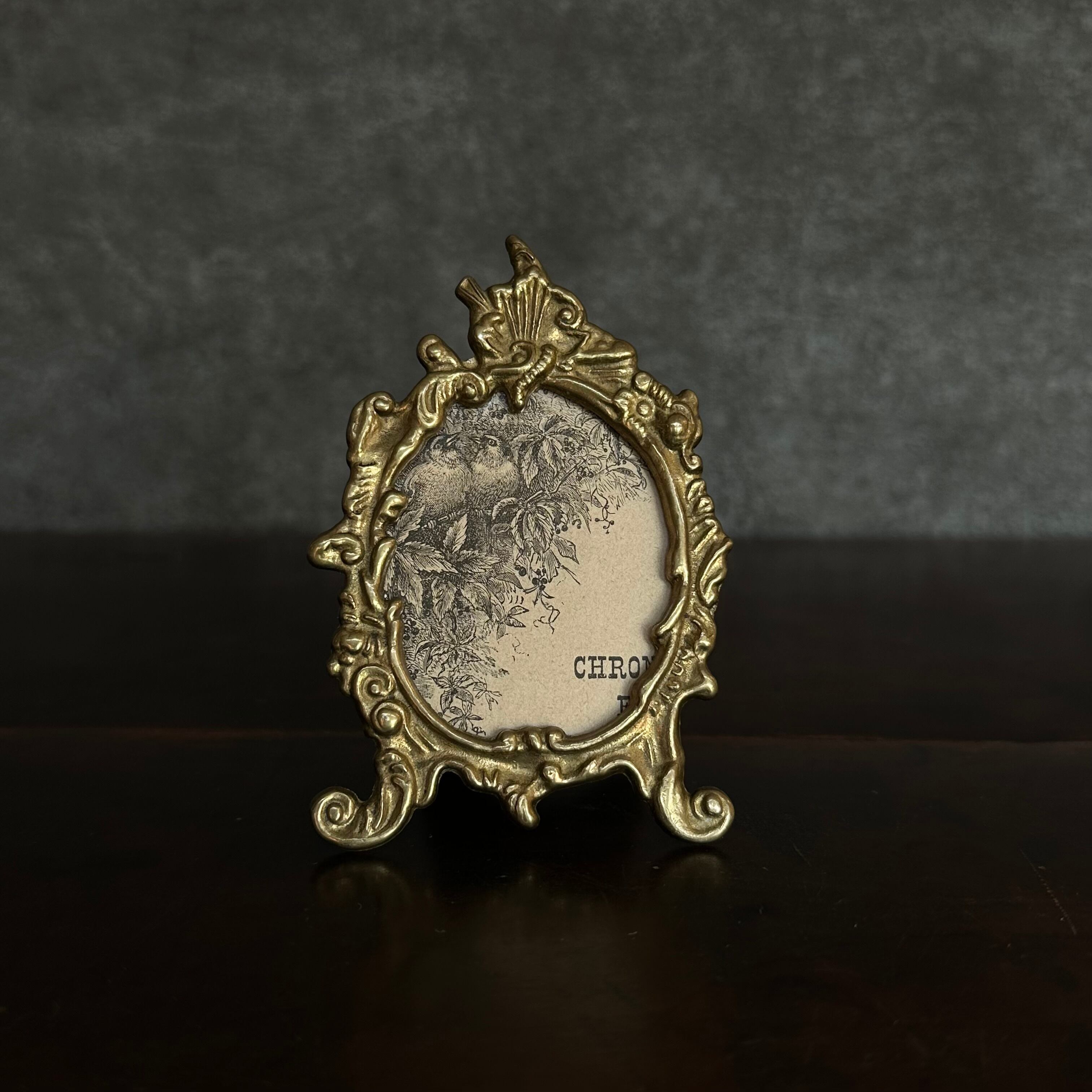 軽やかな曲線が施された真鍮の小さなフォトフレーム。