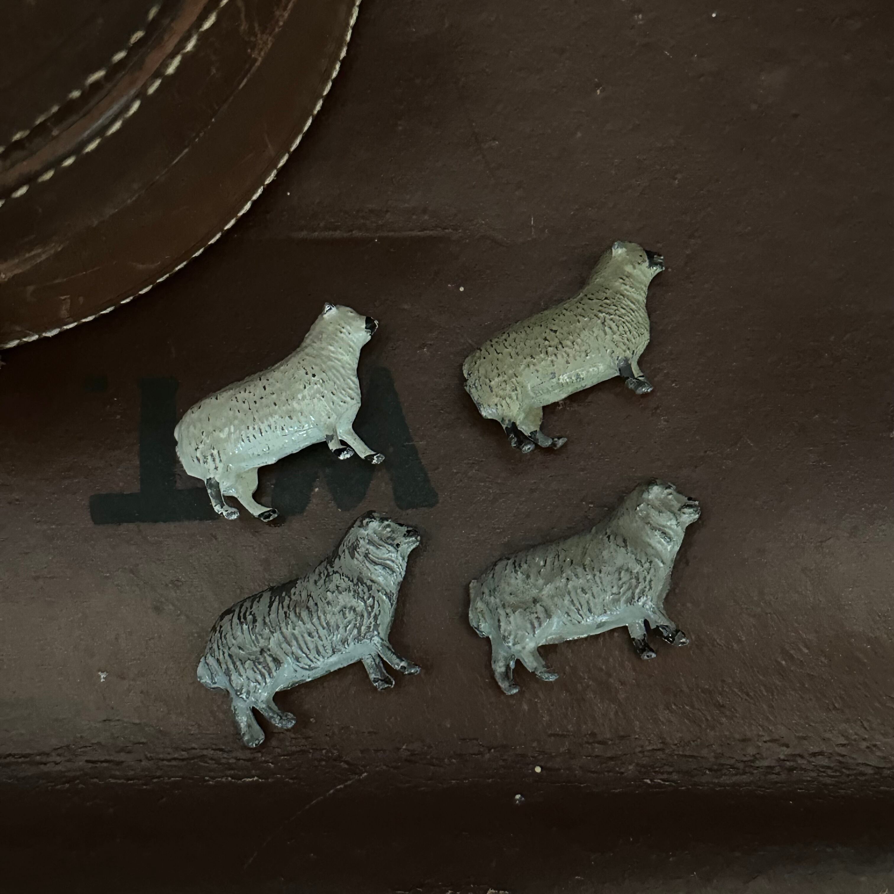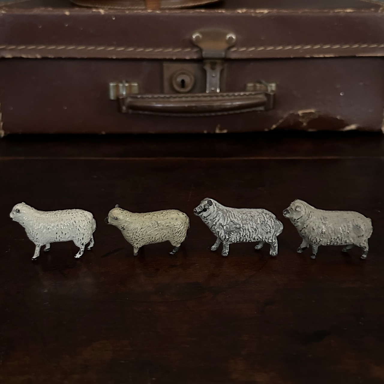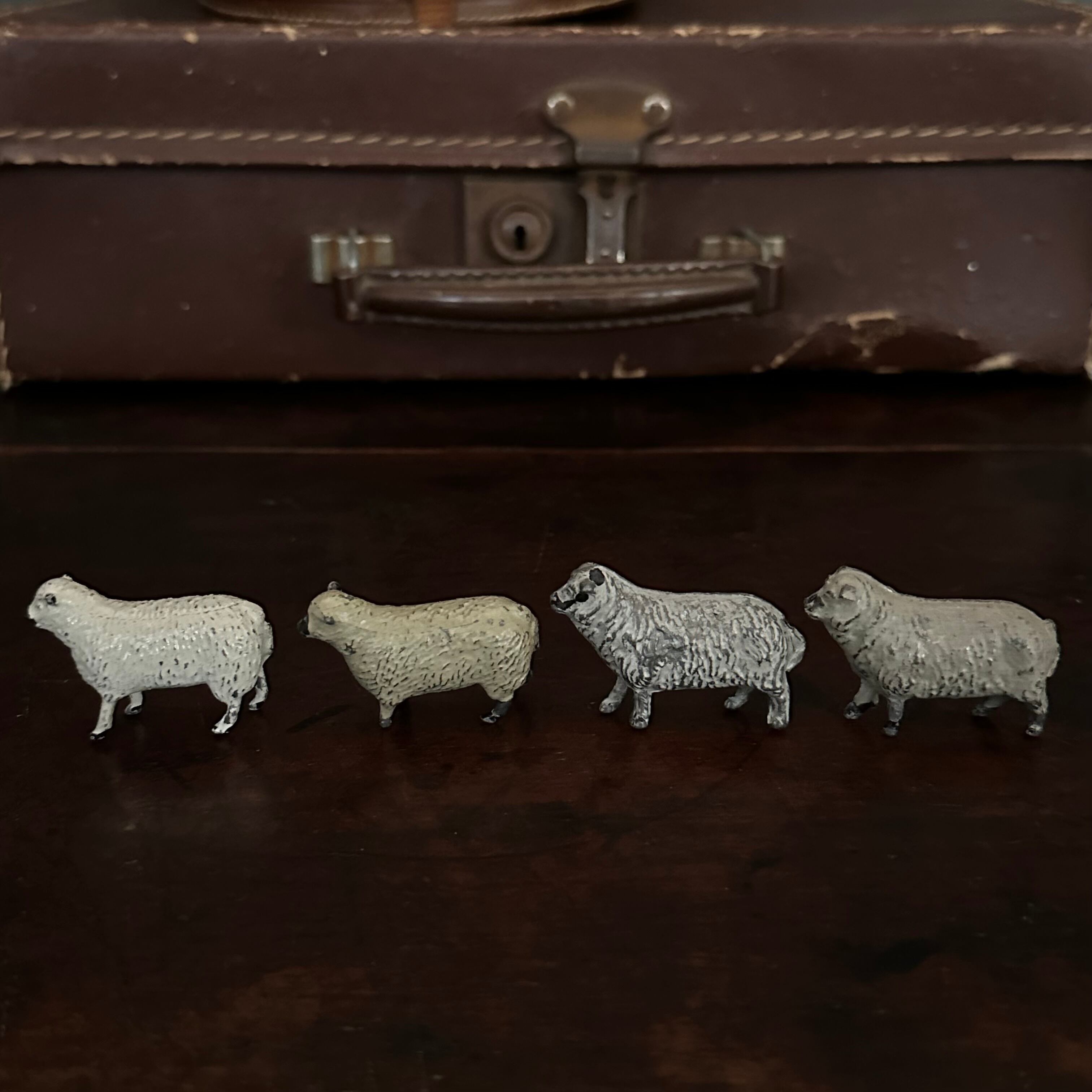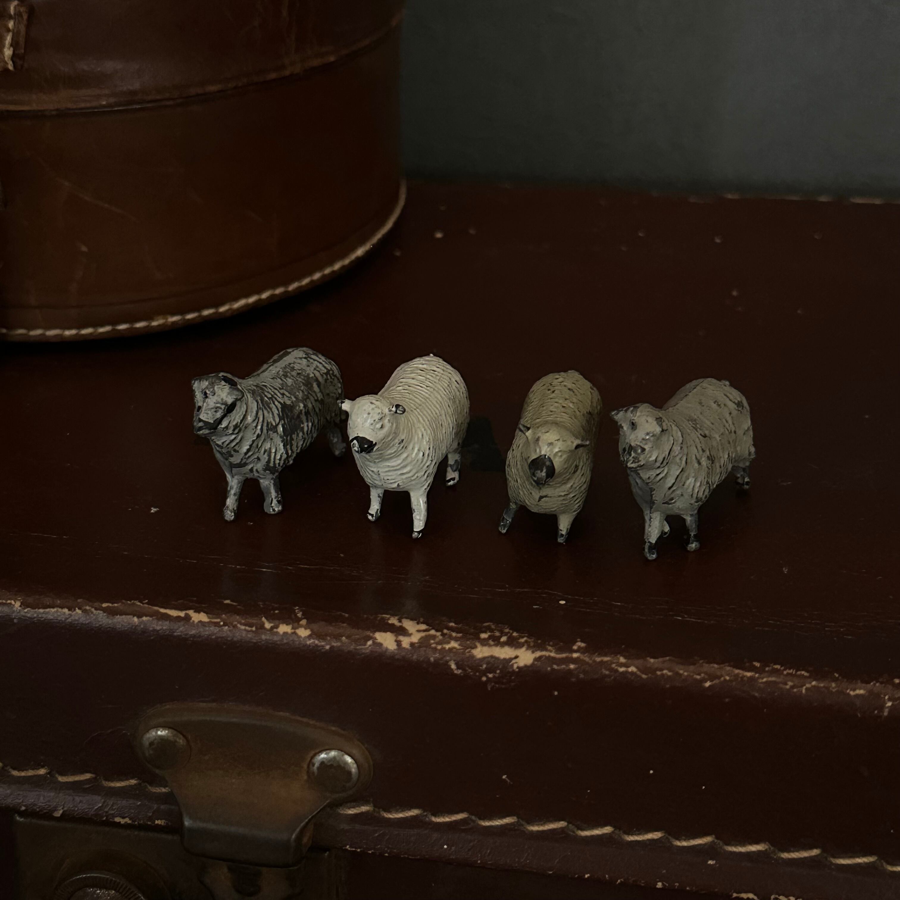 イギリスの蚤の市で見つけた、可愛らしいミニチュアオブジェの羊4匹セットです。