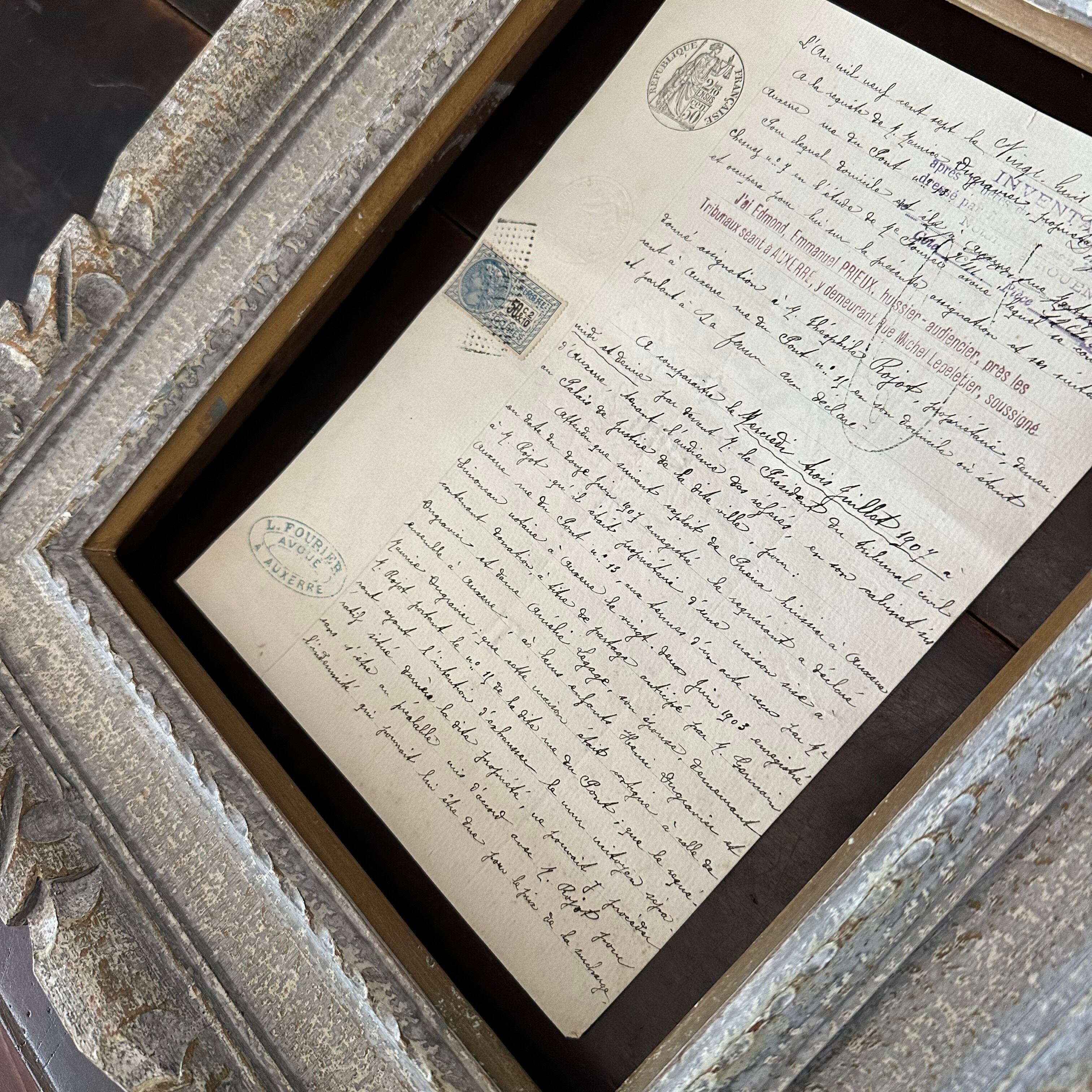流れるように書かれたフランス語の筆記体の文字が美しい古い書類です。